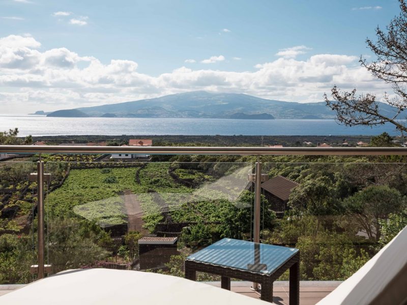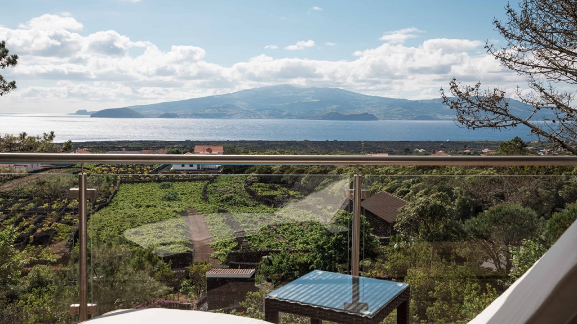 Pico island is a lush and verdant landscape and the Criação Velha Luxury Villa enjoys panoramic views of the UNESCO World Heritage Vinicultural Landscape Site and Faial Island. The dominating and ancient Topo volcano looms large on the south eastern part of the island making for a spectacular backdrop.