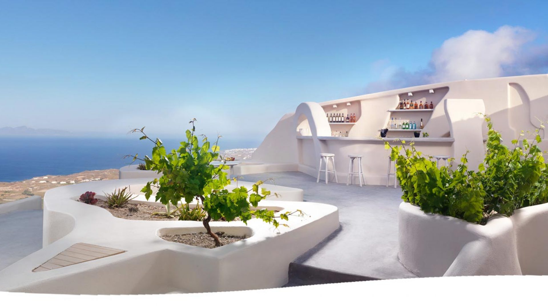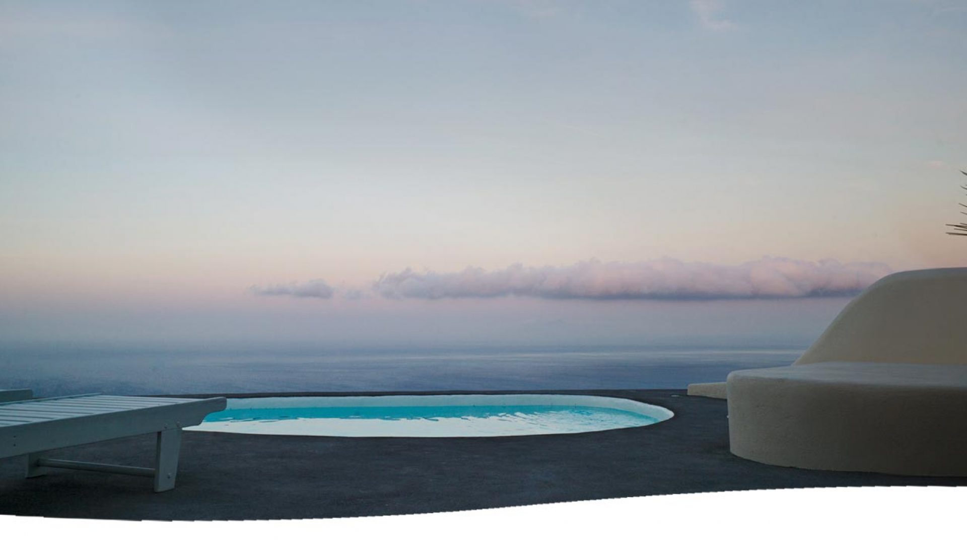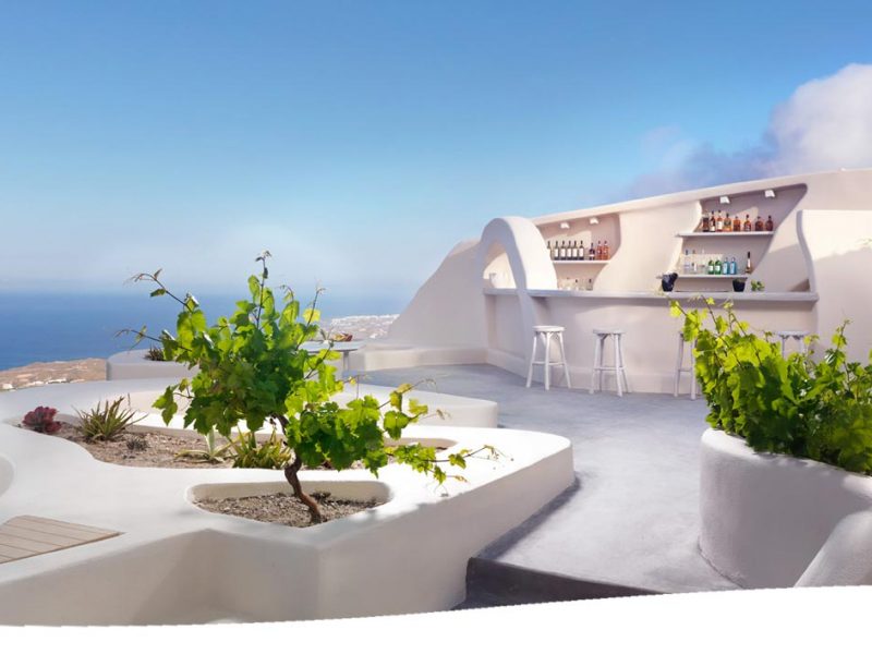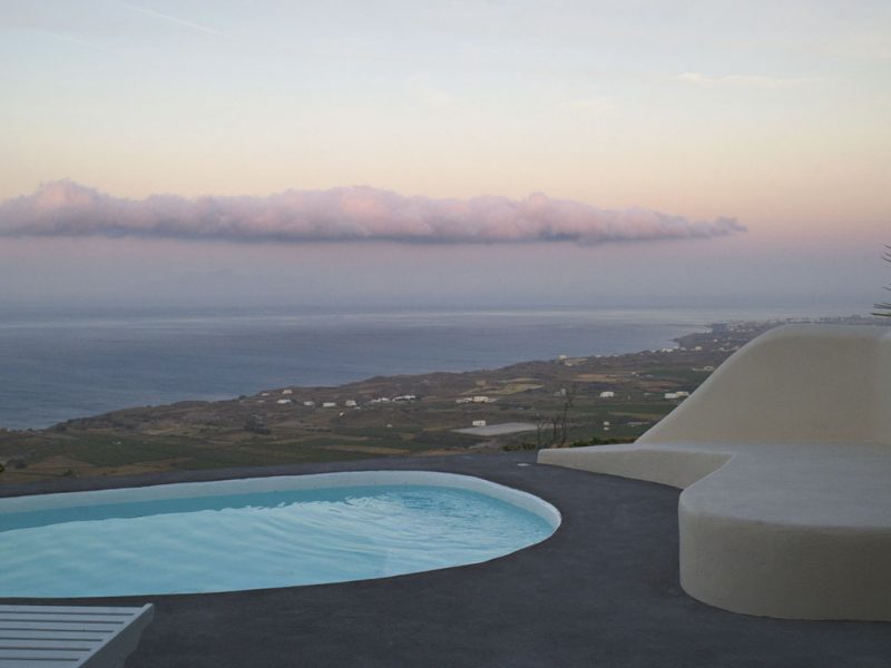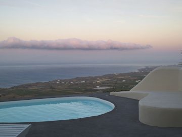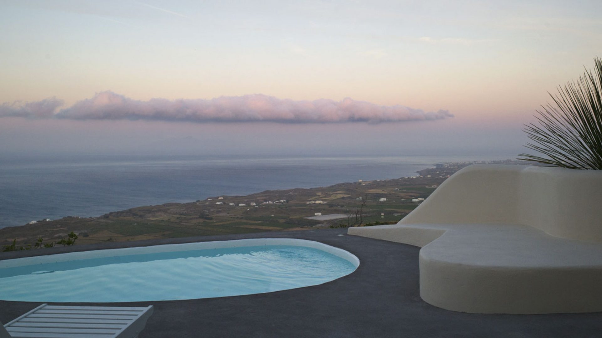 The exquisite living room opens out to the private veranda where the newlyweds can relax and be swept away by the aura of the scenery and the breathtaking panoramic views of the Aegean.
