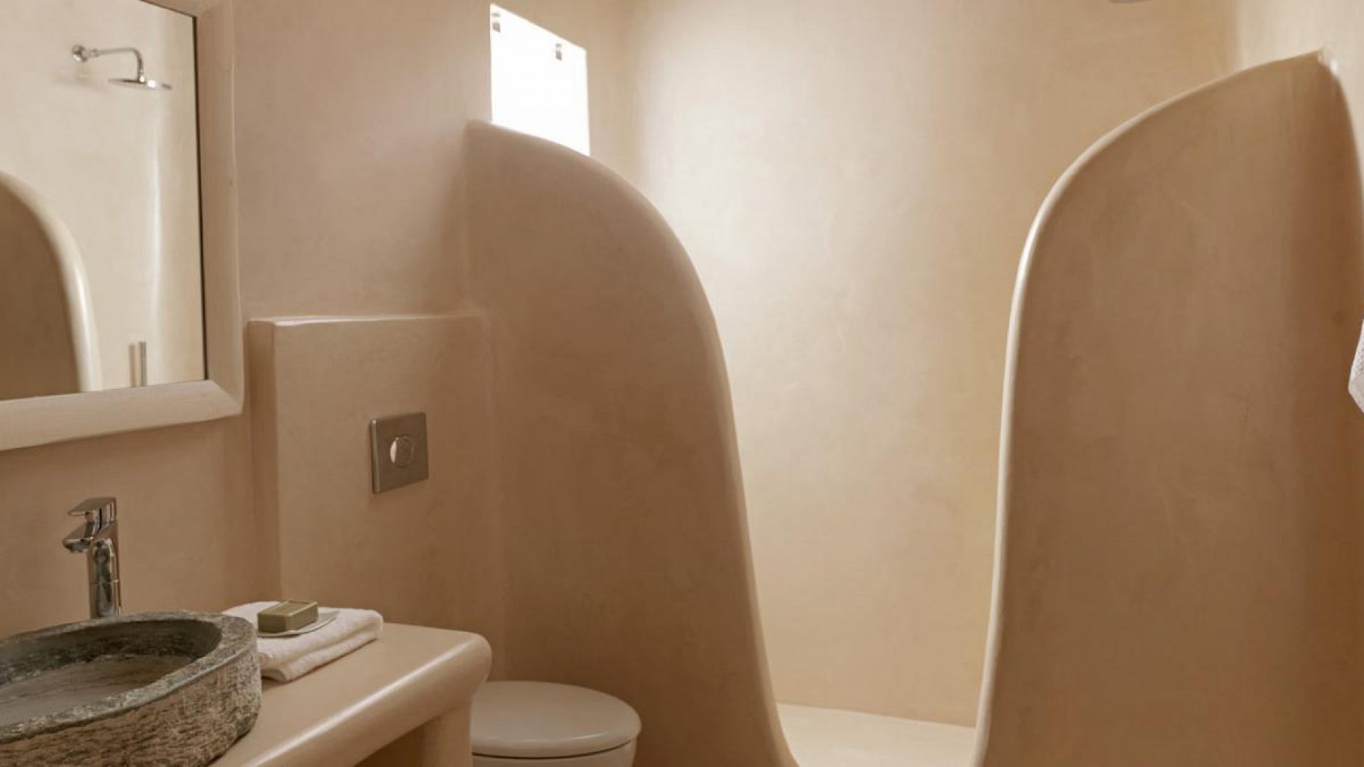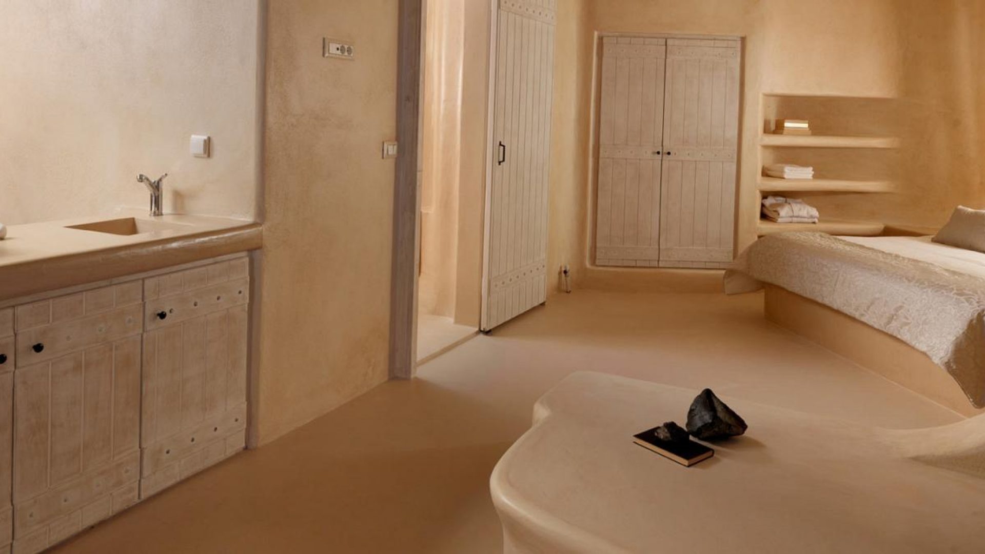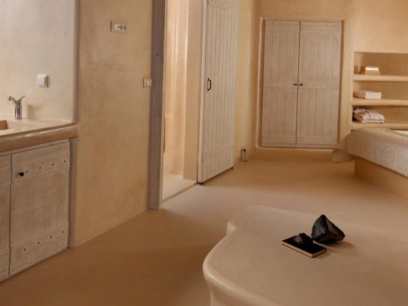 Exceptionally designed to awaken the senses the romantic the villa boasts one bedroom with plush king size, soft pillows, and luxurious amenities. The open wash basins and a stone bathtub with separate WC and shower room invite the guests to a relaxing atmosphere.