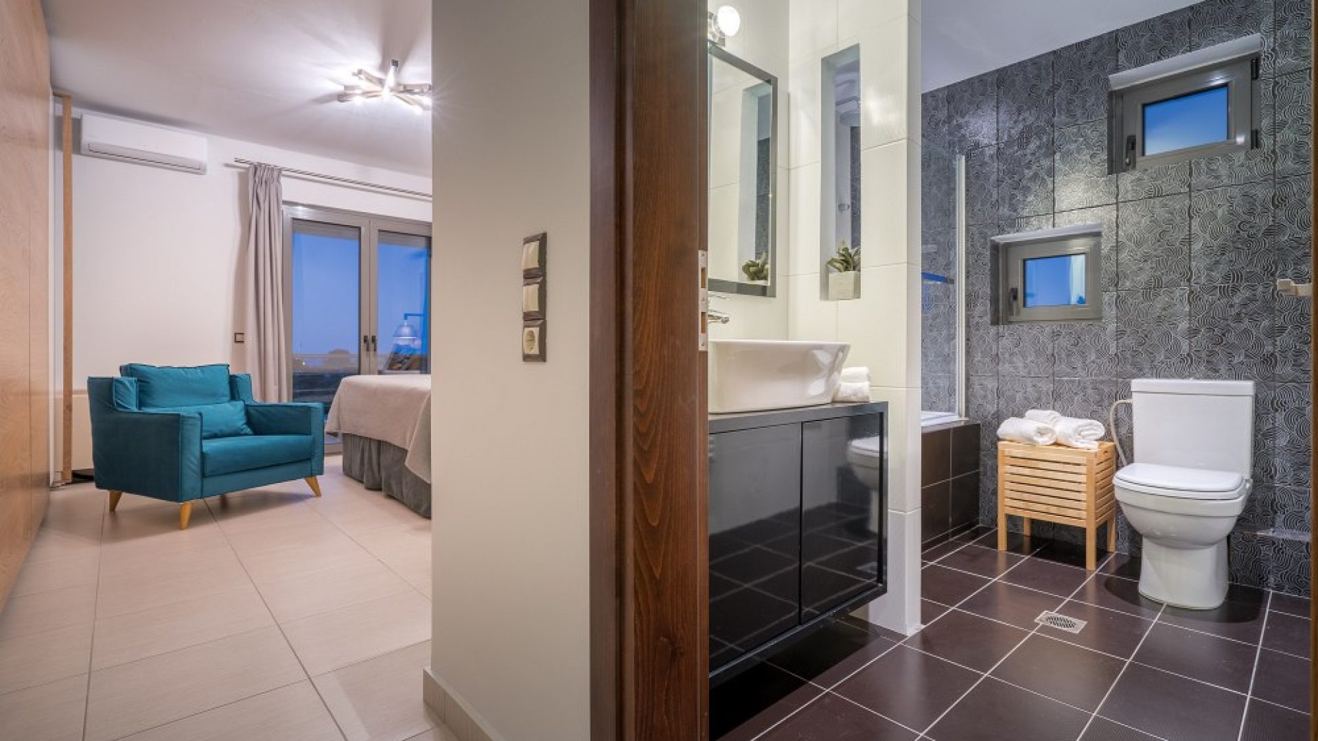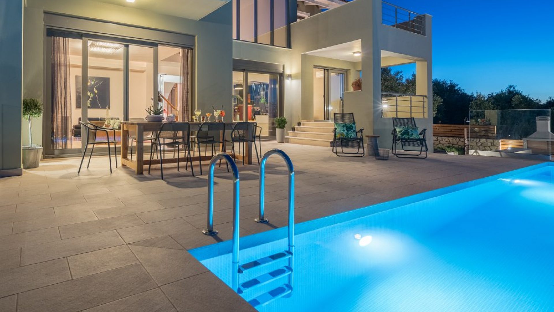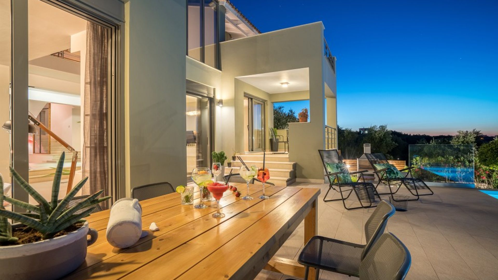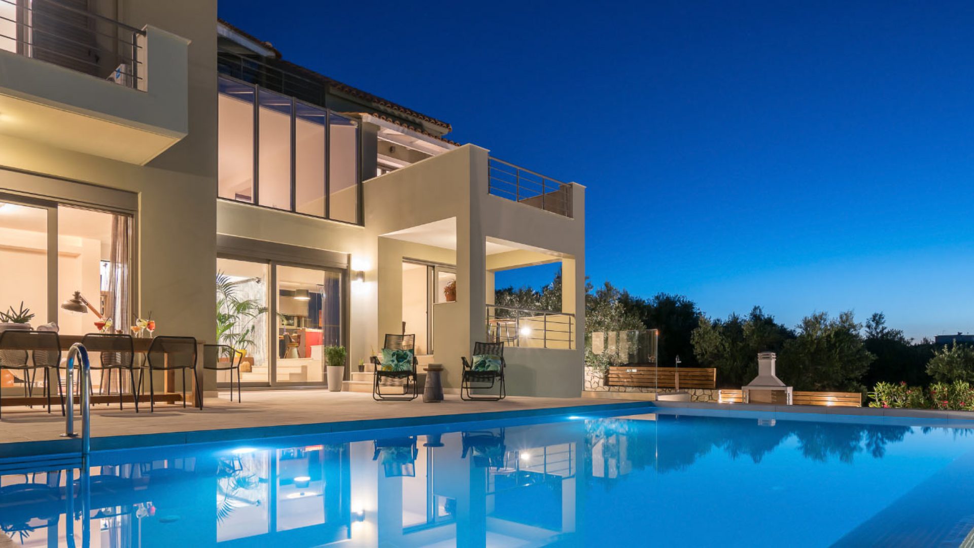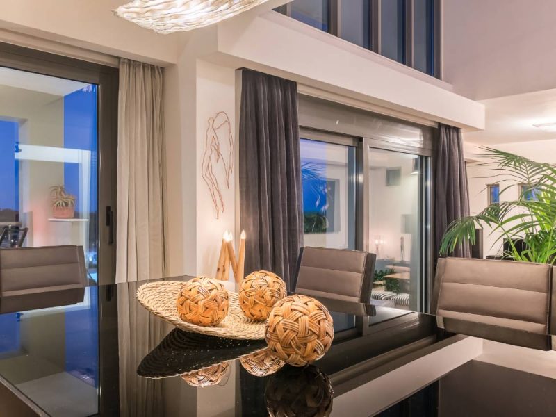Ipeca has a capacity of 8 guests that will surely appreciate its modern design and functional living areas. The entrance of the villa is situated on the ground floor with a fully equipped kitchen, a dining area with table and chairs, a fine living room, a patio and a bedroom. On the first floor there are three more bedrooms (one with an en-suite bathroom), one more bathroom and an interior balcony with an office. Ipeca luxury villa features a basement equipped with a fitness studio and a bathroom as well as a cozy lounge area in the attic.