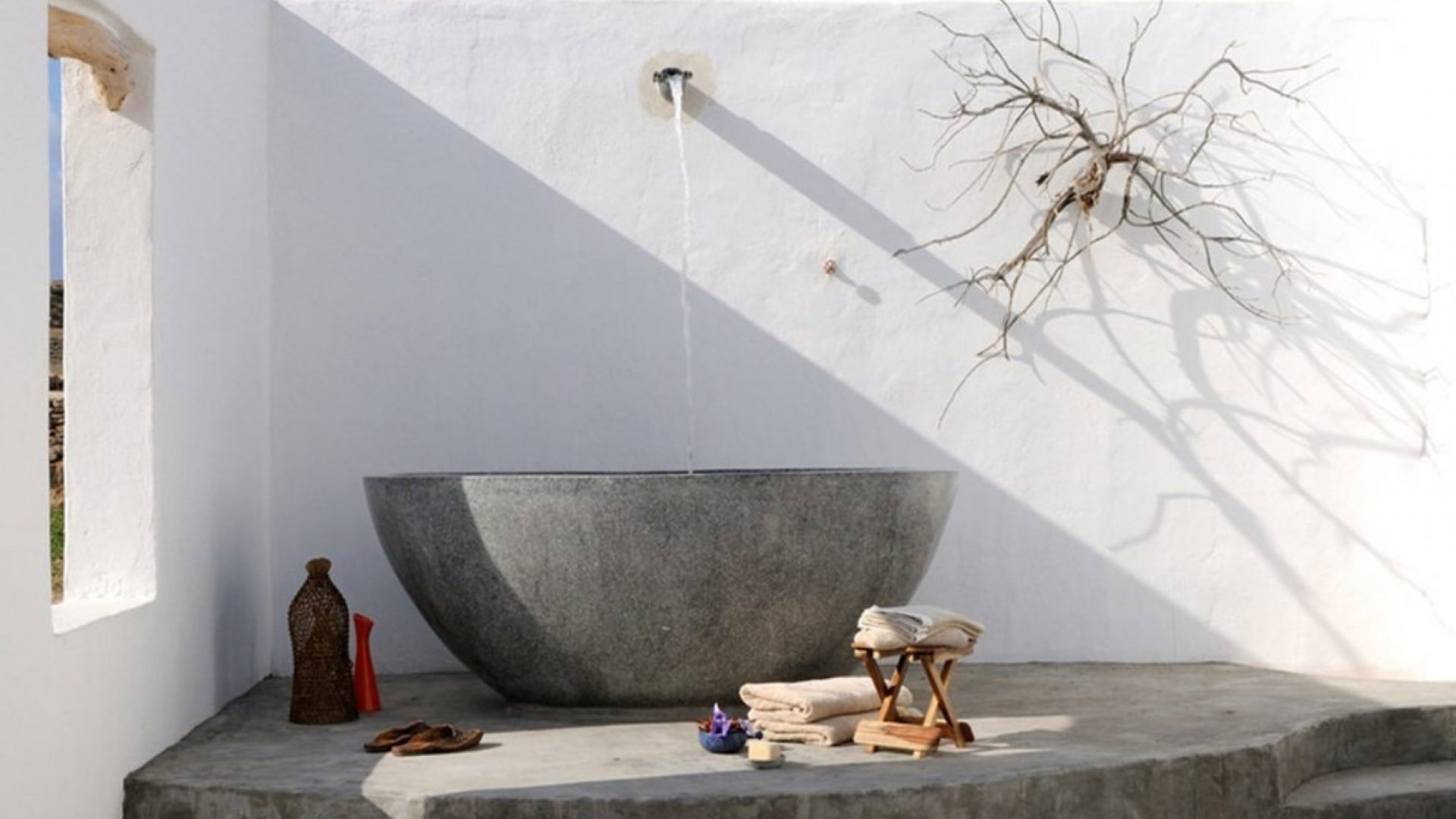 Great attention has been given to the outdoor areas. The open sky bathtub is ideal to wash away the salt and sand after a day at the beach or to soak in and cool down from the summer heat.