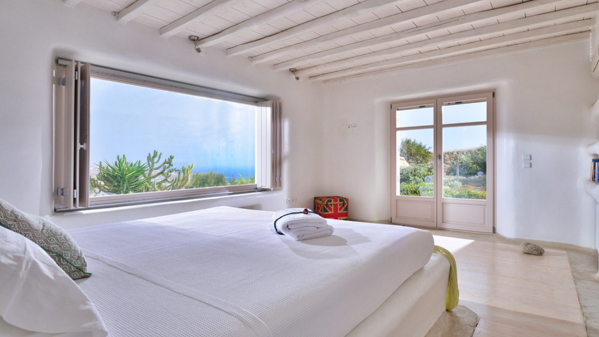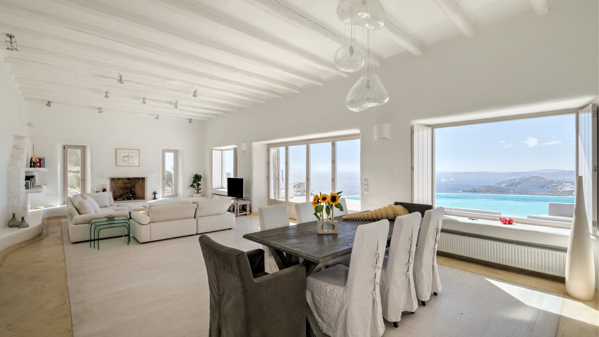 Ideal for VIP accommodation, families or large groups that wish to stay in an airy, elegant villa that combines modern and traditional charms and offers one of the best views in Mykonos, conveniently located close to the picturesque Chora, the capital of the island!