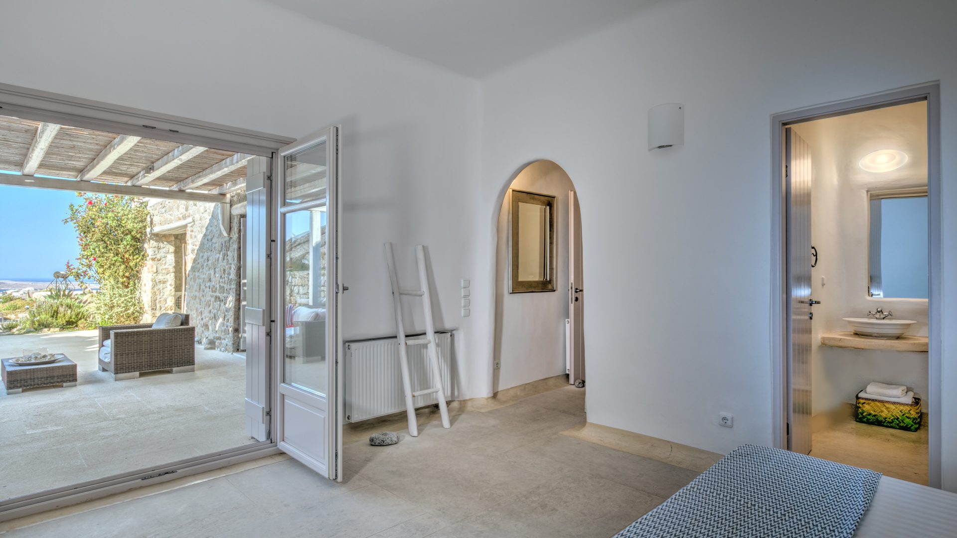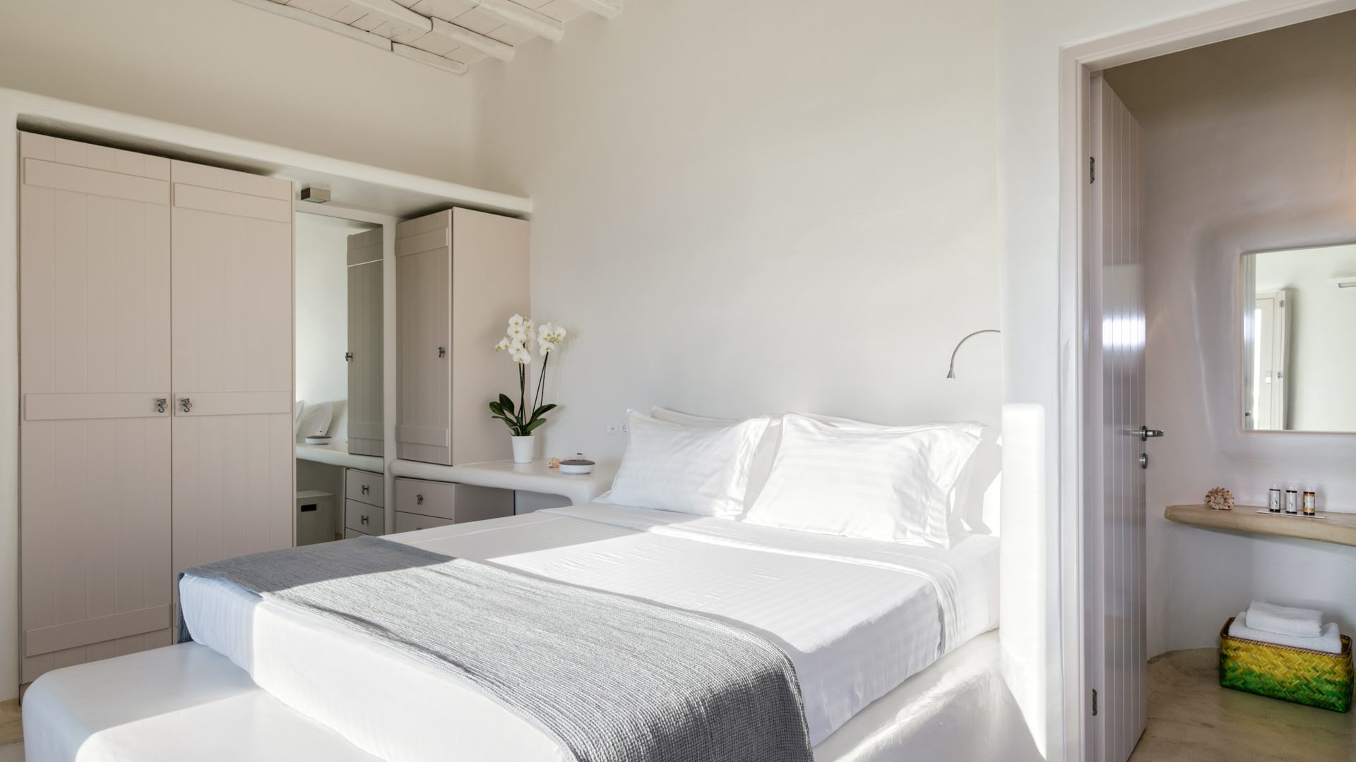 Enjoy moments of rejuvenation as you are relaxing on the sun loungers, have a barbeque with your friends, spend quality time indoors with the refined decoration and, what Alina Resort stands out for, live like royalty with the services that can cover everything you have dreamt of for the perfect holidays in Mykonos Island!
