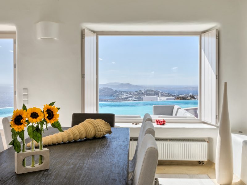Ideal for VIP accommodation, families or large groups that wish to stay in an airy, elegant villa that combines modern and traditional charms and offers one of the best views in Mykonos, conveniently located close to the picturesque Chora, the capital of the island!
