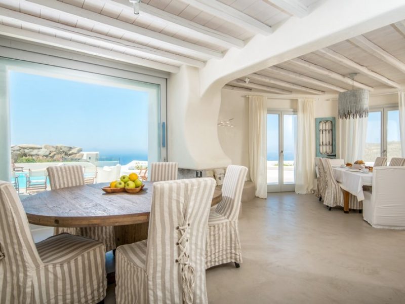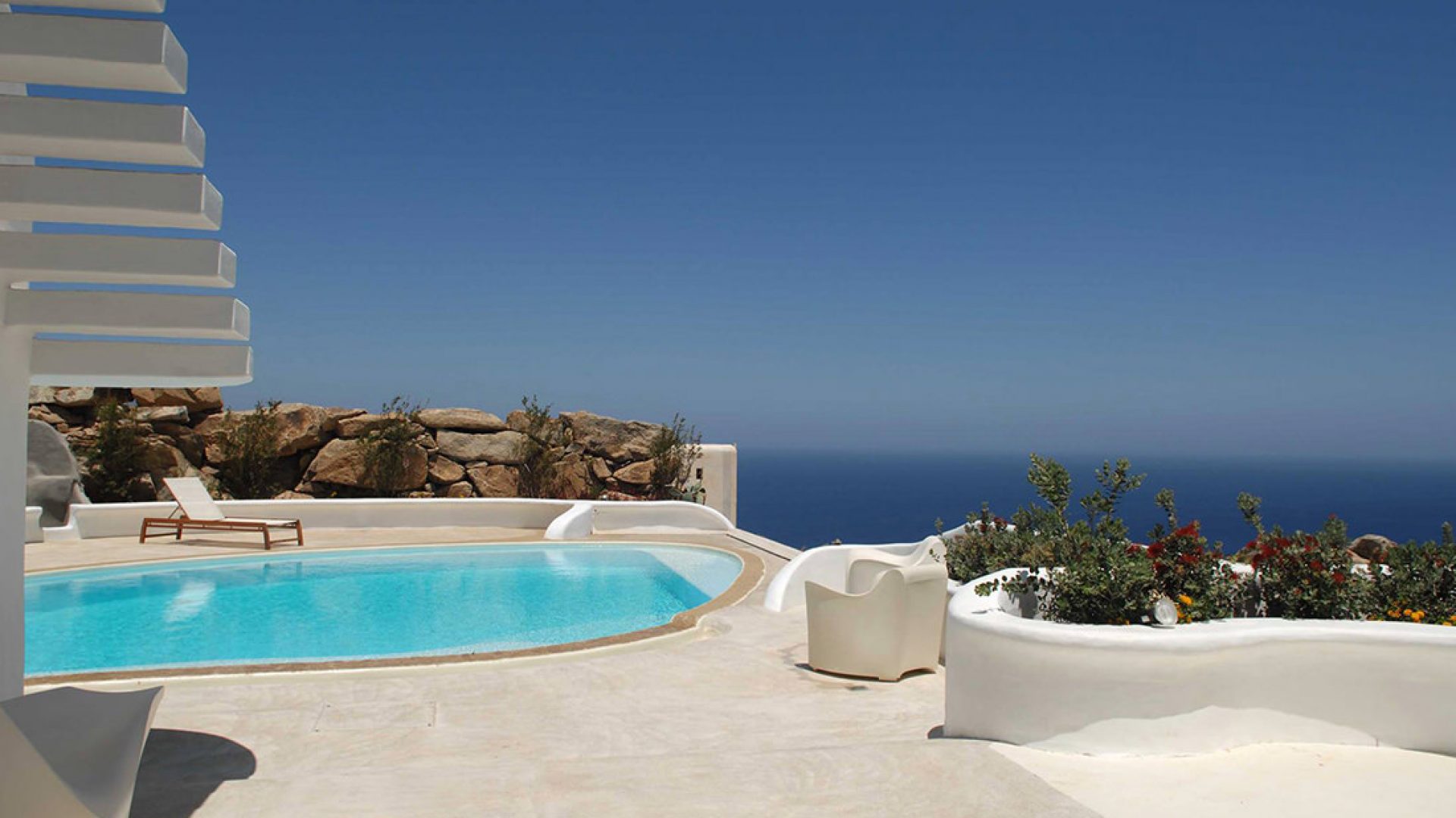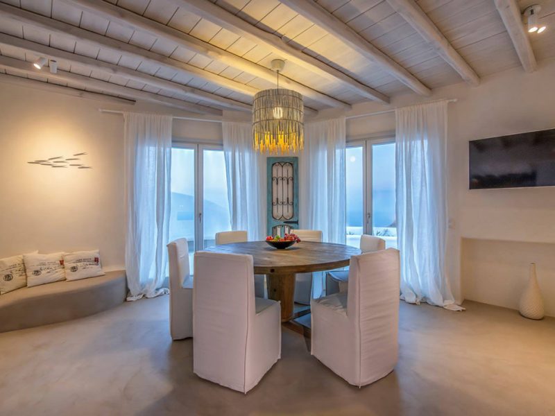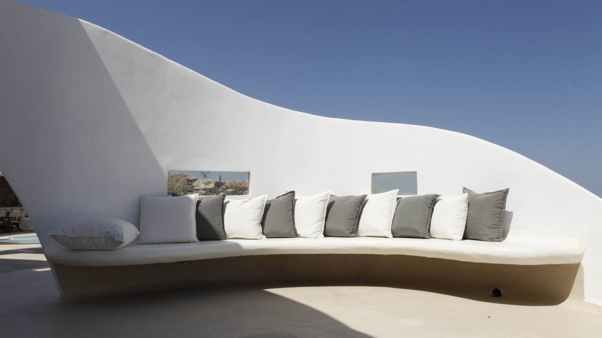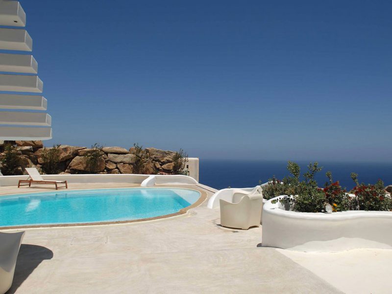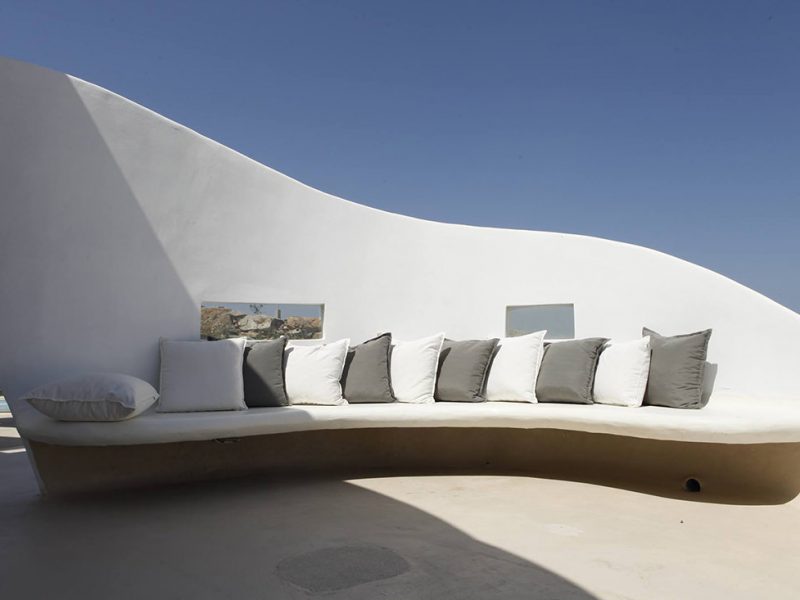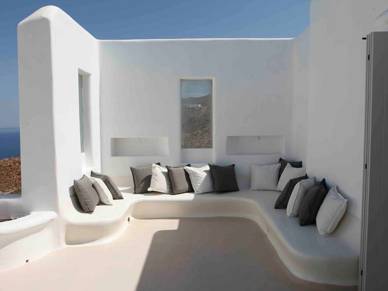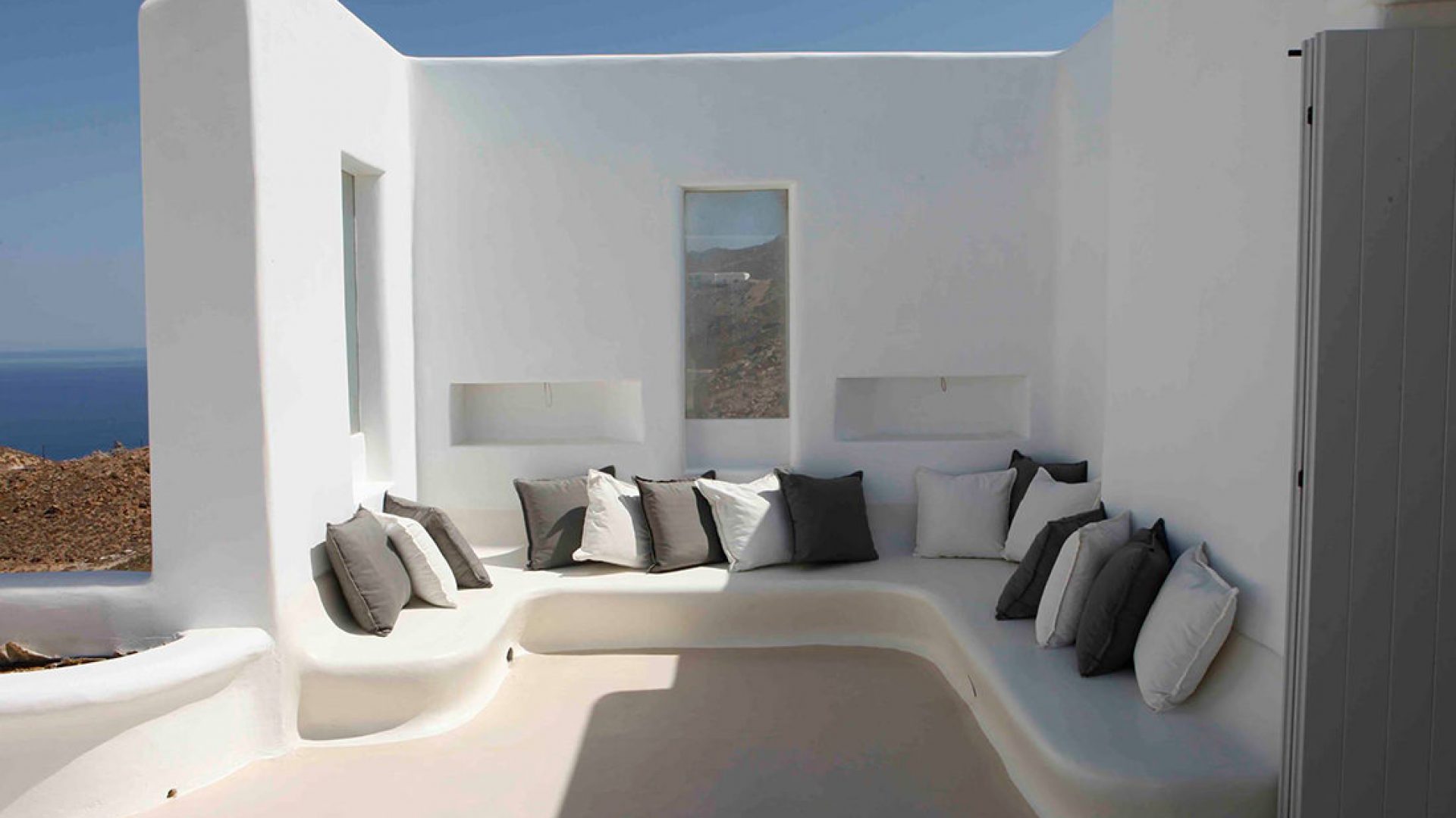 - A vast veranda with panoramic views to the endless “blue” of the Aegean Sea.