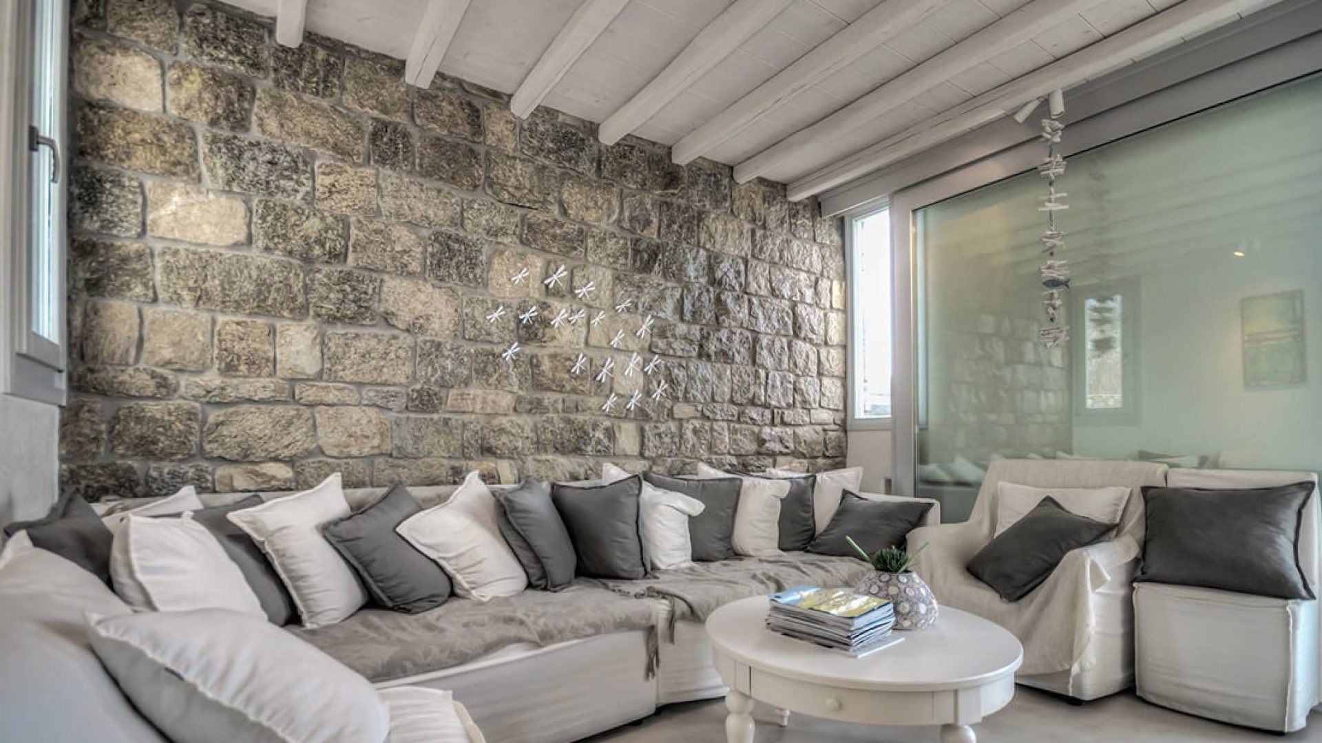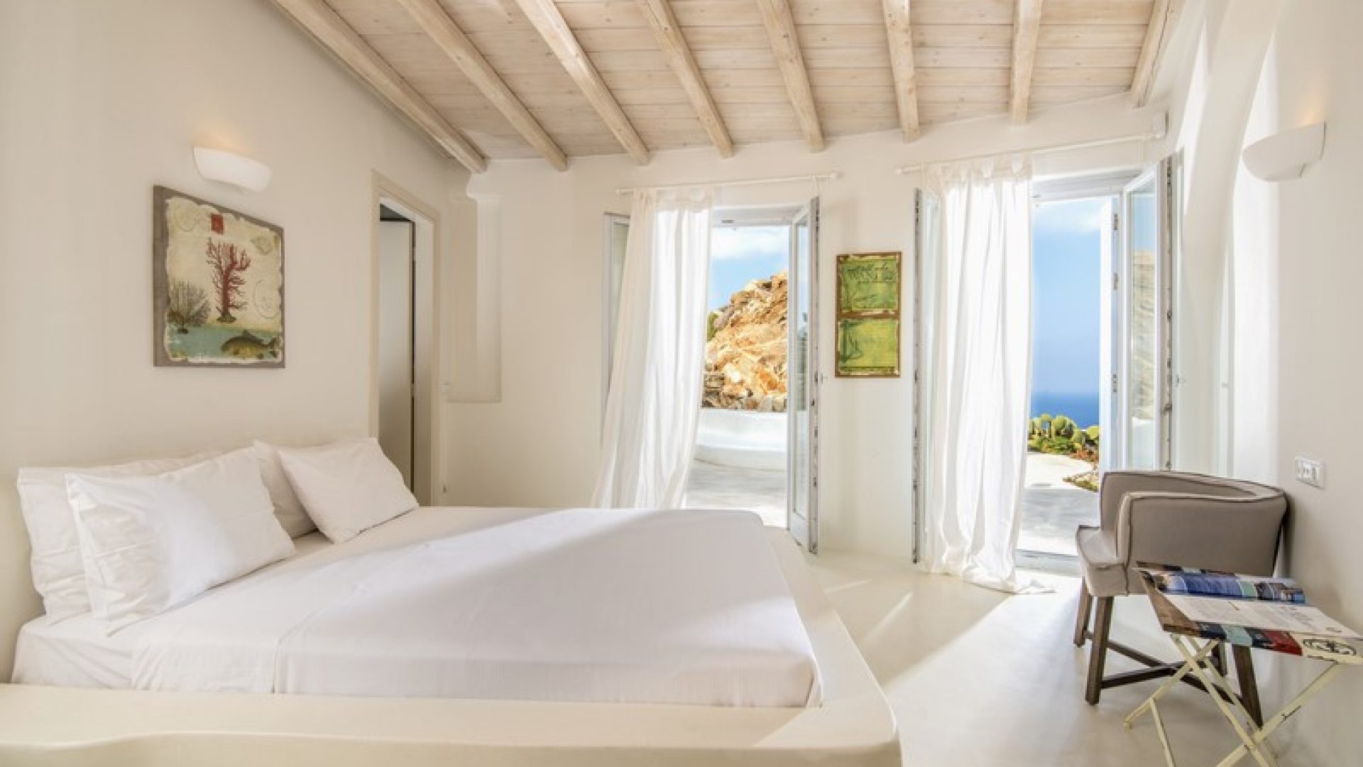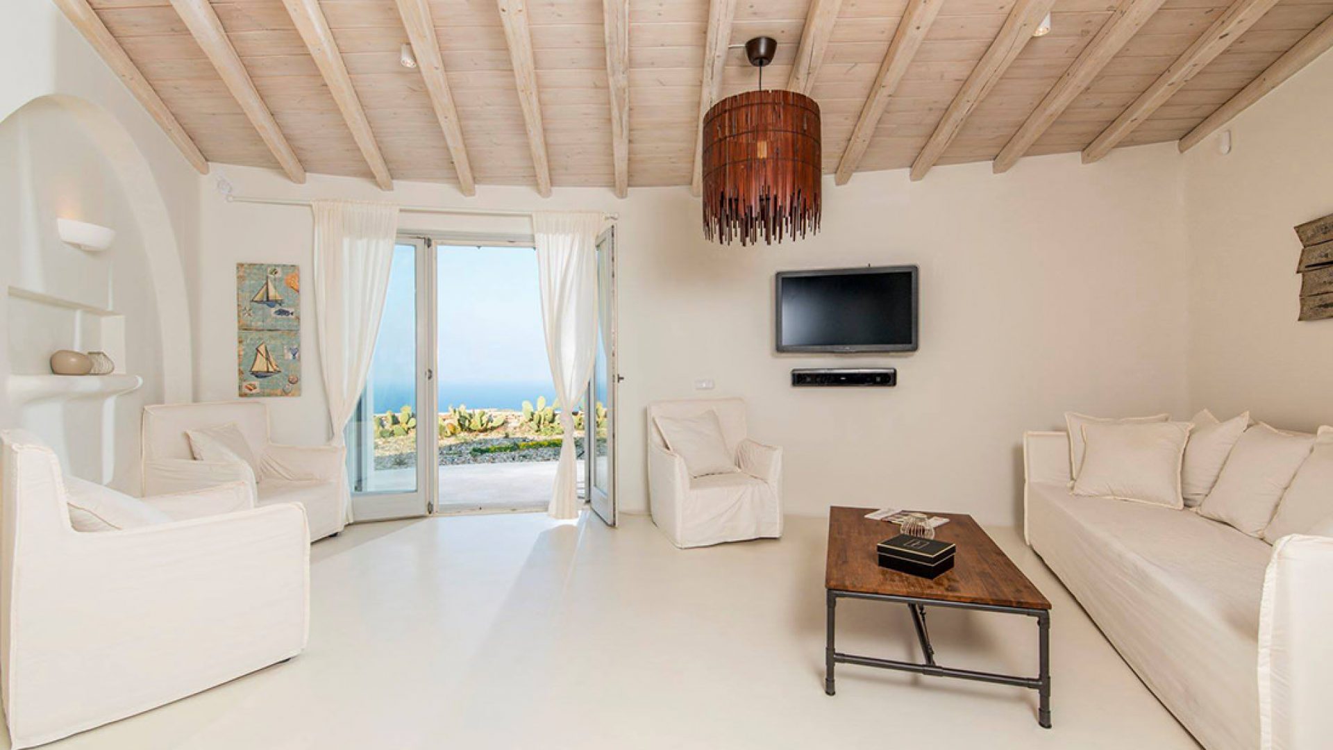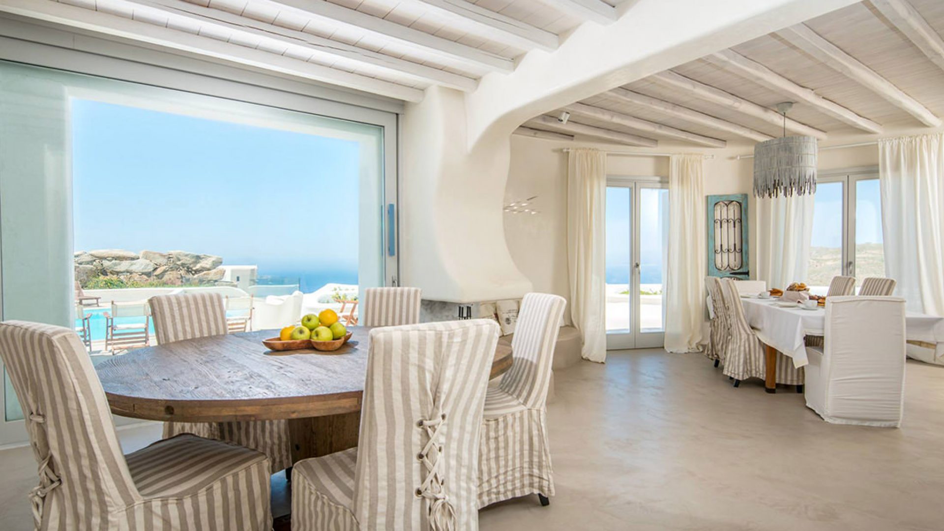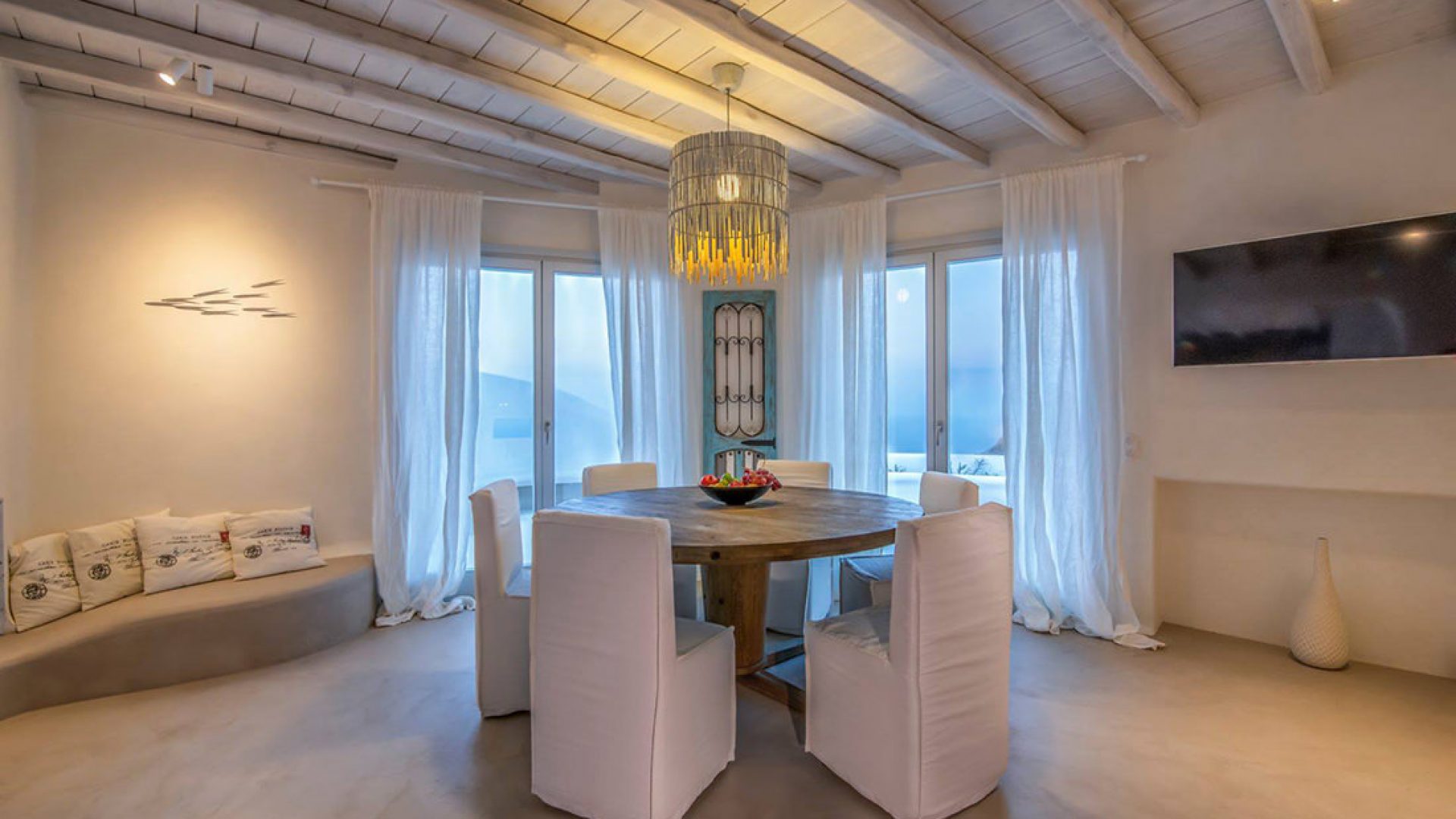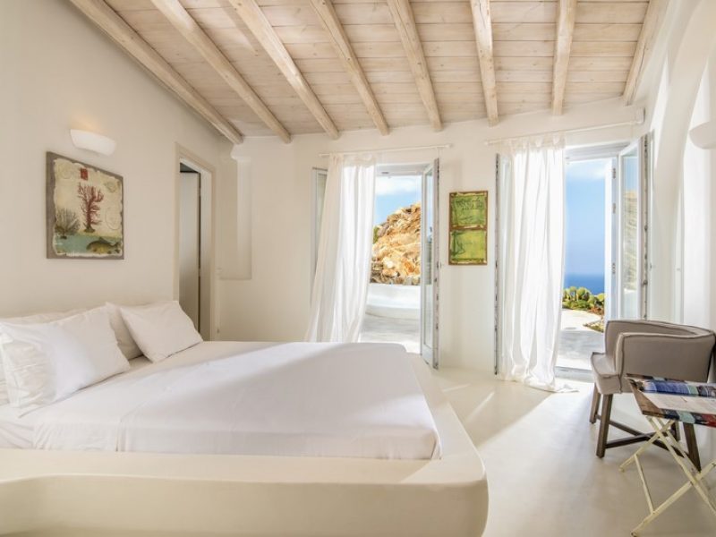 - A vast veranda with panoramic views to the endless “blue” of the Aegean Sea.
