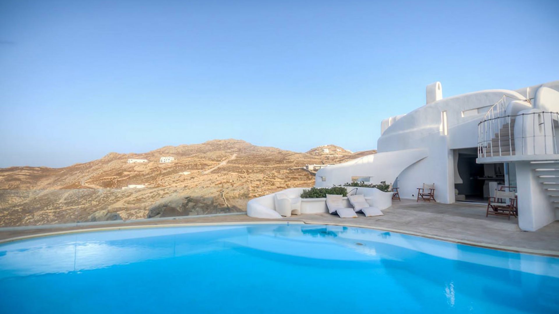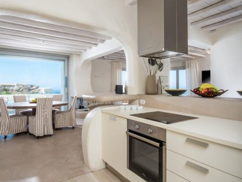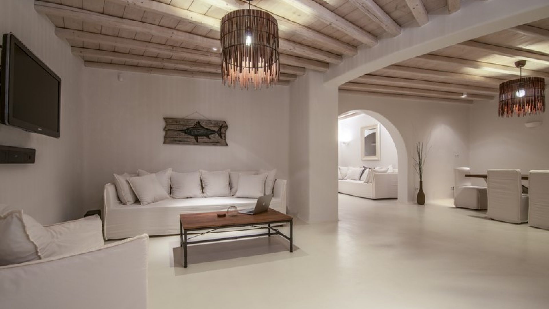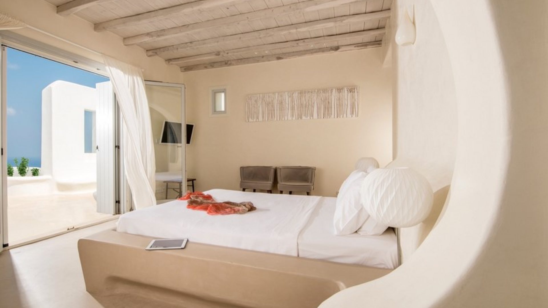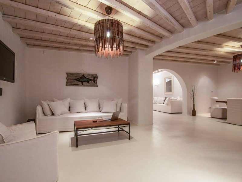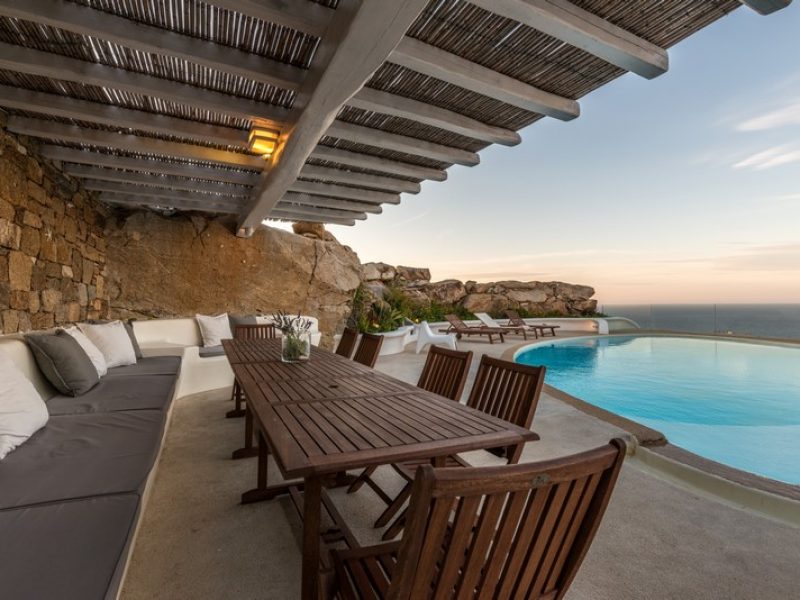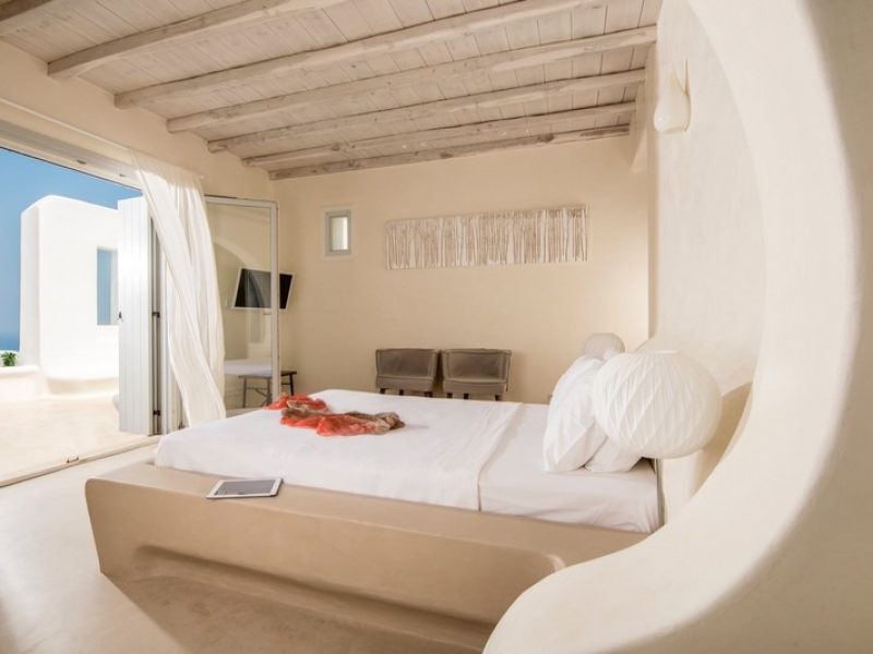 - A vast veranda with panoramic views to the endless “blue” of the Aegean Sea.