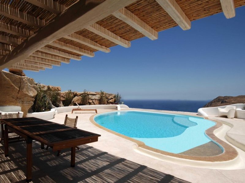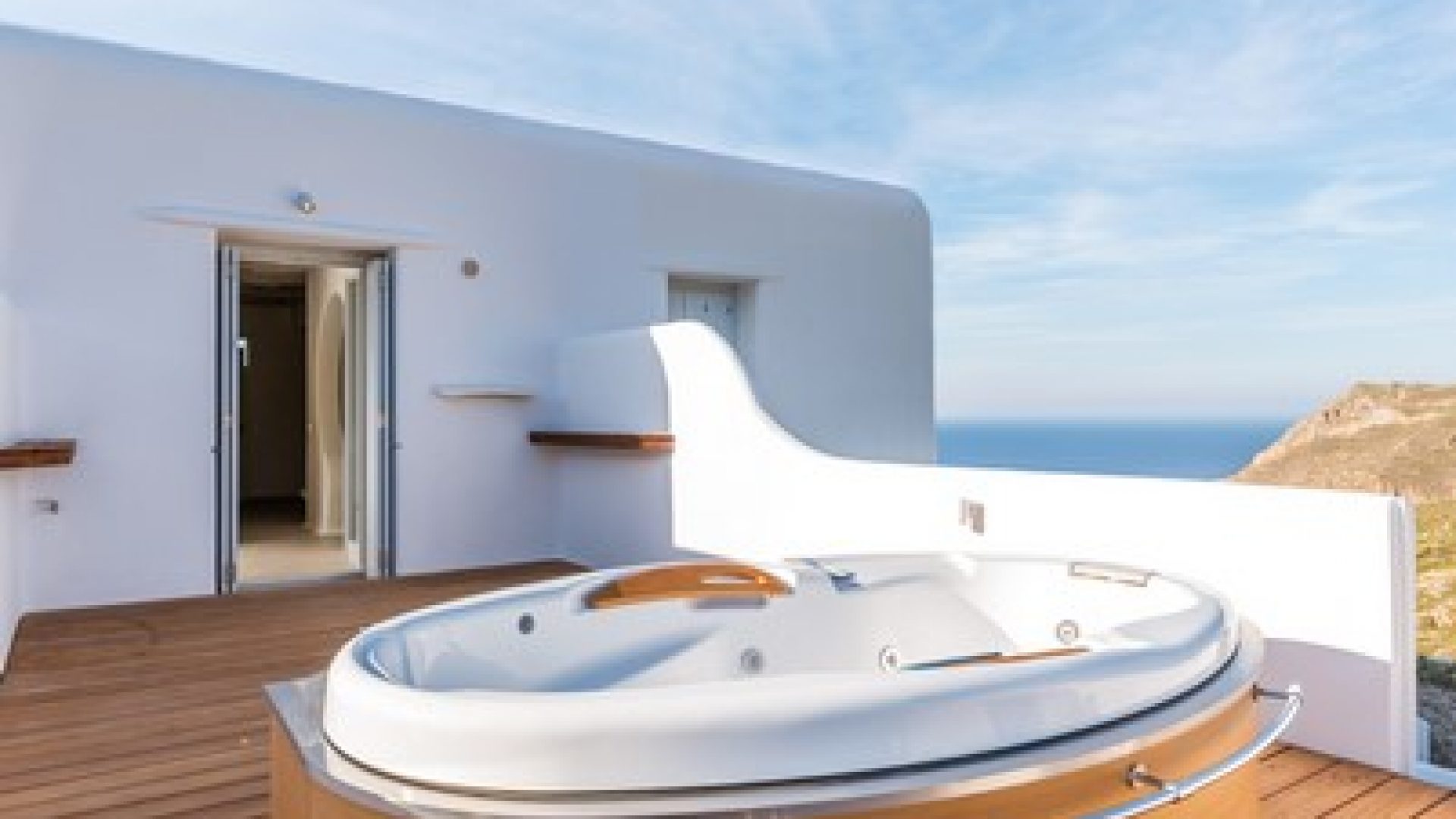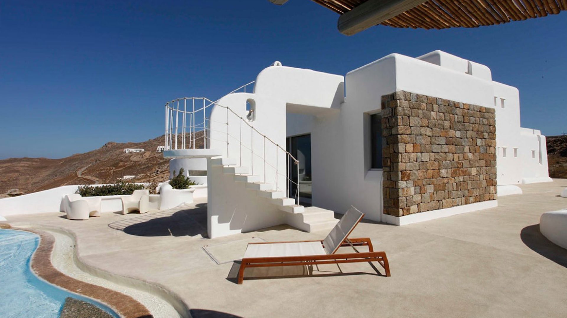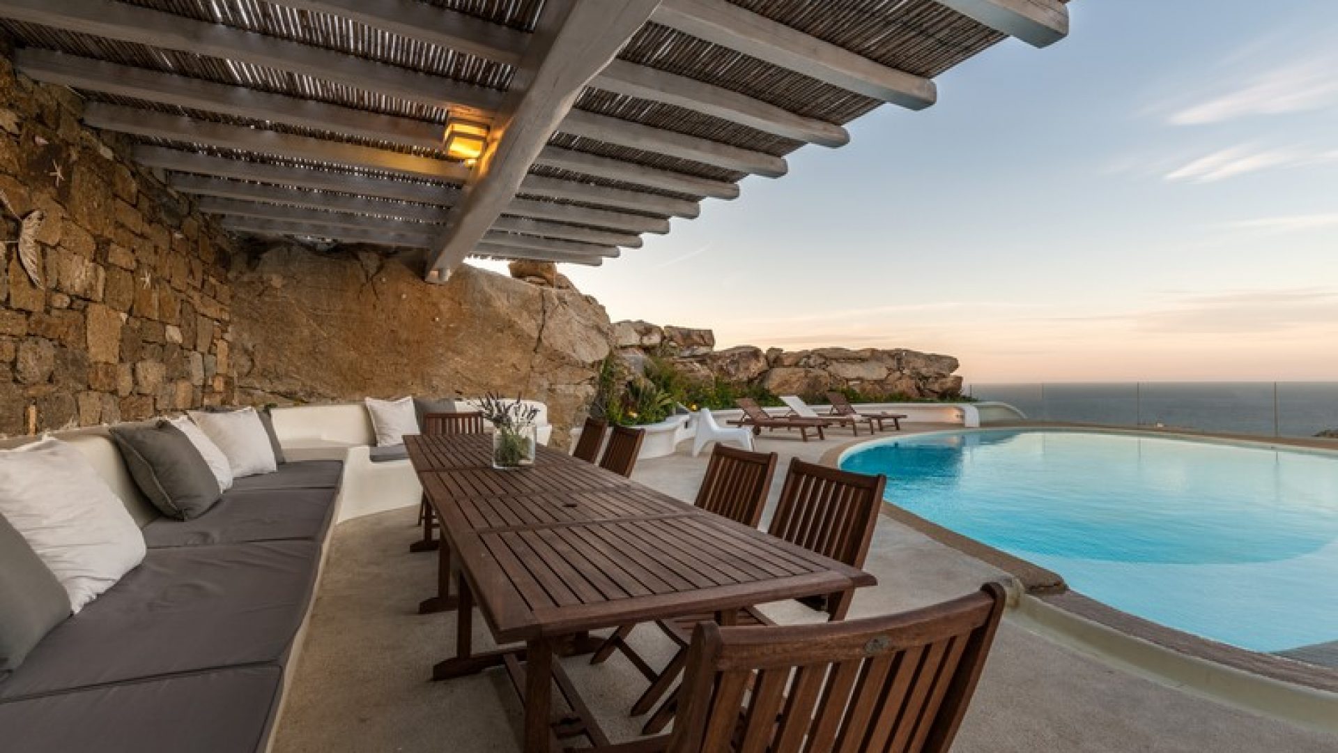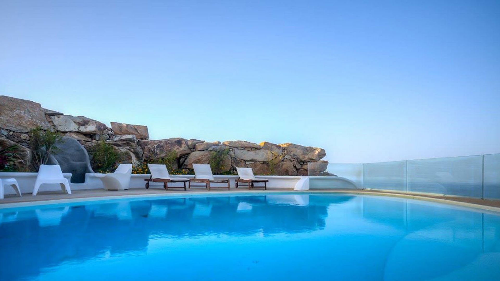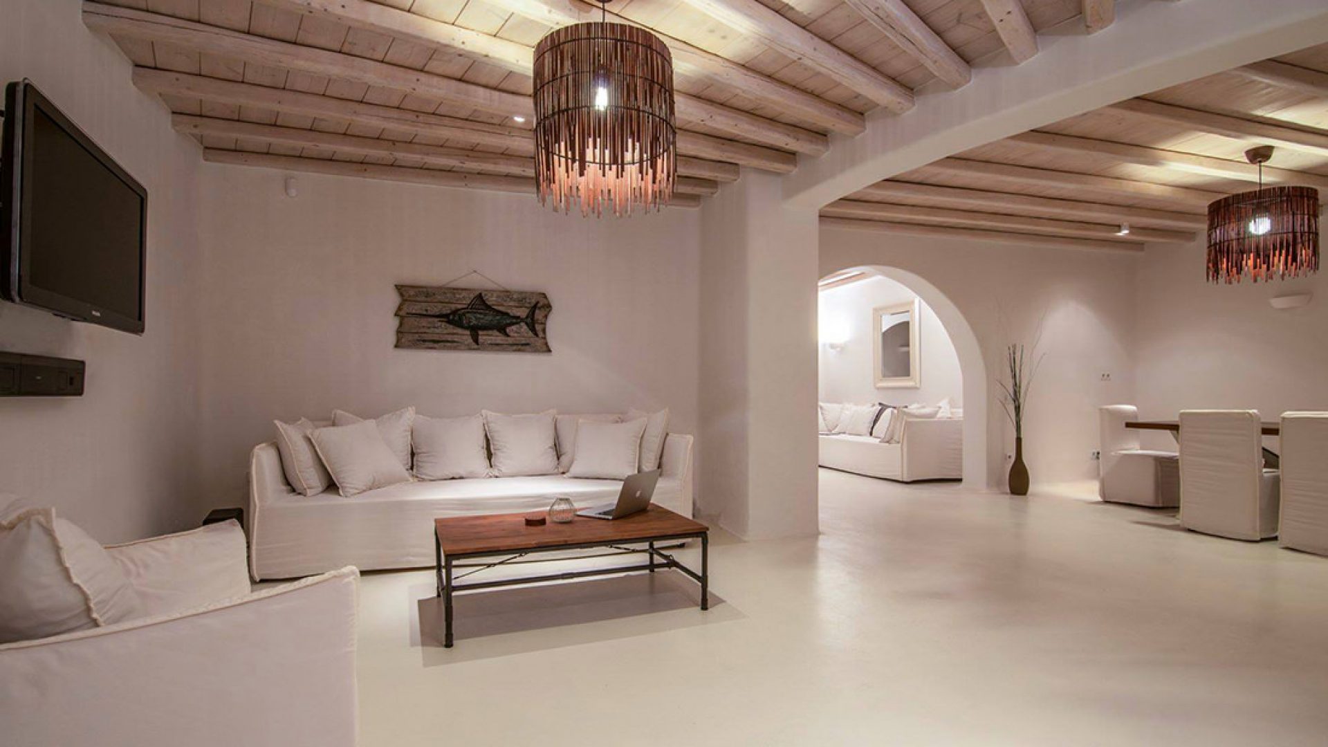 - A vast veranda with panoramic views to the endless “blue” of the Aegean Sea.