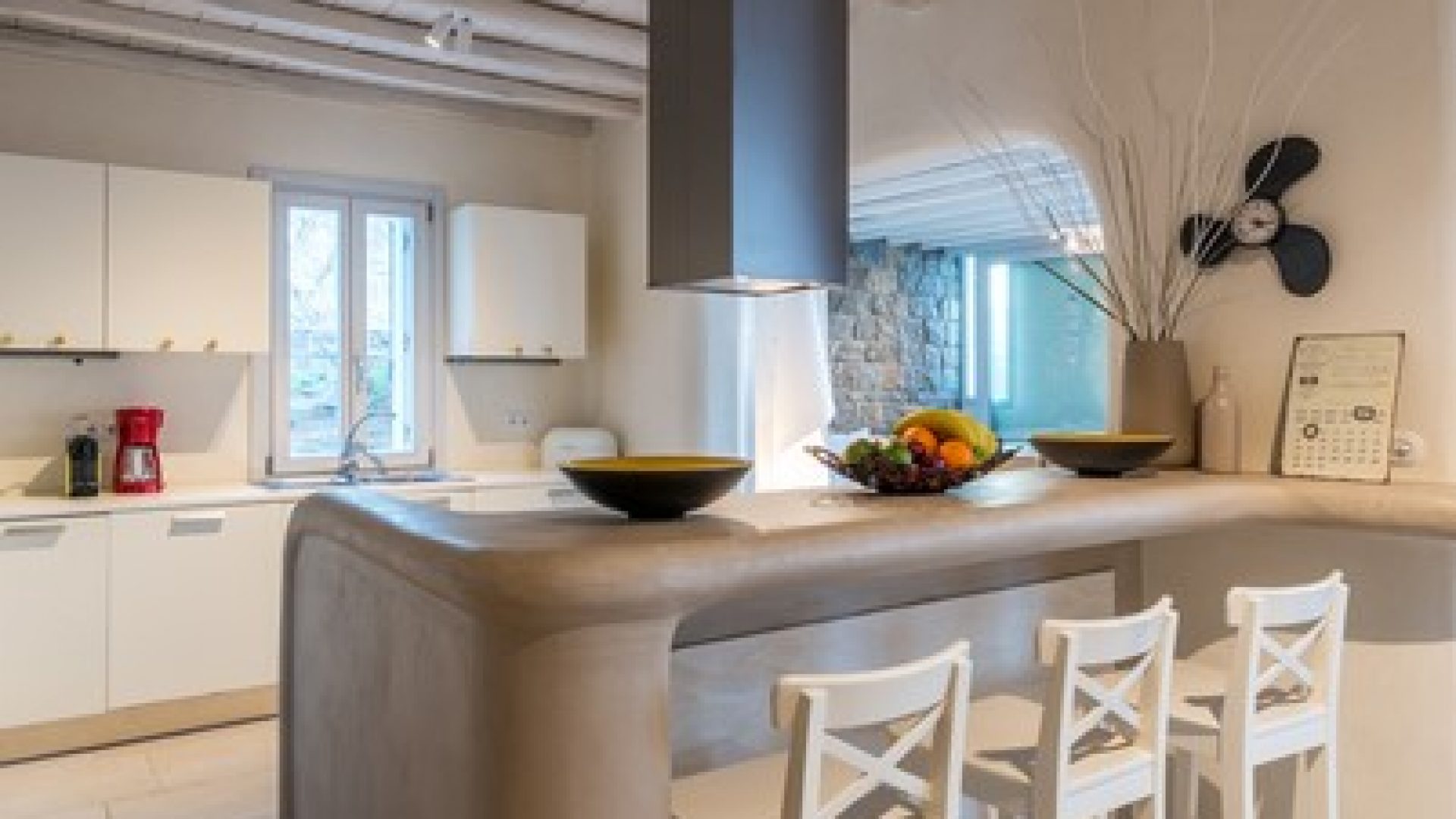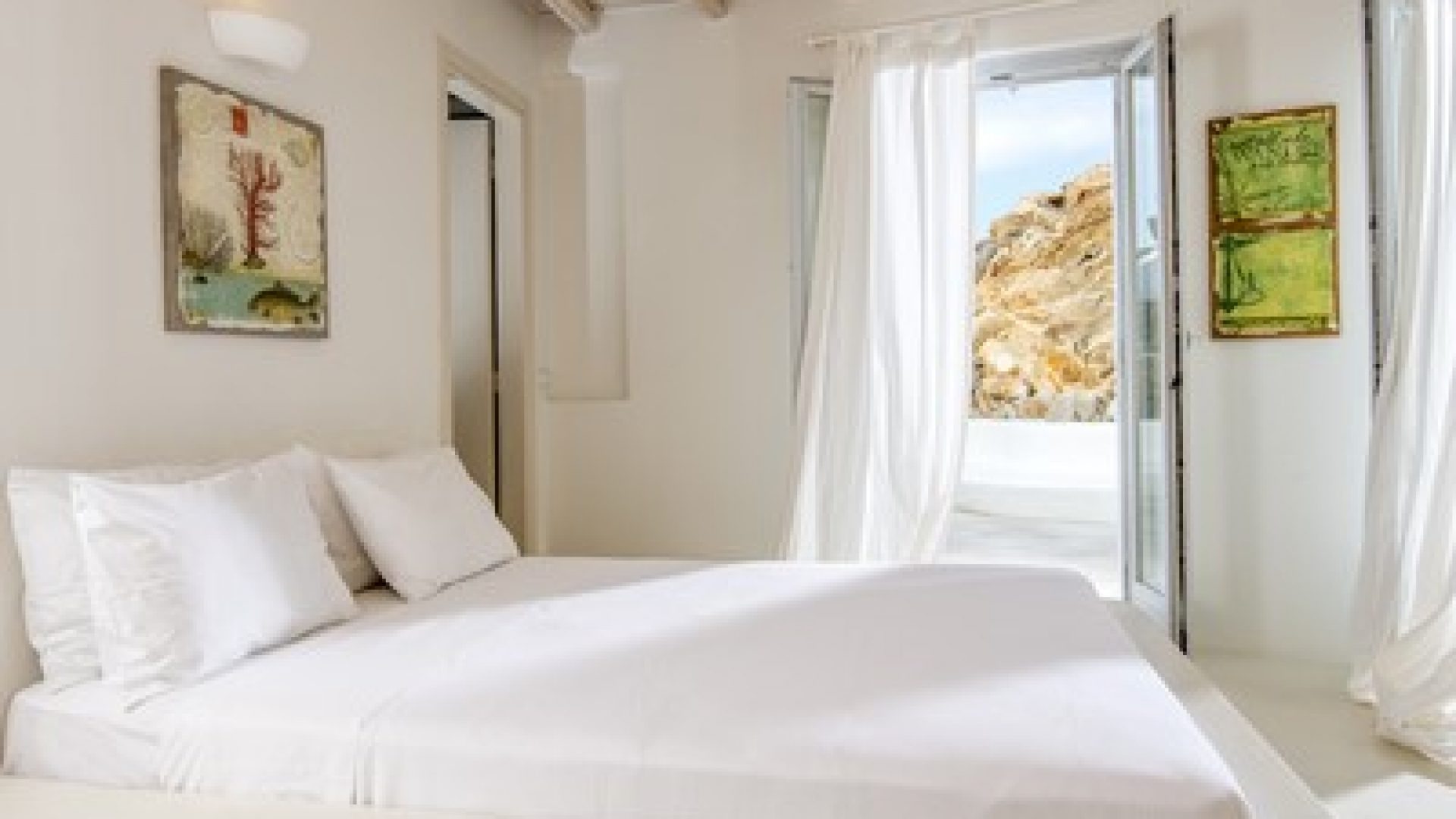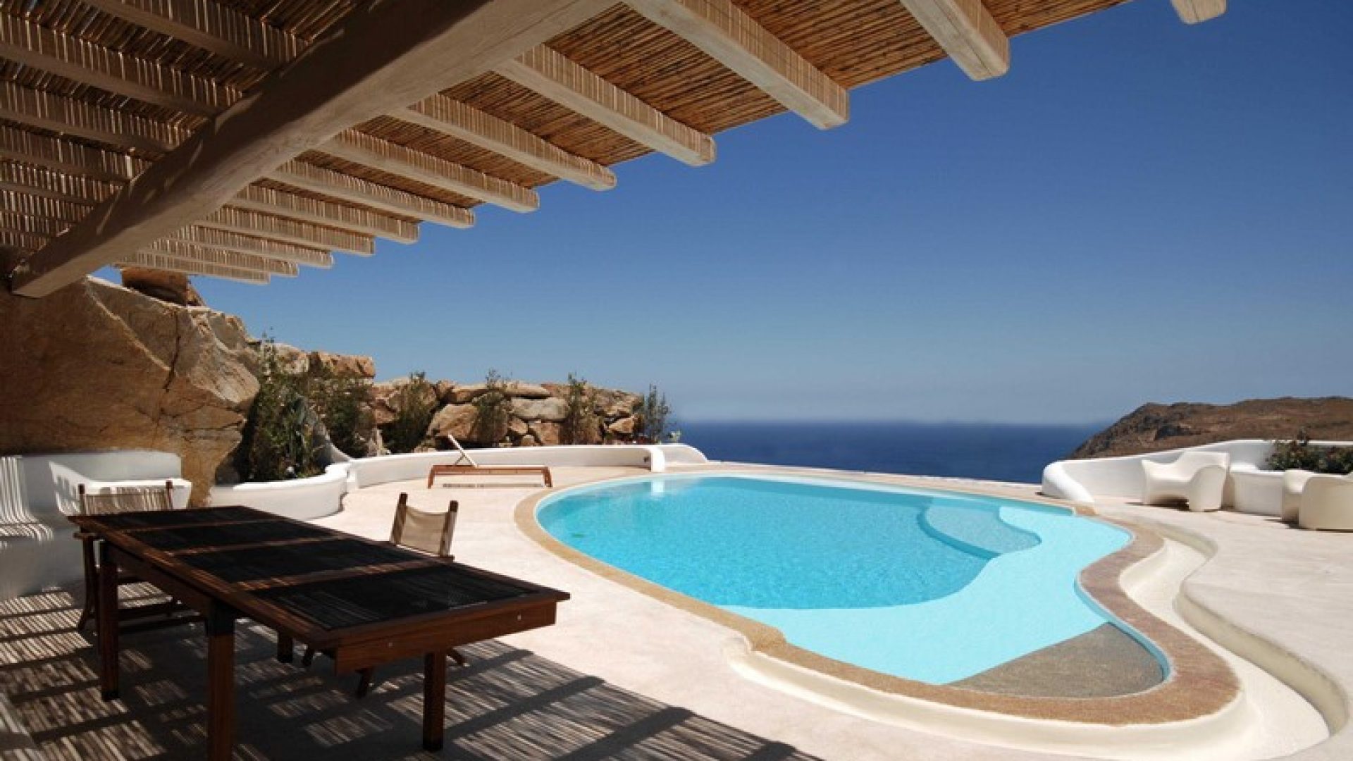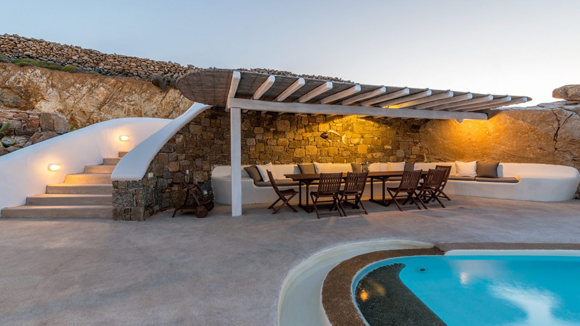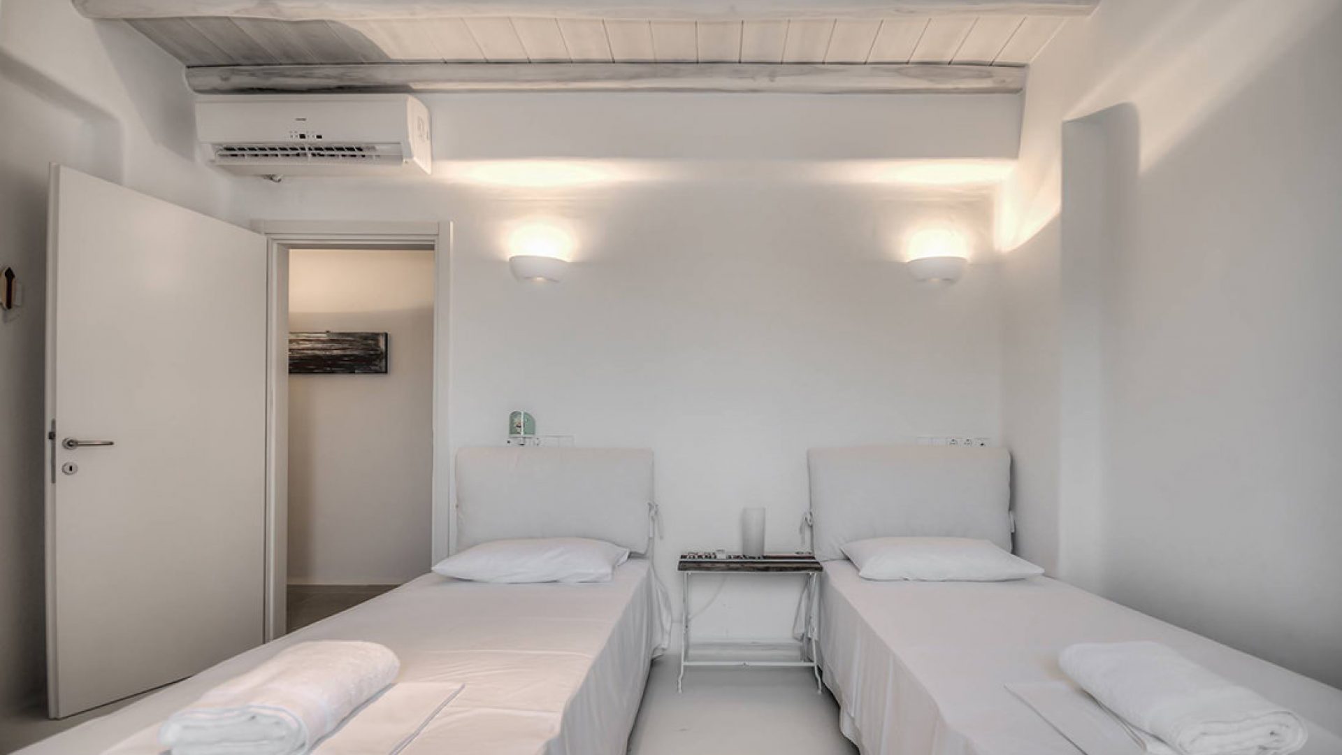 - A vast veranda with panoramic views to the endless “blue” of the Aegean Sea.