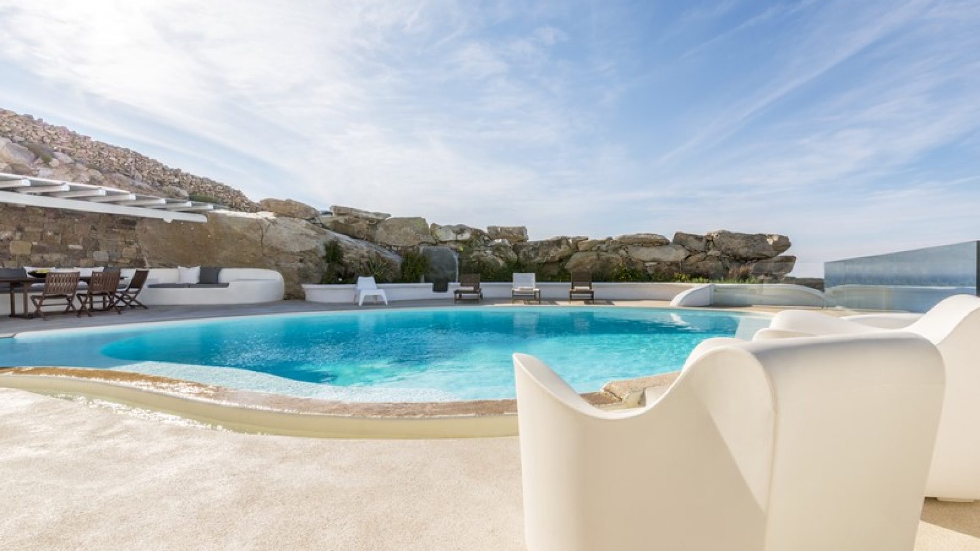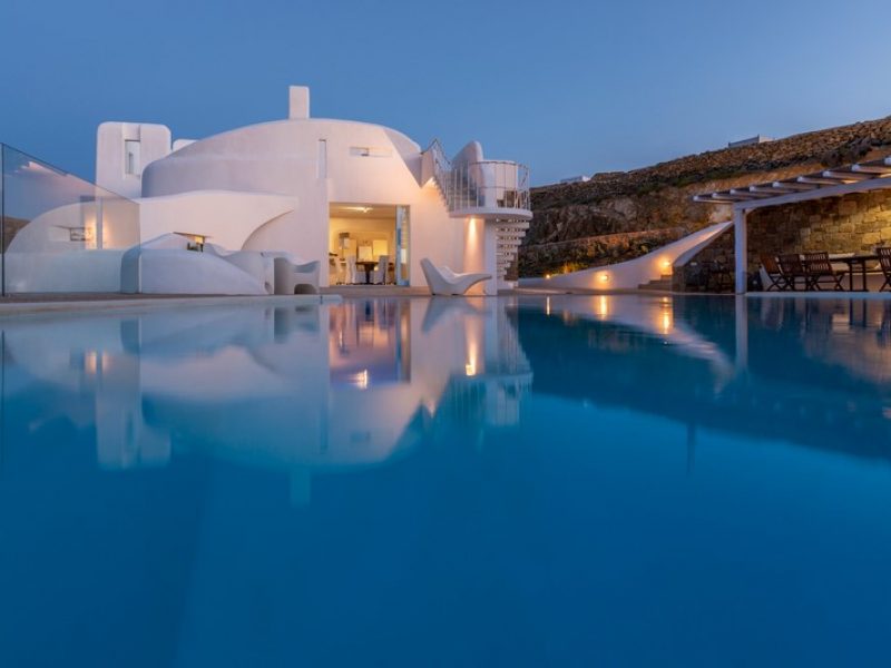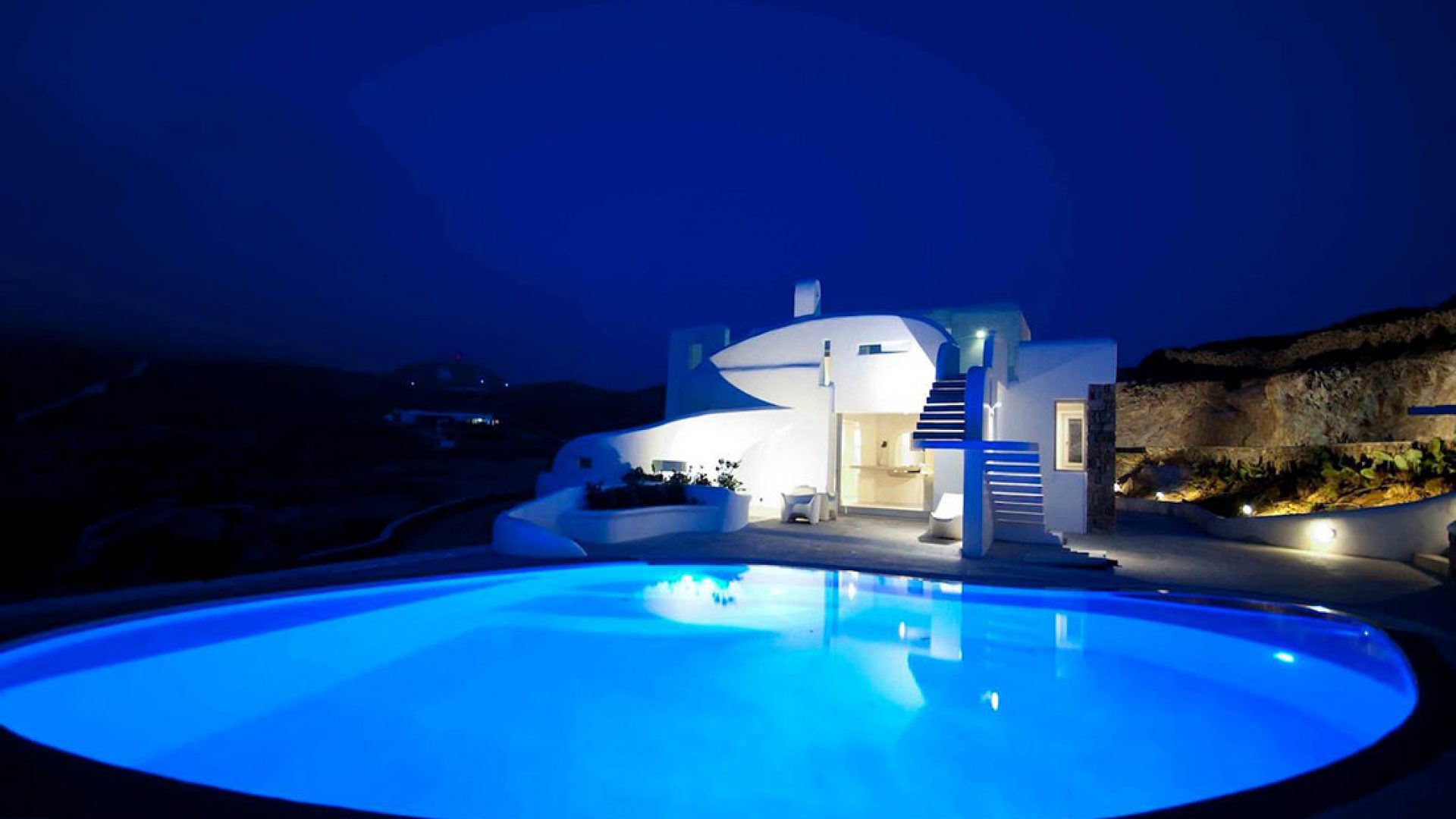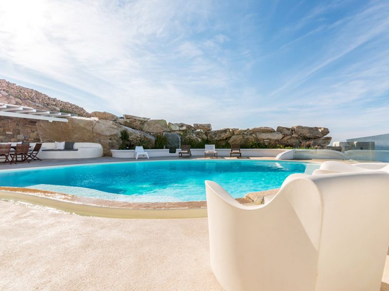 Villa Regalior is located in the “Fanari area” in a distance of 4km from the Town of Mykonos and 6km from the island’s international airport. In a plot of 4.000m2 there is a 480m2 luxurious residence extending on three distinct levels.