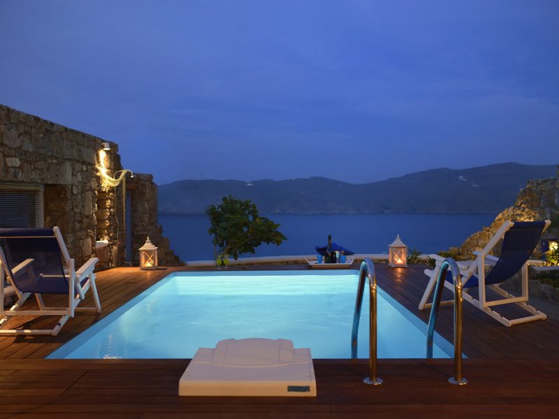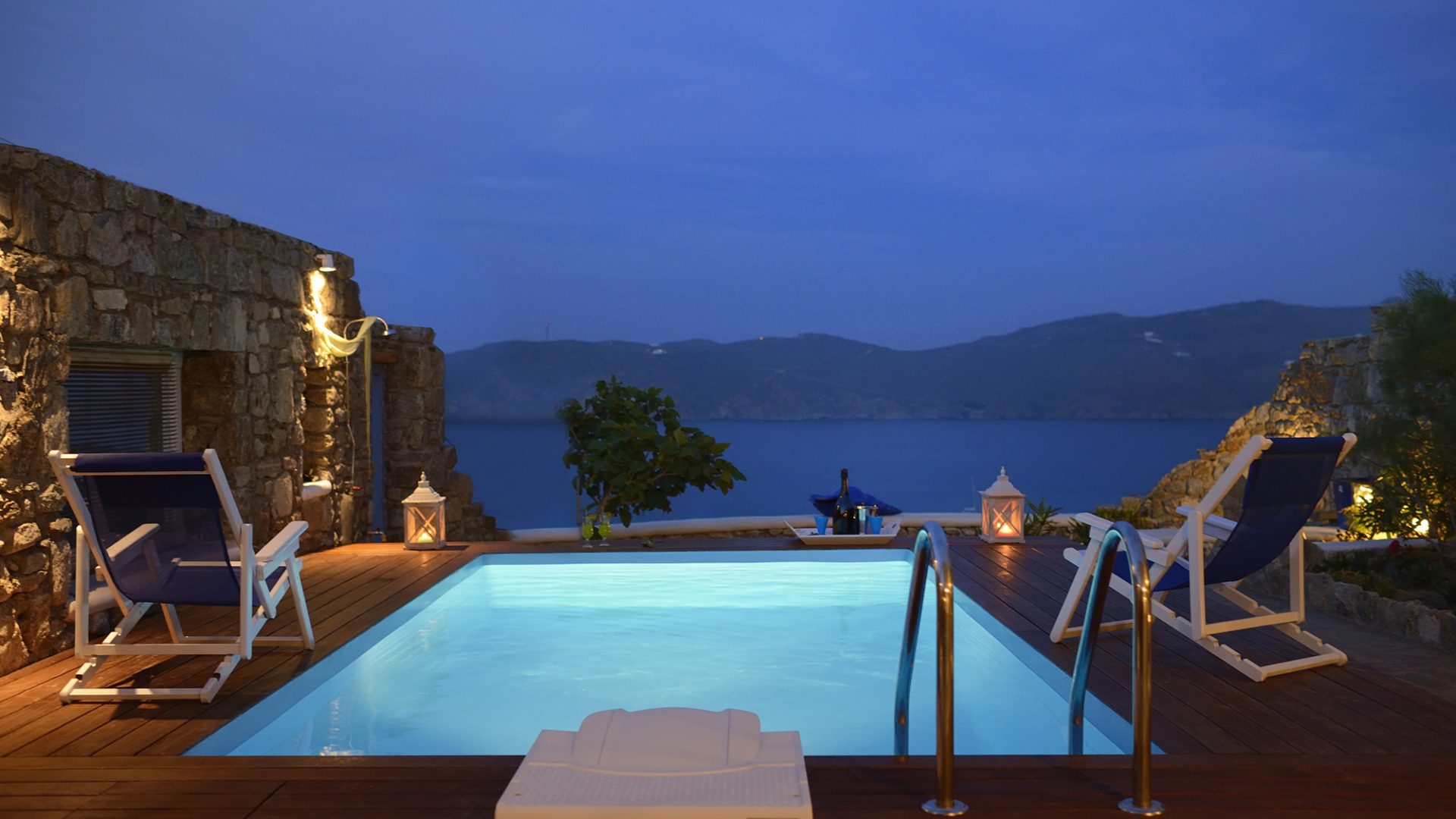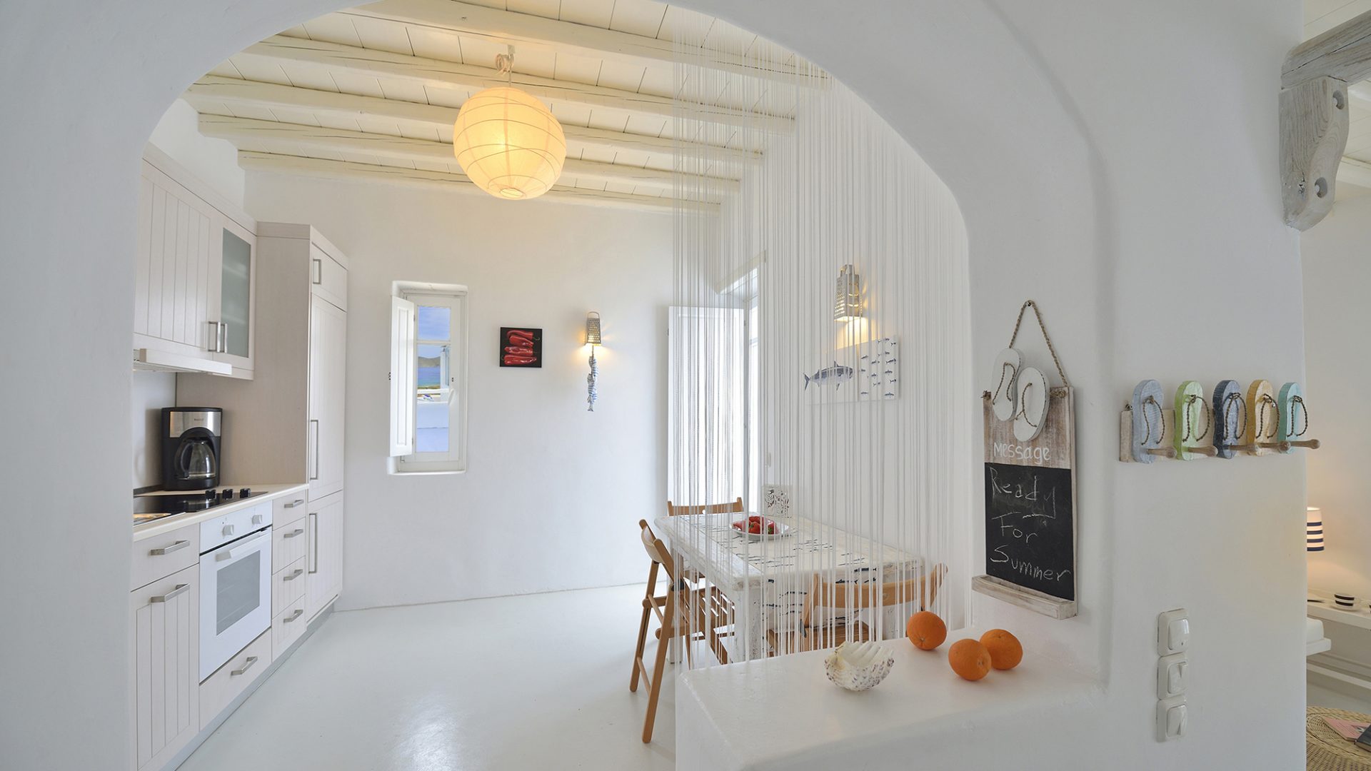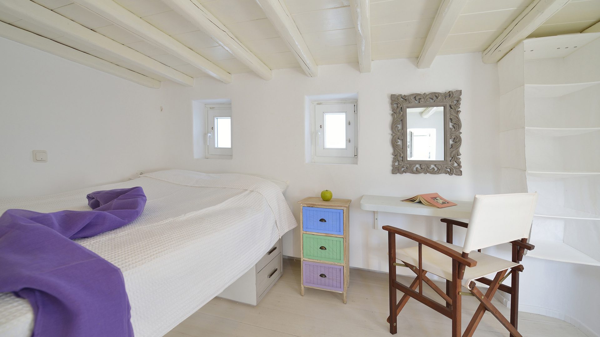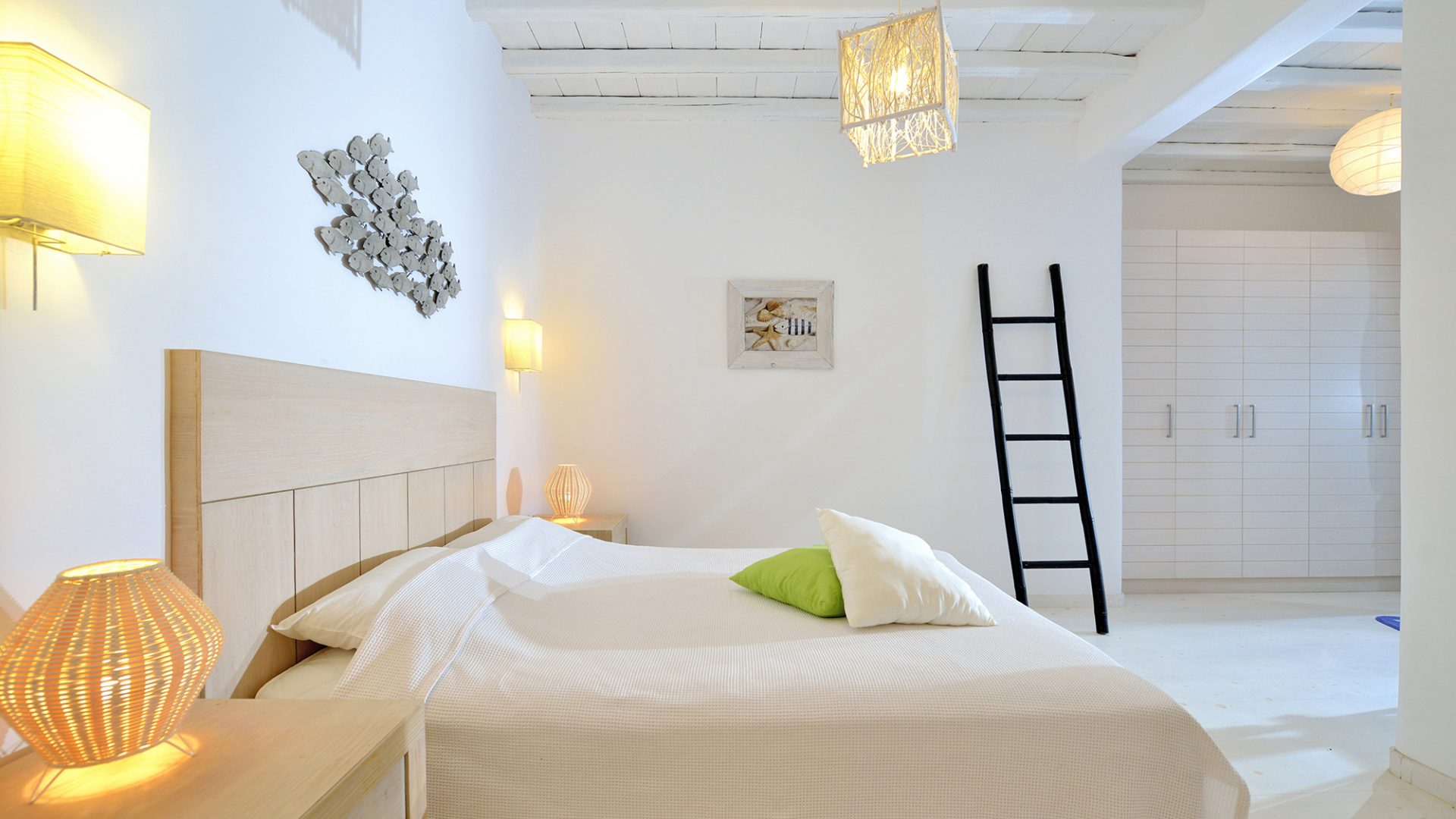 A private complex located in Panormos, with exceptional Myconian architecture, combining tradition and modern design, offers a panoramic view of the Aegean Sea, is a perfect place to relax and enjoy a wonderful staying in Mykonos. The view is unhindered and gazes at one of the best beaches of Mykonos, Panormos, where you can have a good time until late, at the three beautiful Bars and Restaurants, and enjoy the music of the DJ.