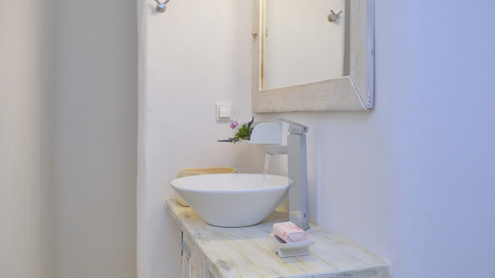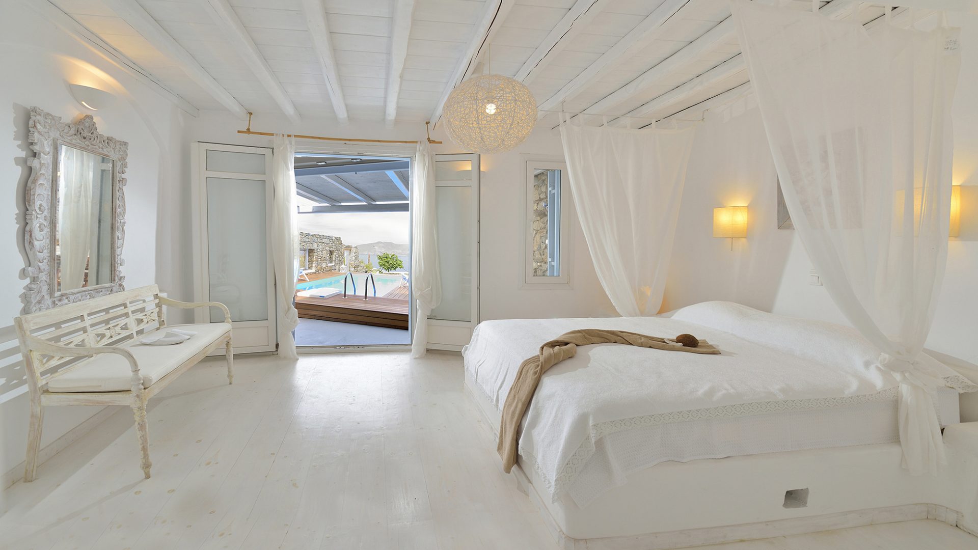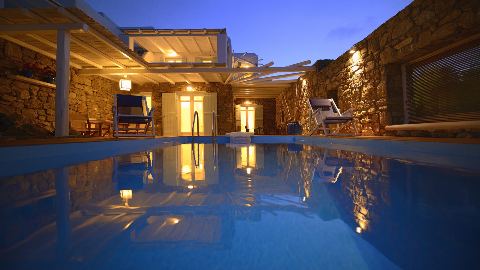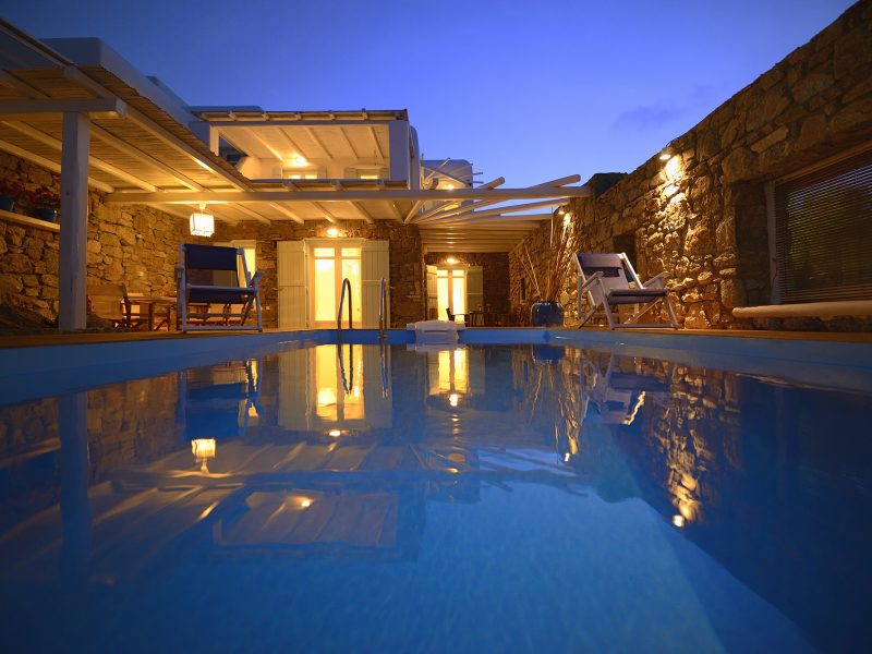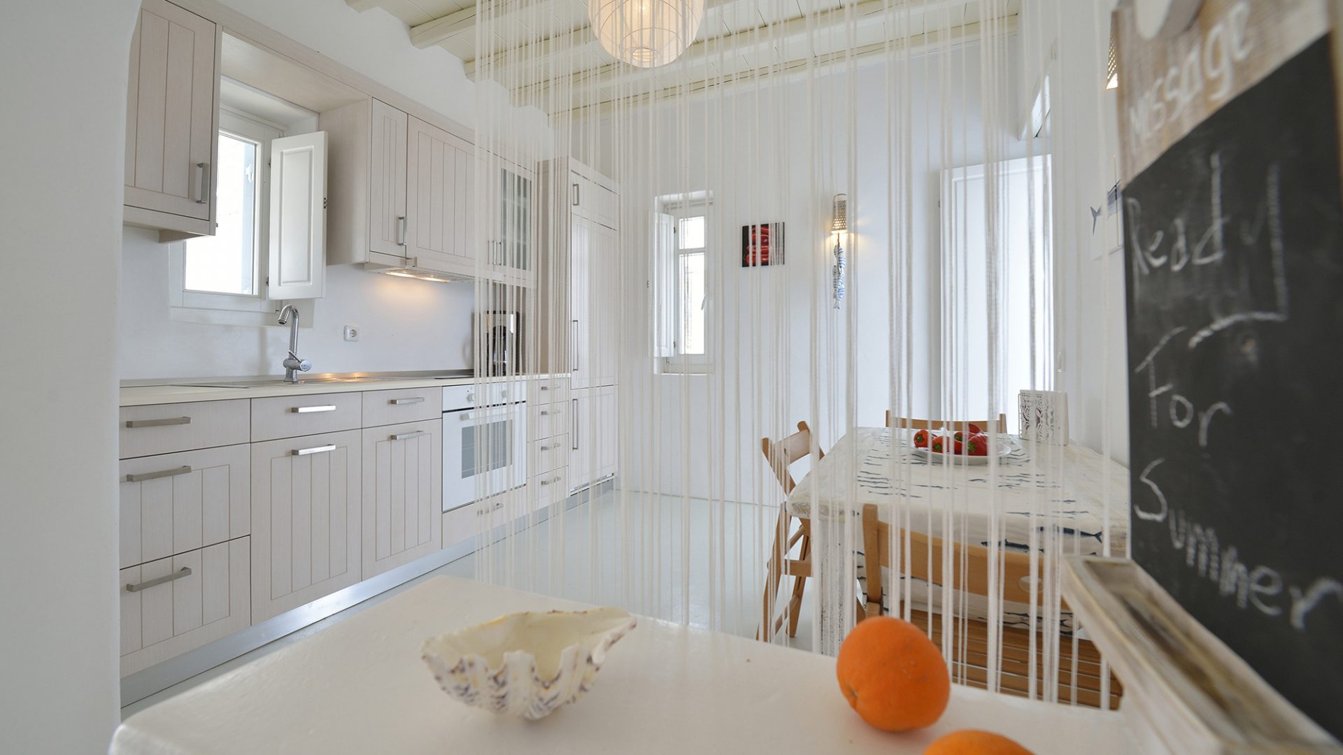 A private complex located in Panormos, with exceptional Myconian architecture, combining tradition and modern design, offers a panoramic view of the Aegean Sea, is a perfect place to relax and enjoy a wonderful staying in Mykonos. The view is unhindered and gazes at one of the best beaches of Mykonos, Panormos, where you can have a good time until late, at the three beautiful Bars and Restaurants, and enjoy the music of the DJ.