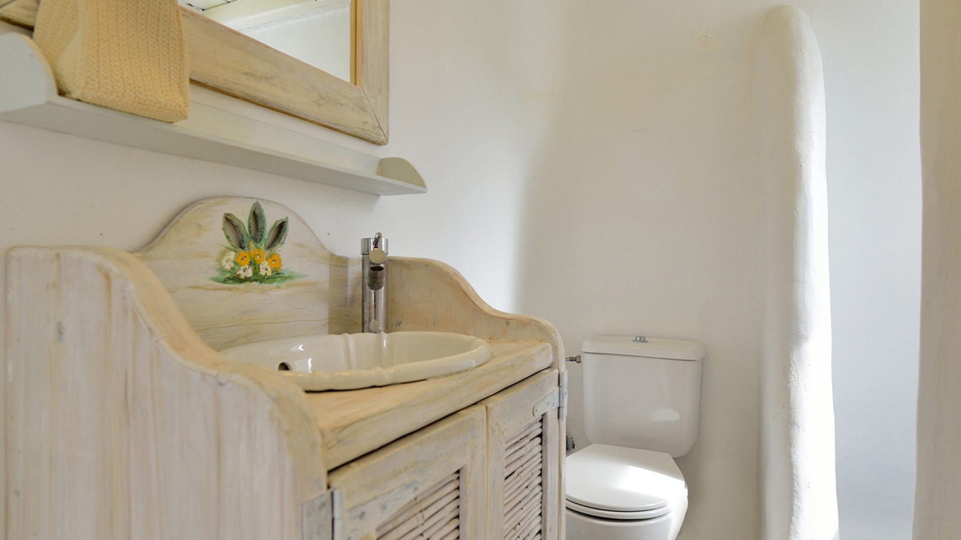 The Villa is built on two levels. It consists of three bedrooms with double beds, a bathroom, a living room, a fully equipped kitchen, two outside areas with furniture, a swim spa/pool and a lower terrace. There is also a BBQ, towels, sheets, cleaning every three (3) days.