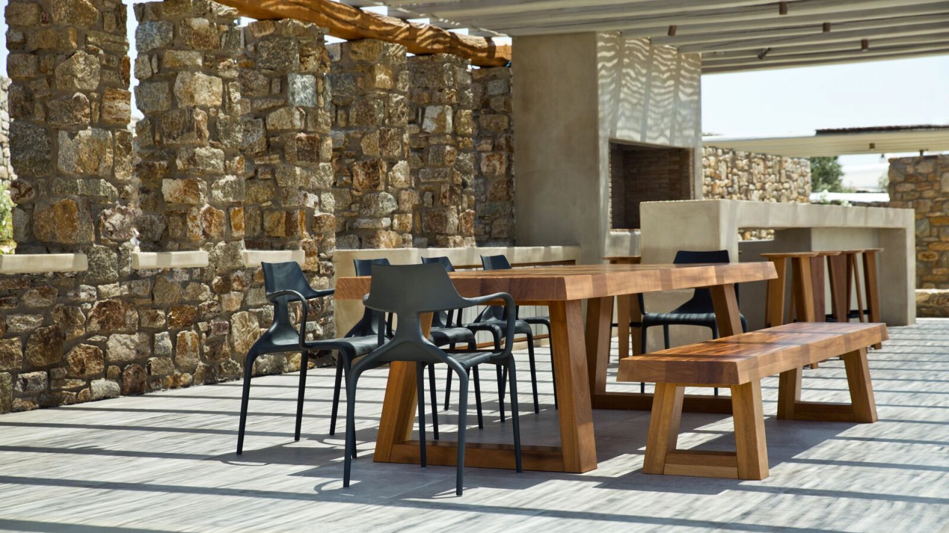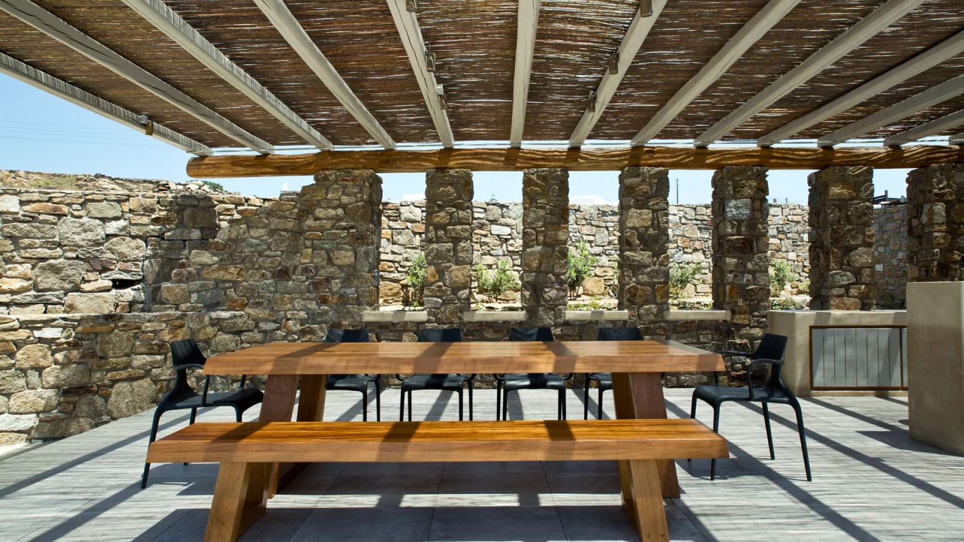 Ideally located in the Agia Sofia area, the Aria Mykonos Villa a home-away-from-home, combines state-of-the-art amenities and exclusive VIP services with the traditional Mykonian style. The architecture of the residence is based on natural materials such as stone and wood, to ensure light abundance and the open space experience.