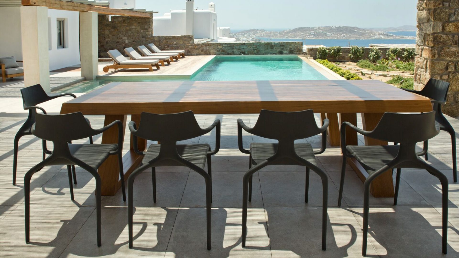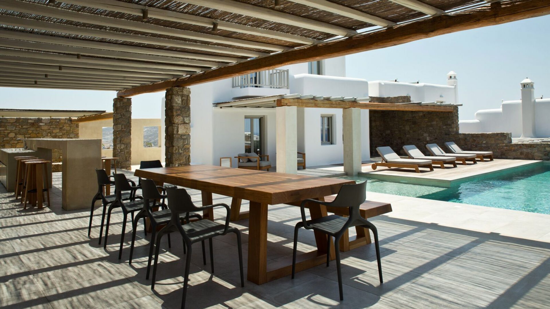 Time for a last swim in the pool, gazing at the sea just as the sun dives into the infinite blue of the Aegean Sea. You tap the remote control to change the music theme and enjoy a glass of wine before indulging yourself in a luxury foam bath in your ensuite bathroom. The fire is almost ready for the outdoor BBQ party and you are looking forward to welcoming your guests.