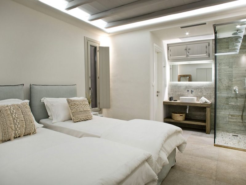Staying at the Aria Mykonos Villa means you have the whole world in your hands: quiet and serene homelike evenings, a beautiful view of the port and the neighboring islands, access to dreamlike beaches and a walk away from the legendary dining, shopping, and clubbing that attracts visitors from around the world!