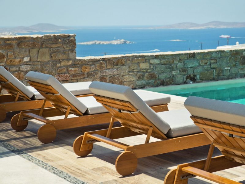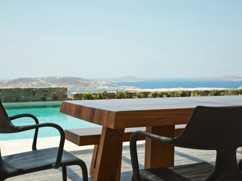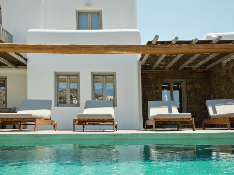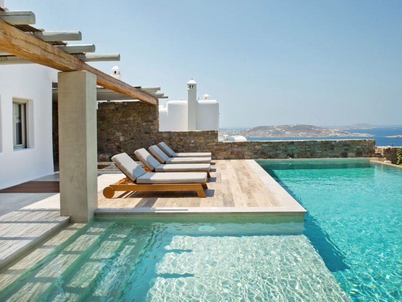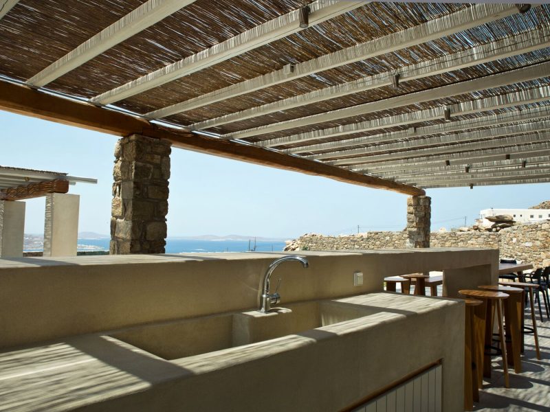 The luxury villa bears its own magic touch; the special qualities of coolness, calmness, and a breathtaking view of the island and the Aegean Sea.
