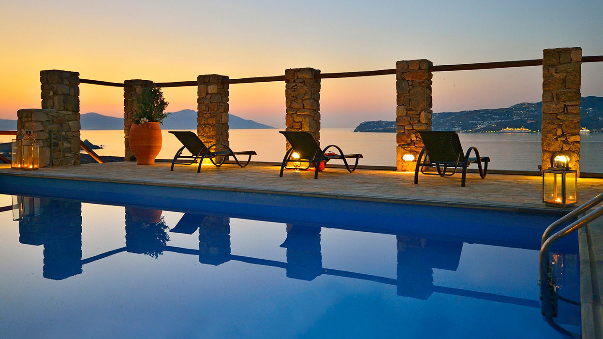 Located in one the most panoramic sides of Mykonos “Kanalia” with views that range from the island of Tinos to the island of Delos and the sunset within the blink of an eye. The easy access to Mykonos Town also allows for the combination of quality time on the premises with moments of nightlife action in the island’s vibrant Chora.