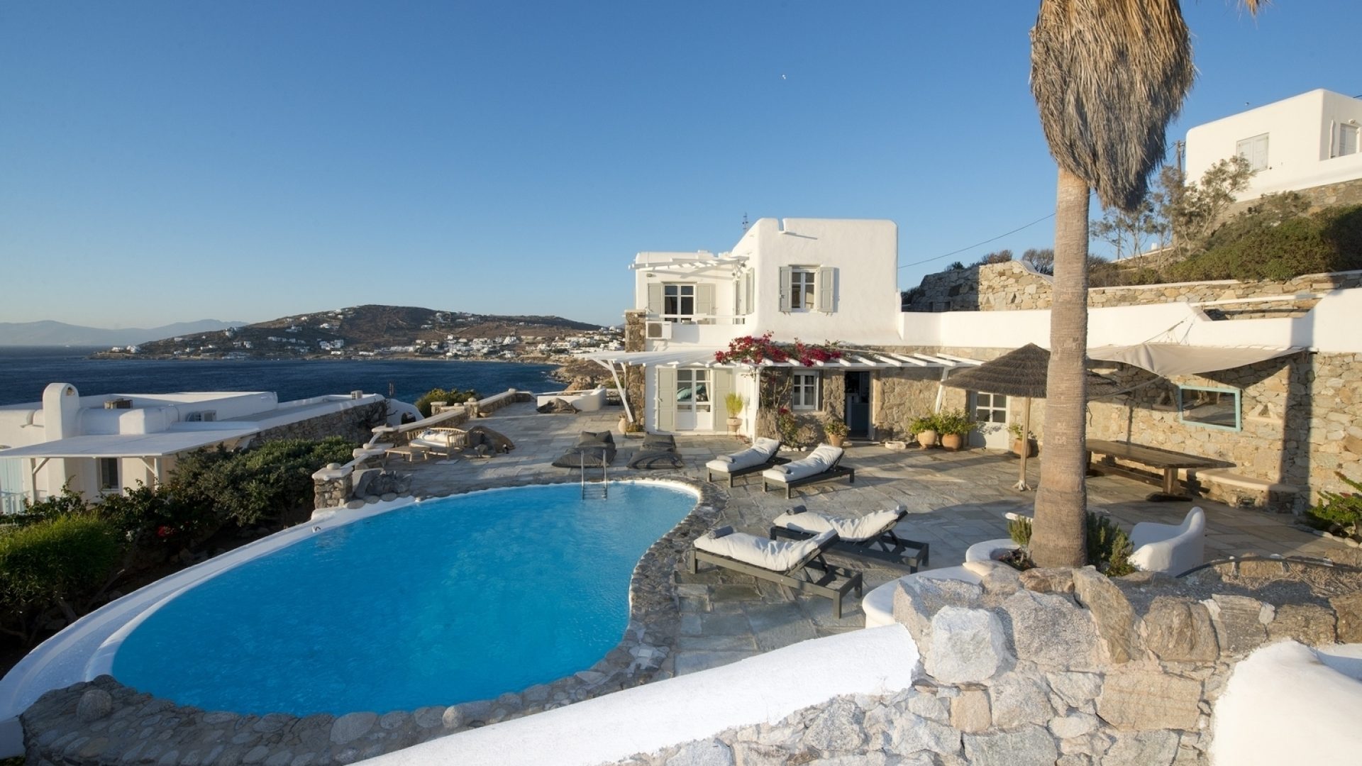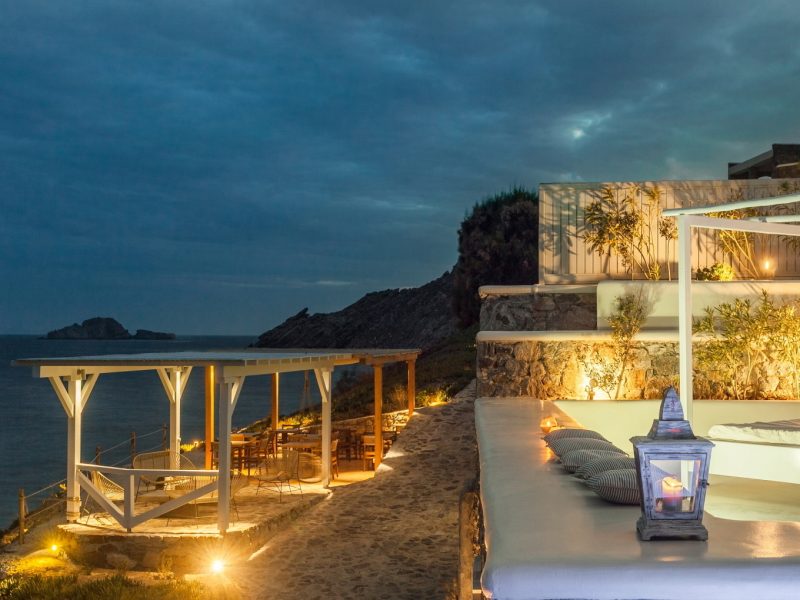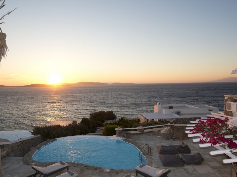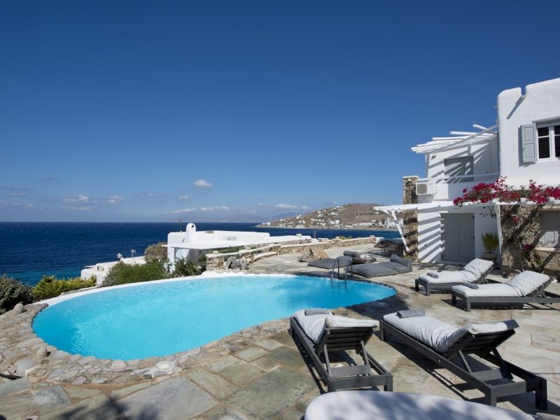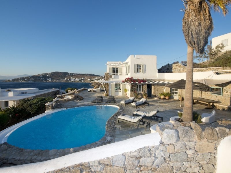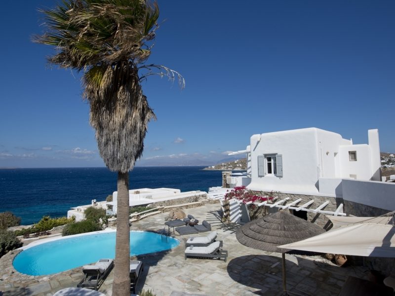 The property is located on the Aleomandra peninsula on the elite south-western shore of the island and a short distance from the fashionable beaches at Kapari, Ornos, and Psarou.