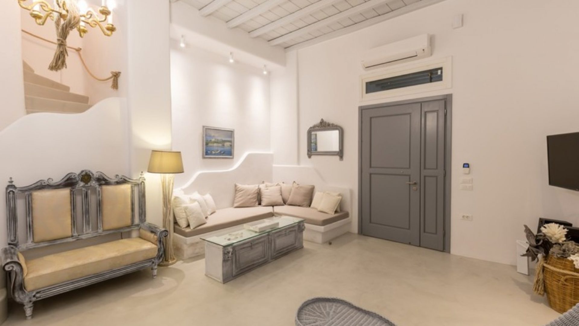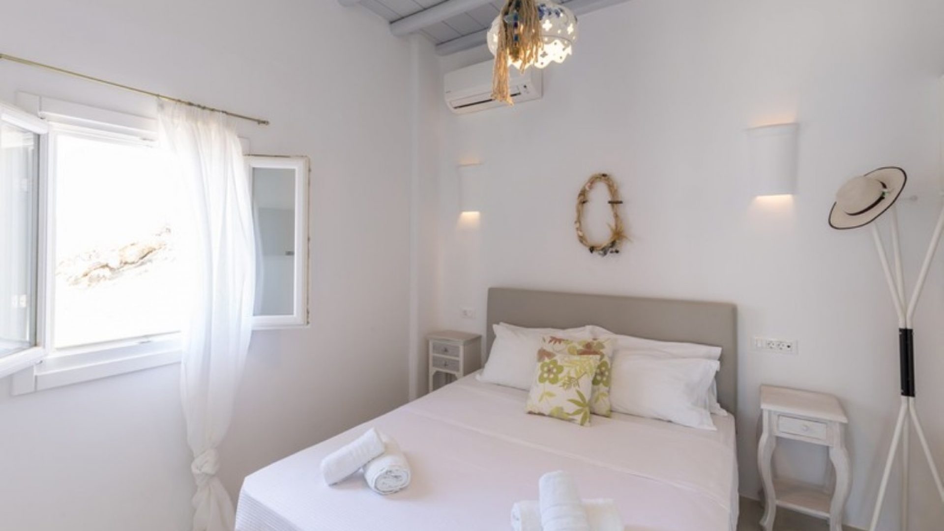 A 5min drive will get you in the middle of everything in the famous socialite and vibrant life in the old town of Mykonos, a 7 min drive to the famous beach of Psarrou and a 1 minute’s drive to Ornos beach.