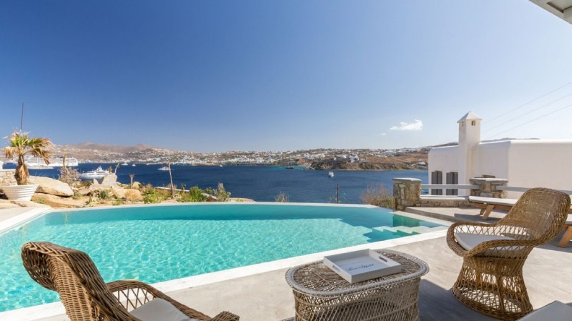 Mykonian eye candy with minimalist interiors, spacious, seductive with jaw-dropping vistas