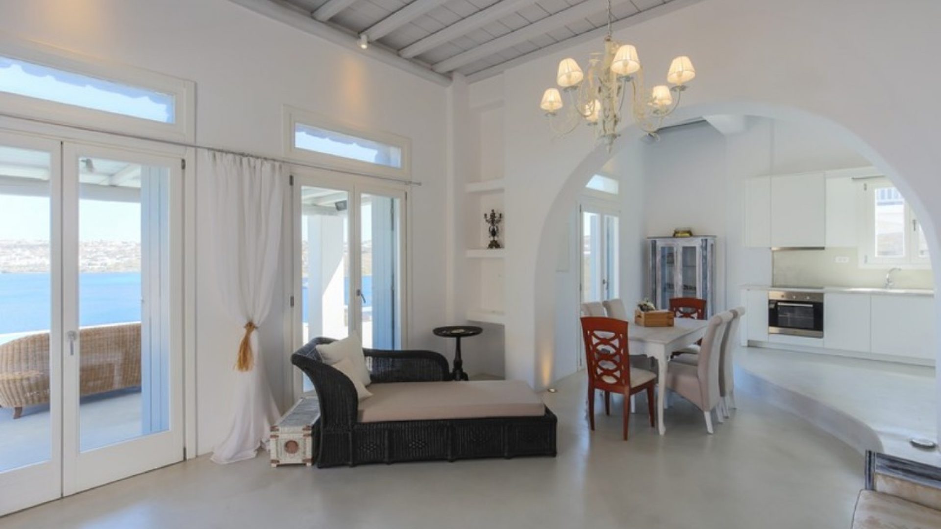 A 5min drive will get you in the middle of everything in the famous socialite and vibrant life in the old town of Mykonos, a 7 min drive to the famous beach of Psarrou and a 1 minute’s drive to Ornos beach.