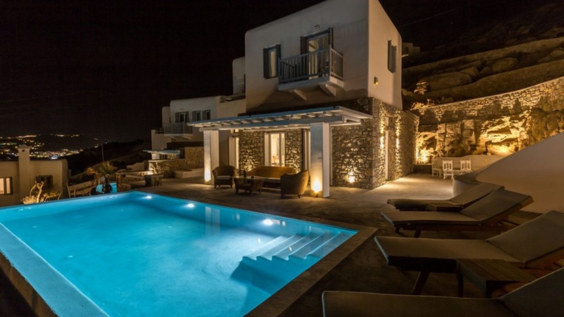The impressive, newly built just “unboxed” Mykonos Identity Villas is situated on a privileged hillside overlooking the sea and picturesque “Little Venice” part of the Town of Mykonos.