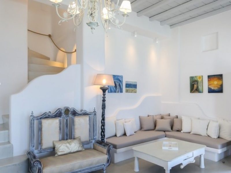 A 5min drive will get you in the middle of everything in the famous socialite and vibrant life in the old town of Mykonos, a 7 min drive to the famous beach of Psarrou and a 1 minute’s drive to Ornos beach.