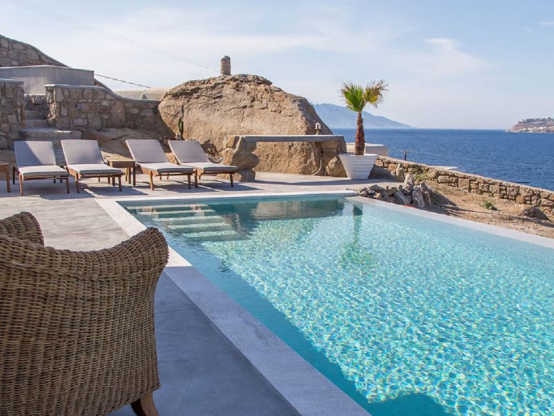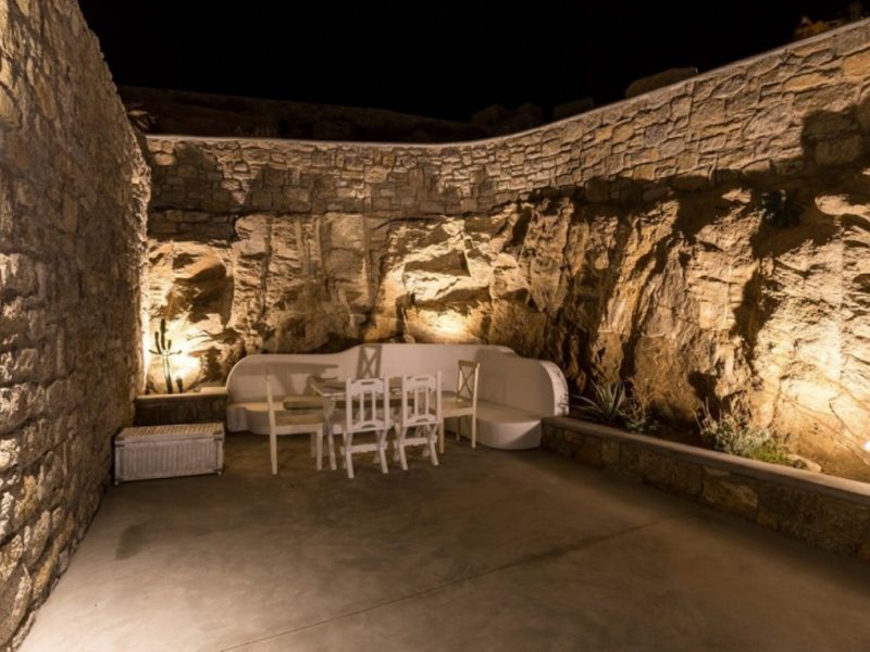 A hillside hideaway in a secluded nearly rural area although close to the town, where you can relax after a long day at the magnificent beaches of the island or a long night in the vivid nightlife. Carved on a hill, 50 m from the coast, in an extraordinary setting framed by beautiful countryside, it blends uniquely in the rocky topography of its hillside, prime and unspoiled, setting.