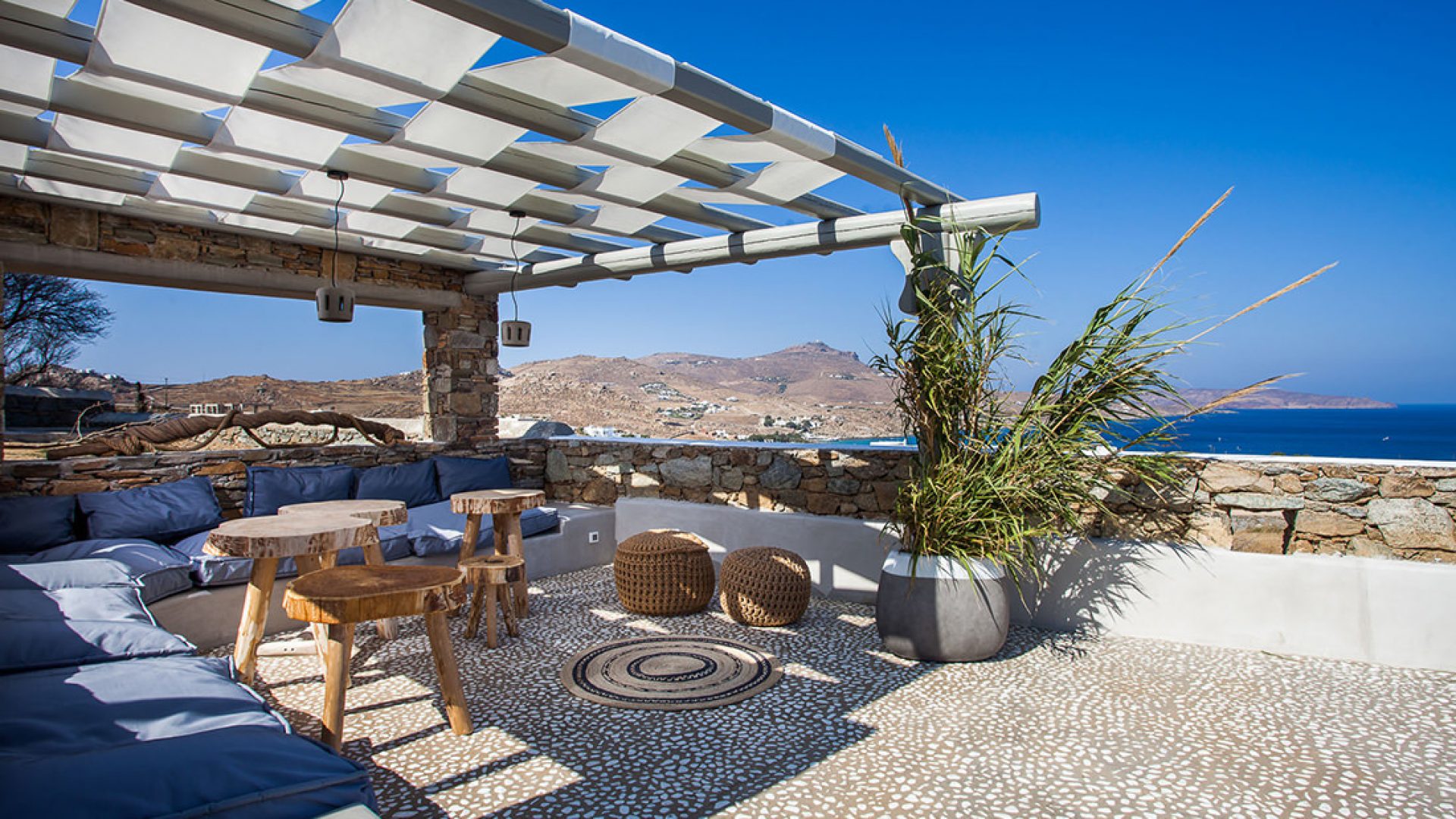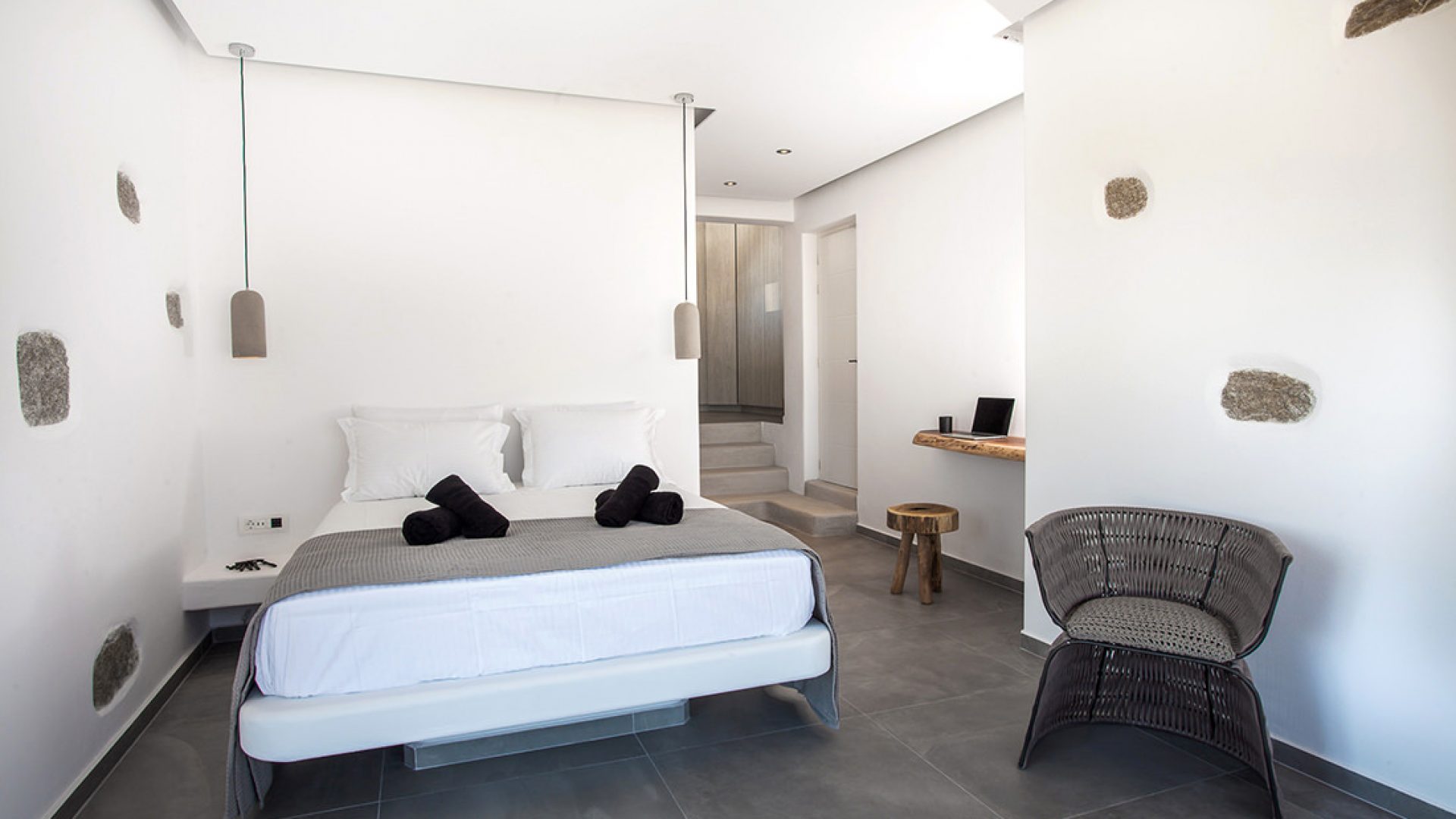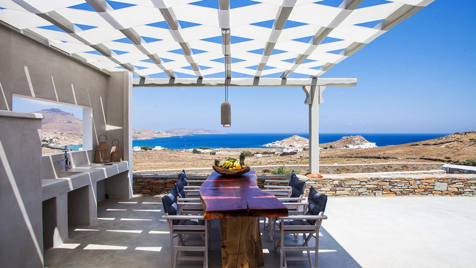 Pioneering a timeless contemporary Cycladic architecture, influenced by traditional Greek tone, Myconian Principal Villa has been designed to flow elegantly between indoor and outdoor living. Interior has been eclectically signed, vastly incorporating natural materials like local Myconian stone as well as massive parts of wood; delivering absolute comfort in breath-taking surroundings, making you feel like home, away from home.