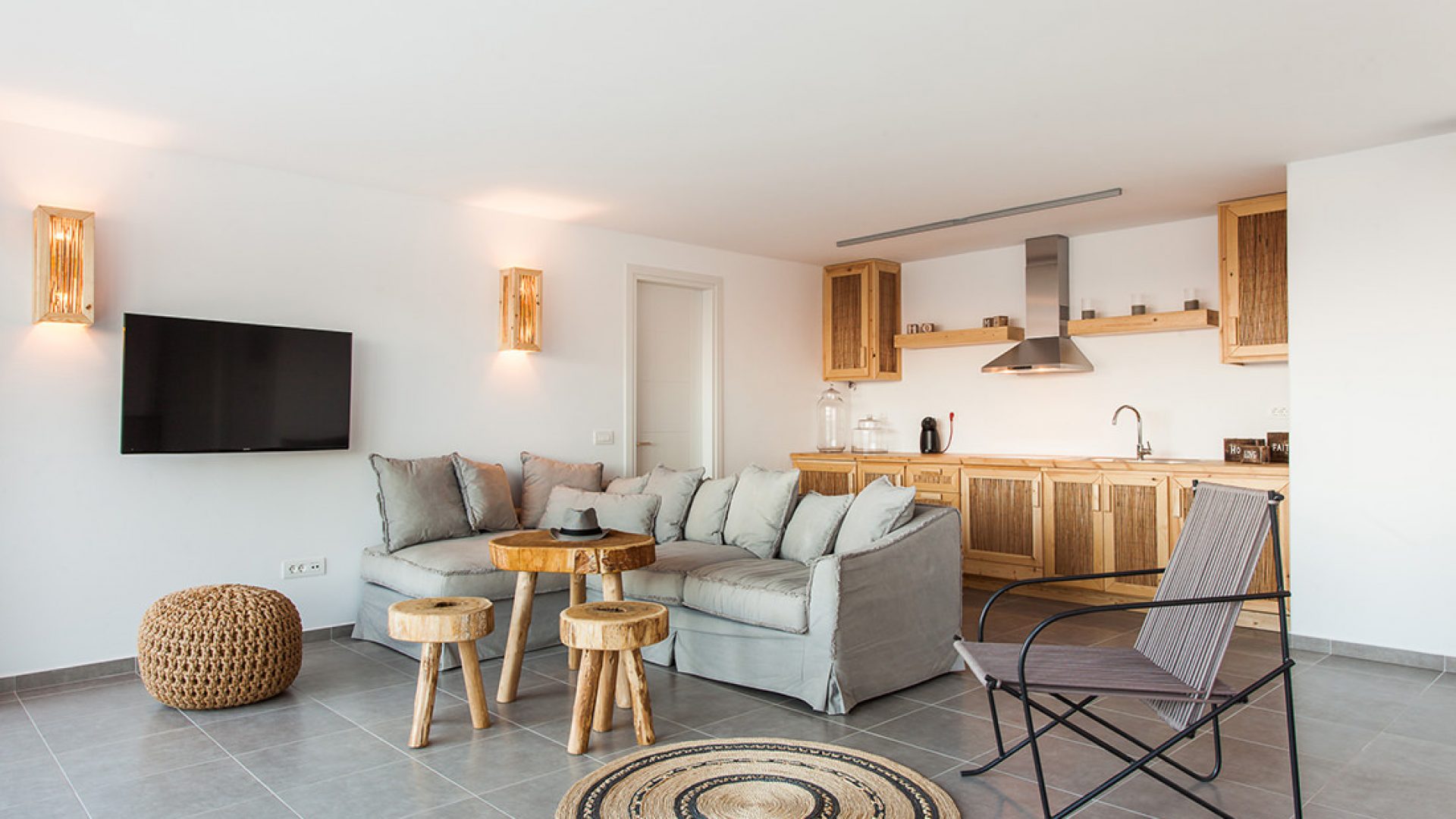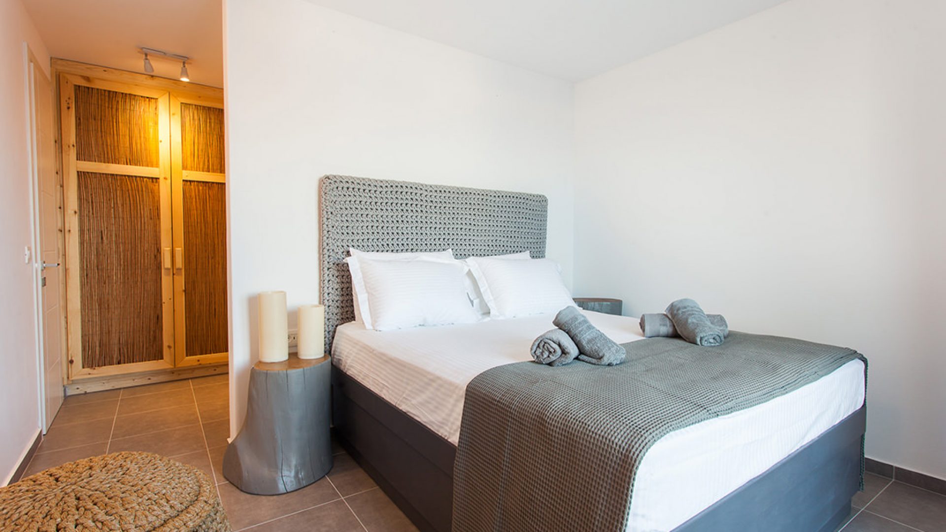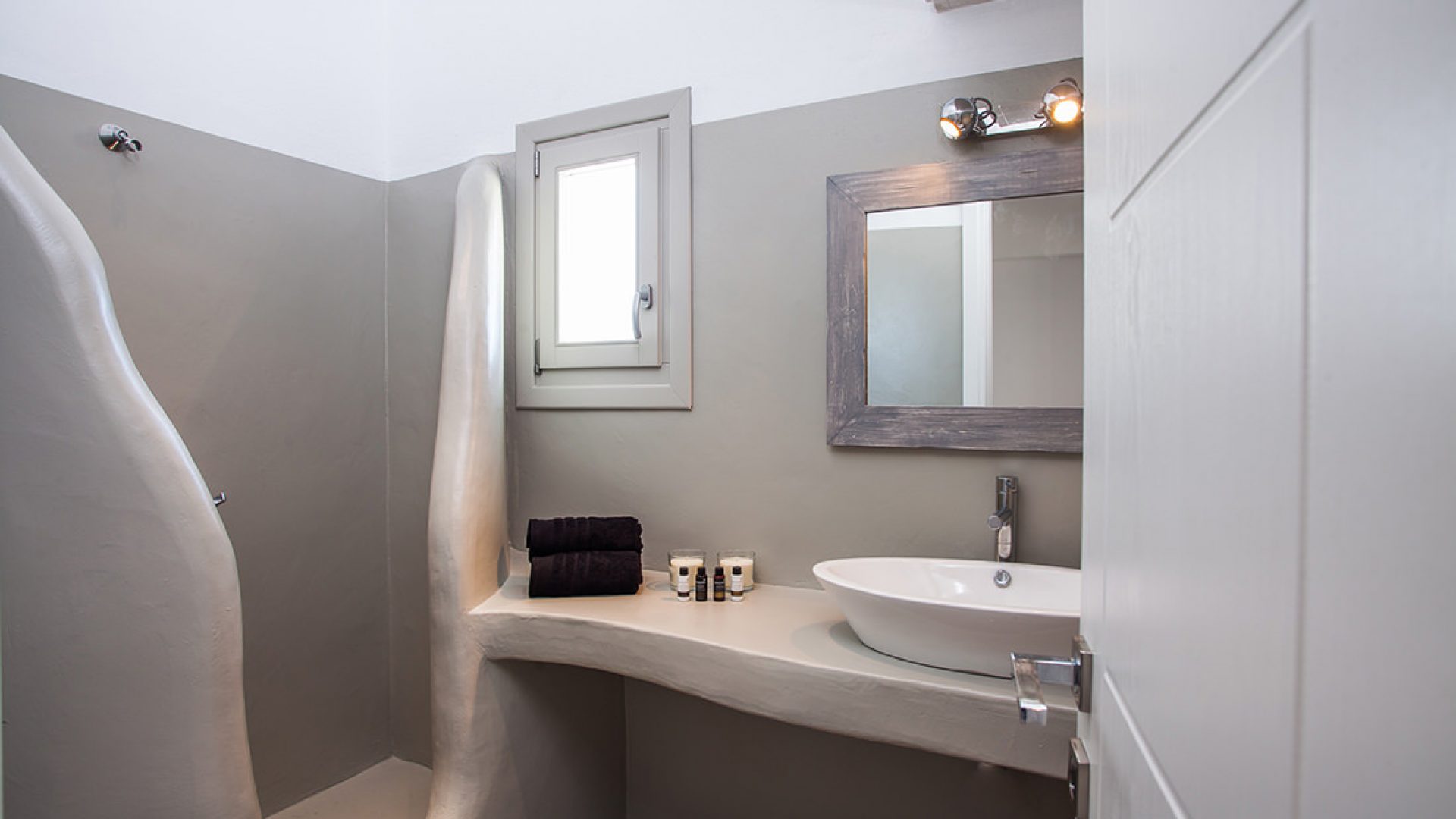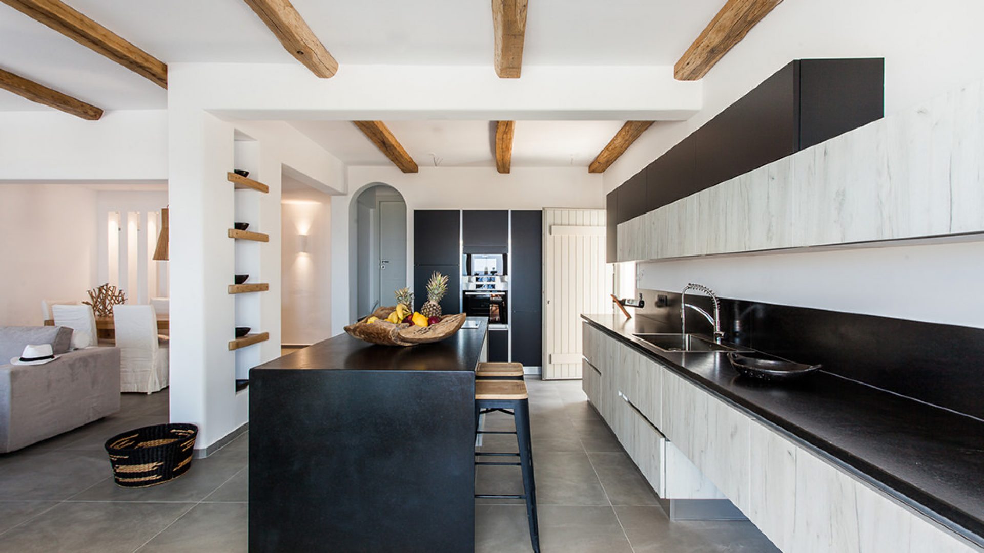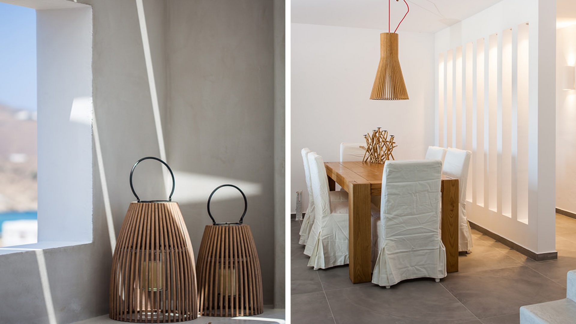This four-bedroom villa provides the privacy & tranquillity guests seek during their holidays with the comfort they require & with lots of features of a smart house, from lighting to air-conditioning, satellite TV, etc. The upper kitchen – as well as numerous furniture – has been picked from signed brands, while lots of touches have been added by Myconian carpenters offering a unique fashionable elegance. Myconian Principal Villa can accommodate up to 8 people.