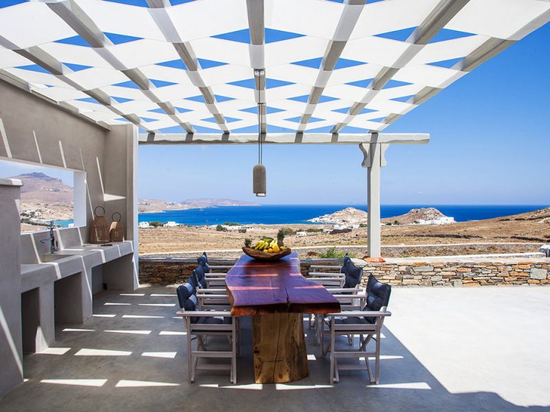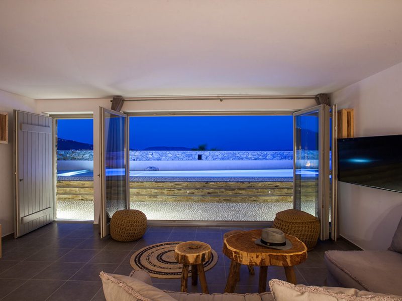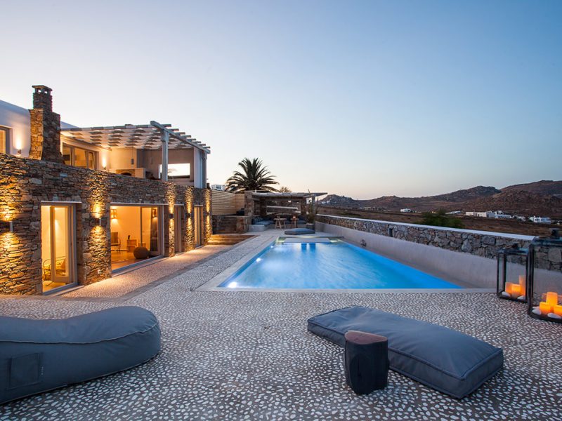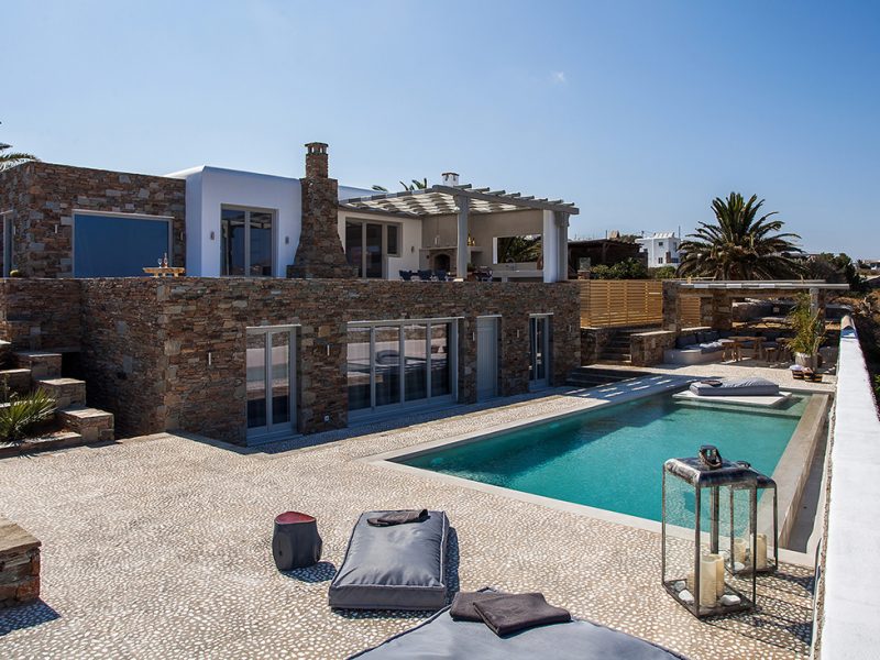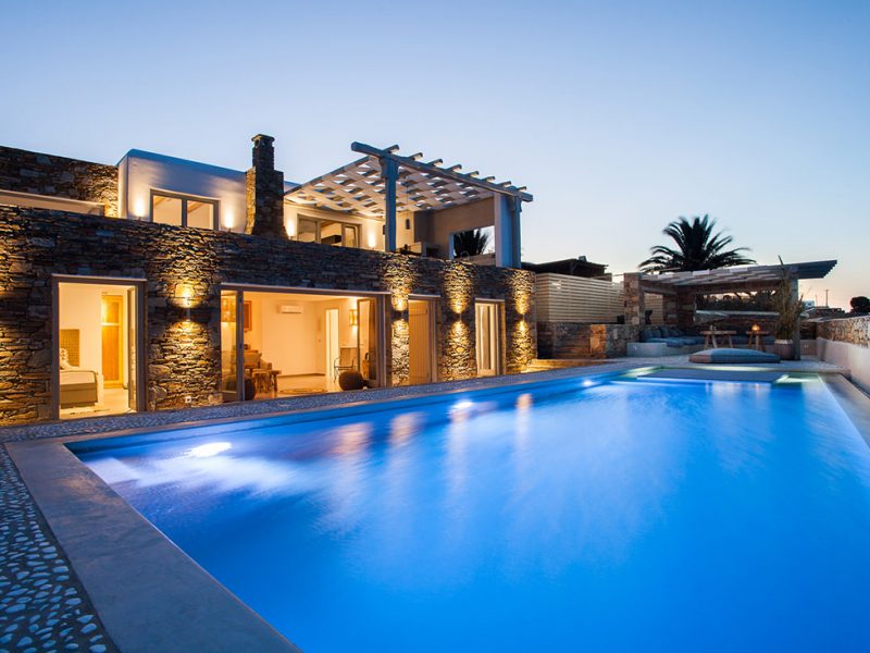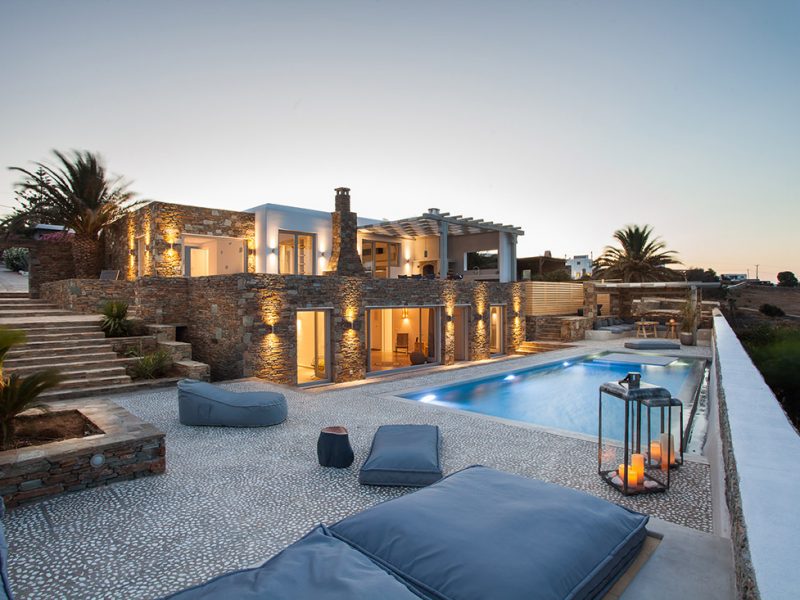 Pioneering a timeless contemporary Cycladic architecture, influenced by traditional Greek tone, Myconian Principal Villa has been designed to flow elegantly between indoor and outdoor living. Interior has been eclectically signed, vastly incorporating natural materials like local Myconian stone as well as massive parts of wood; delivering absolute comfort in breath-taking surroundings, making you feel like home, away from home.