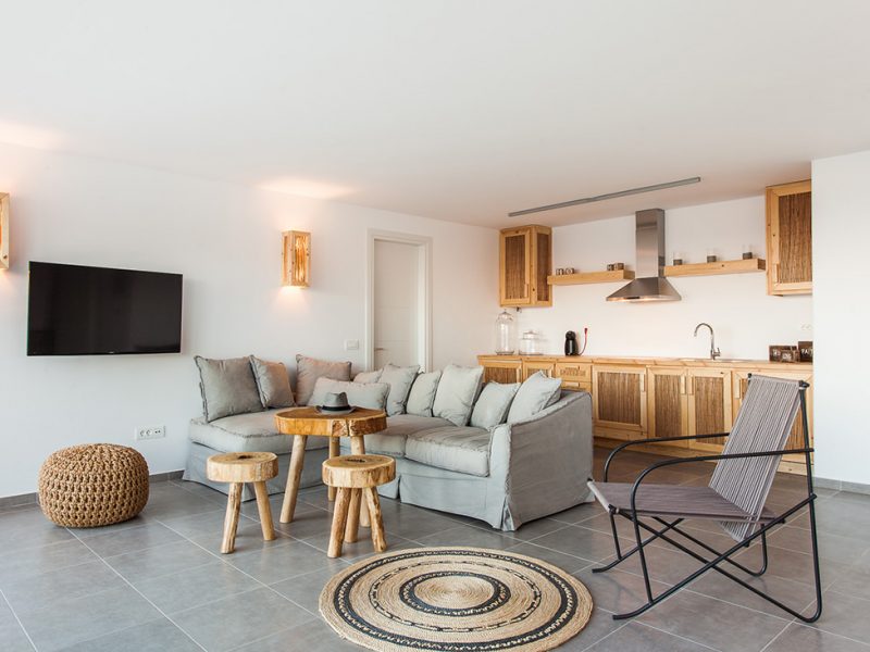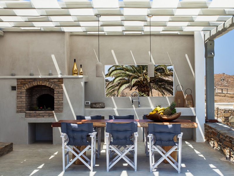 This four-bedroom villa provides the privacy & tranquillity guests seek during their holidays with the comfort they require & with lots of features of a smart house, from lighting to air-conditioning, satellite TV, etc. The upper kitchen – as well as numerous furniture – has been picked from signed brands, while lots of touches have been added by Myconian carpenters offering a unique fashionable elegance. Myconian Principal Villa can accommodate up to 8 people.