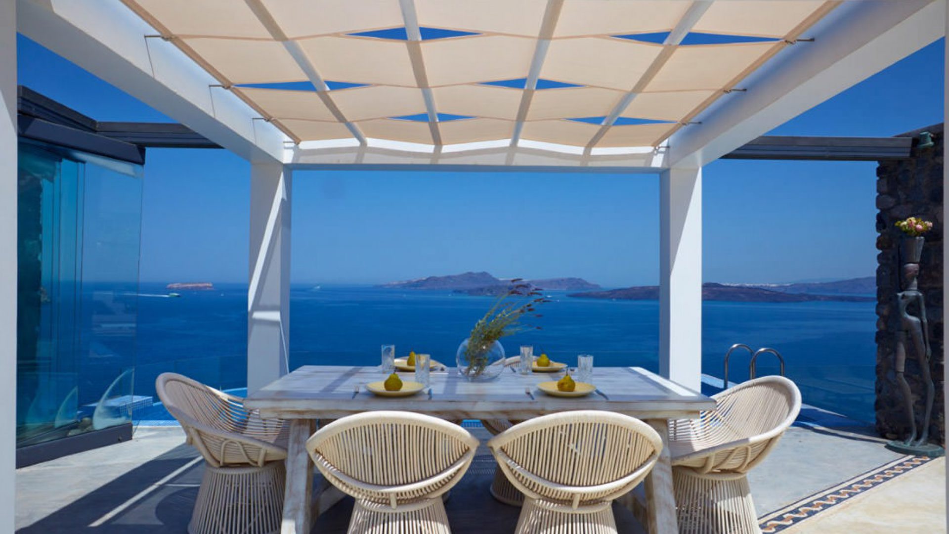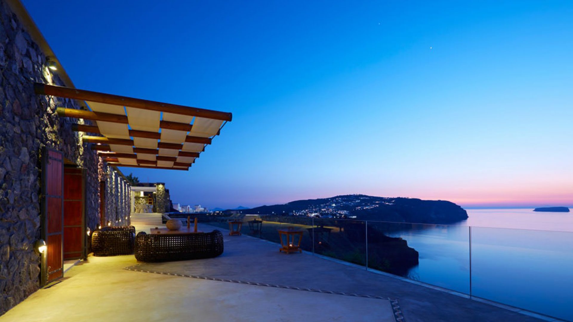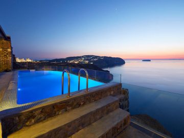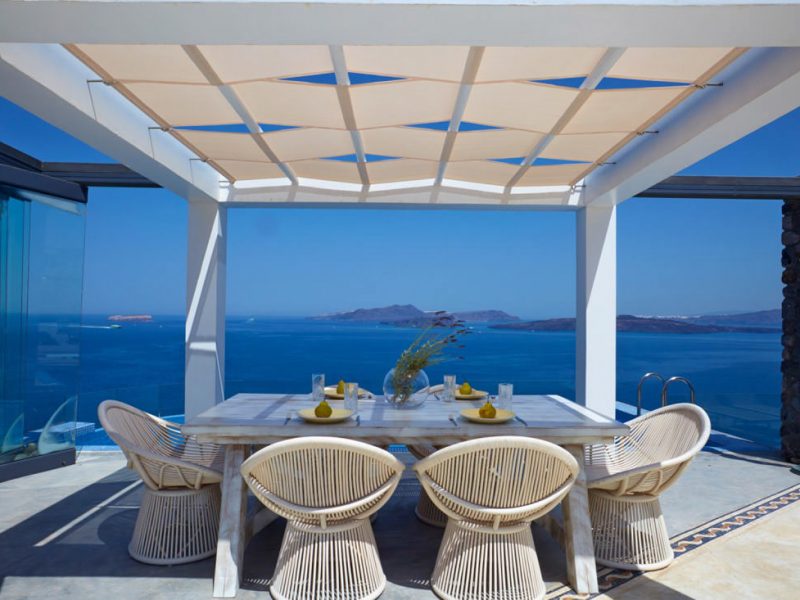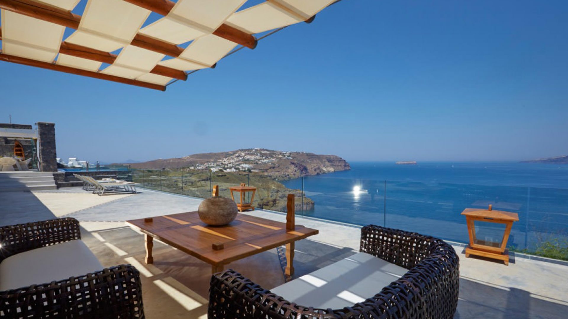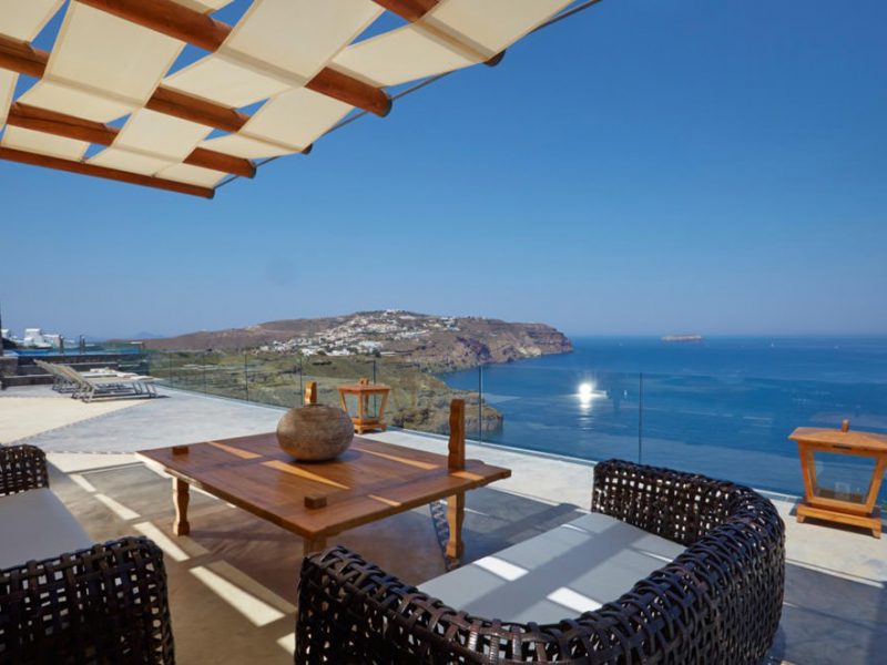 The Villa is located on a unique point on the caldera of Akrotiri and offers beautiful views from the private terrace of the 400 square meters, the garden and the pool area