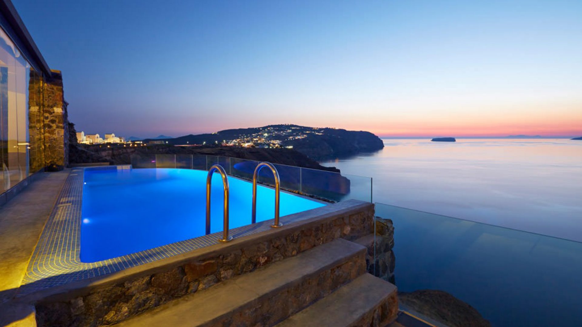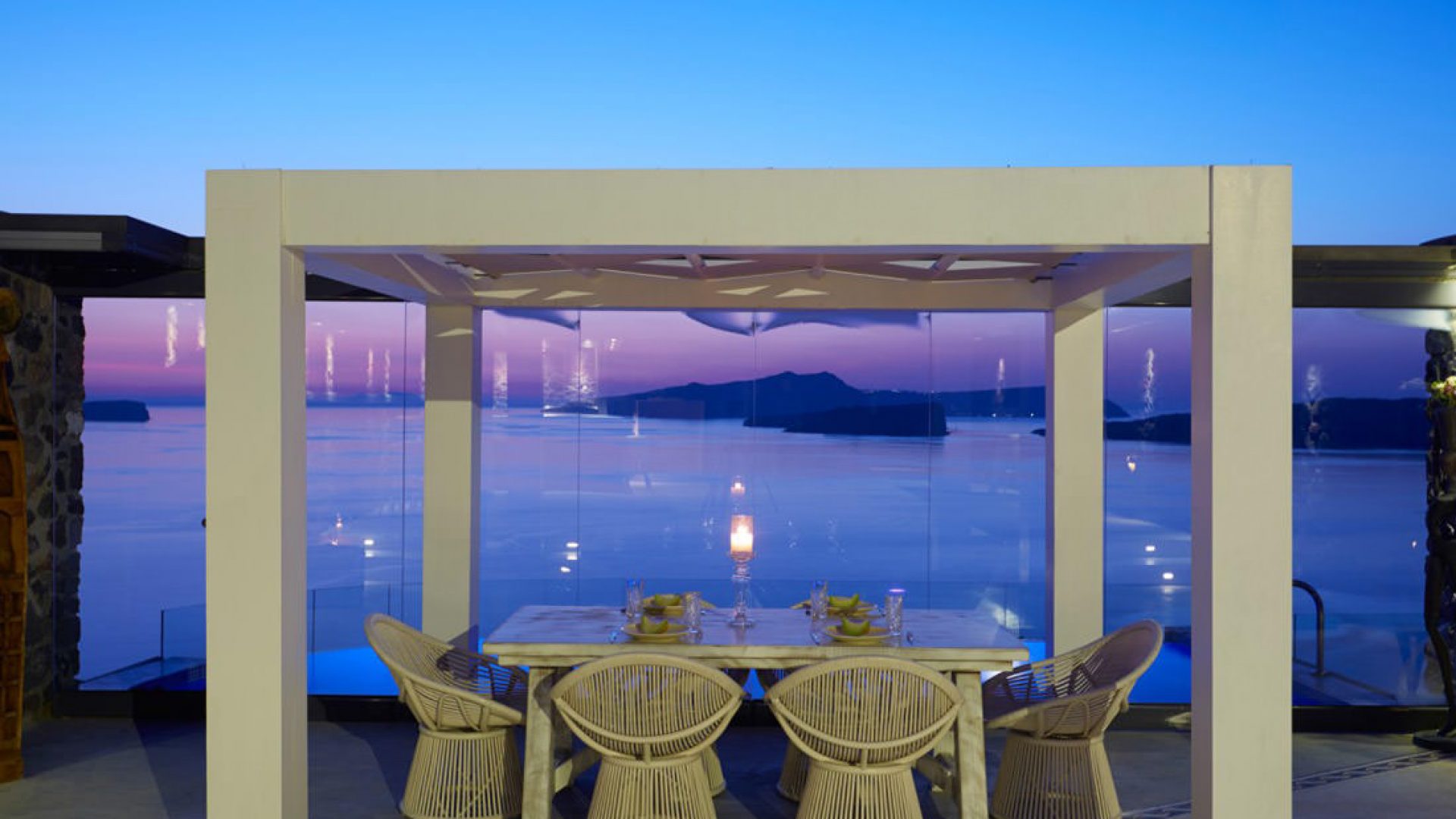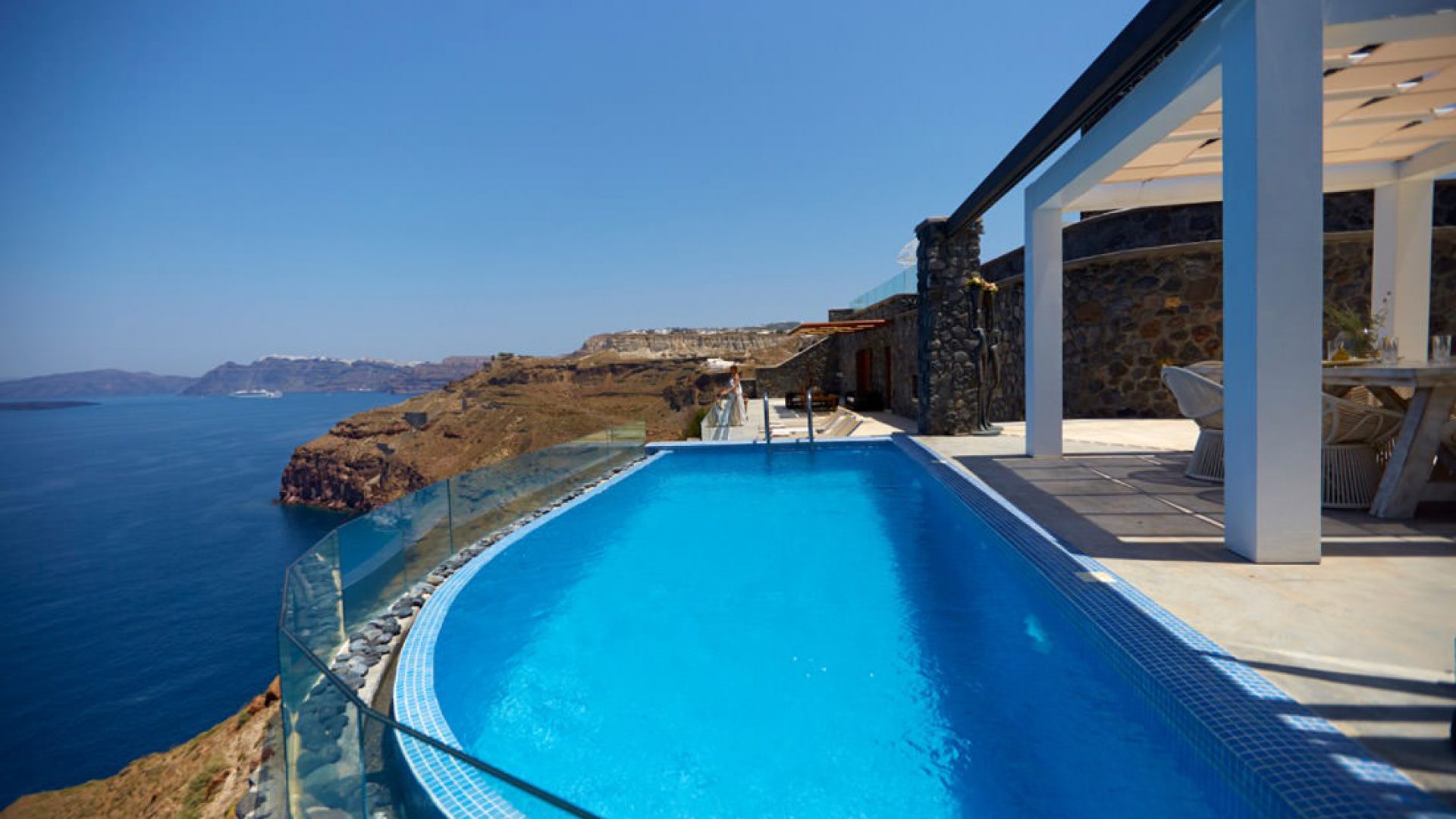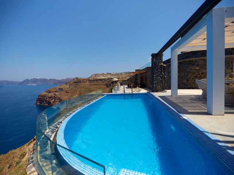 The Villa is located on a unique point on the caldera of Akrotiri and offers beautiful views from the private terrace of the 400 square meters, the garden and the pool area