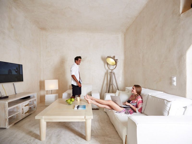 Spaces of POINT OF VIEW combine timeless elegance with modern comfort and offer all the necessary amenities for an enchanting stay in Santorini