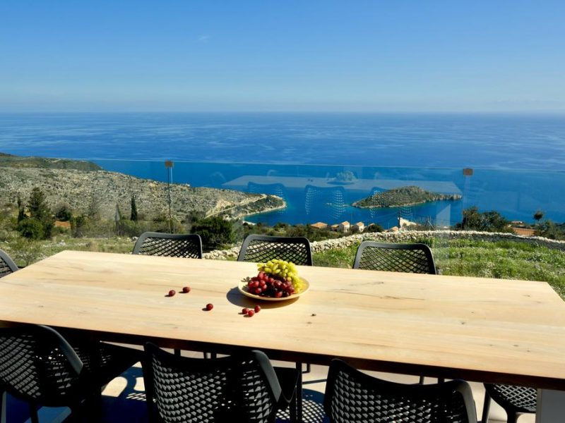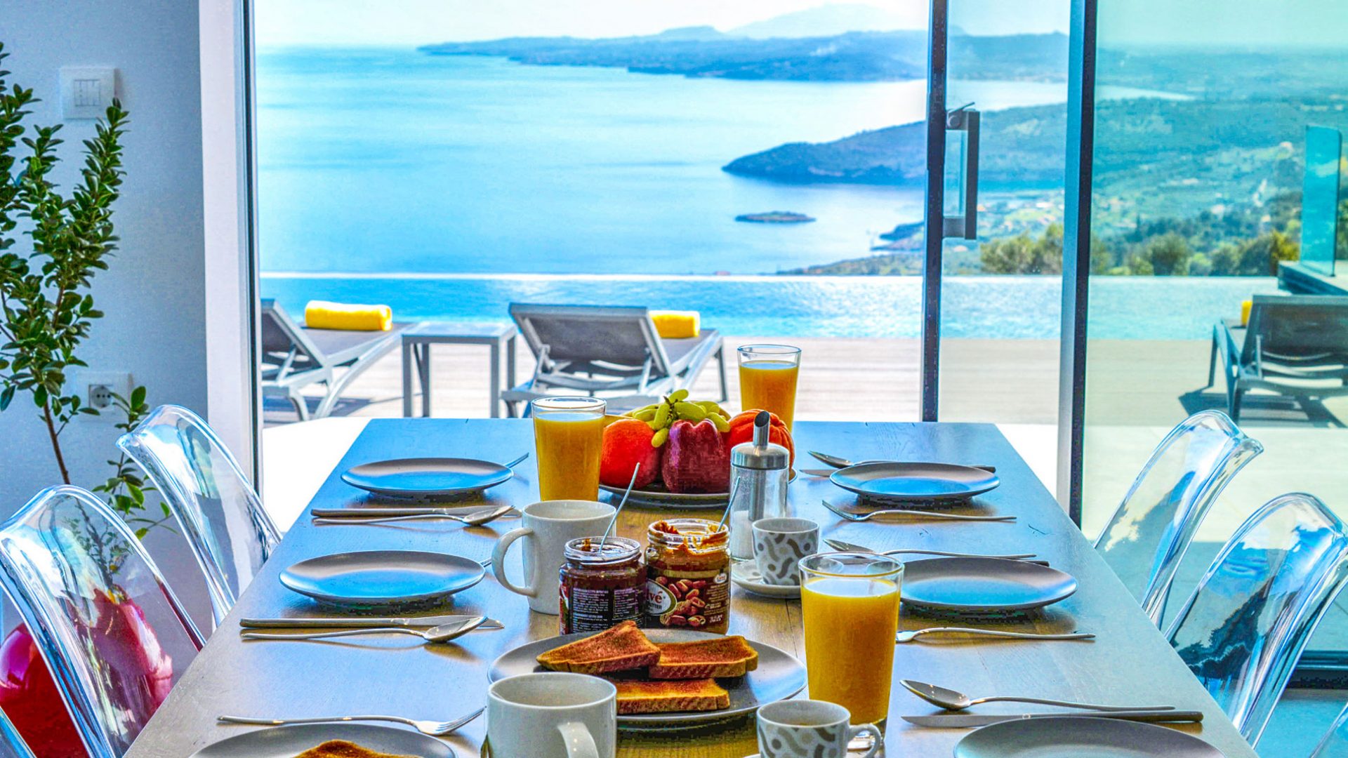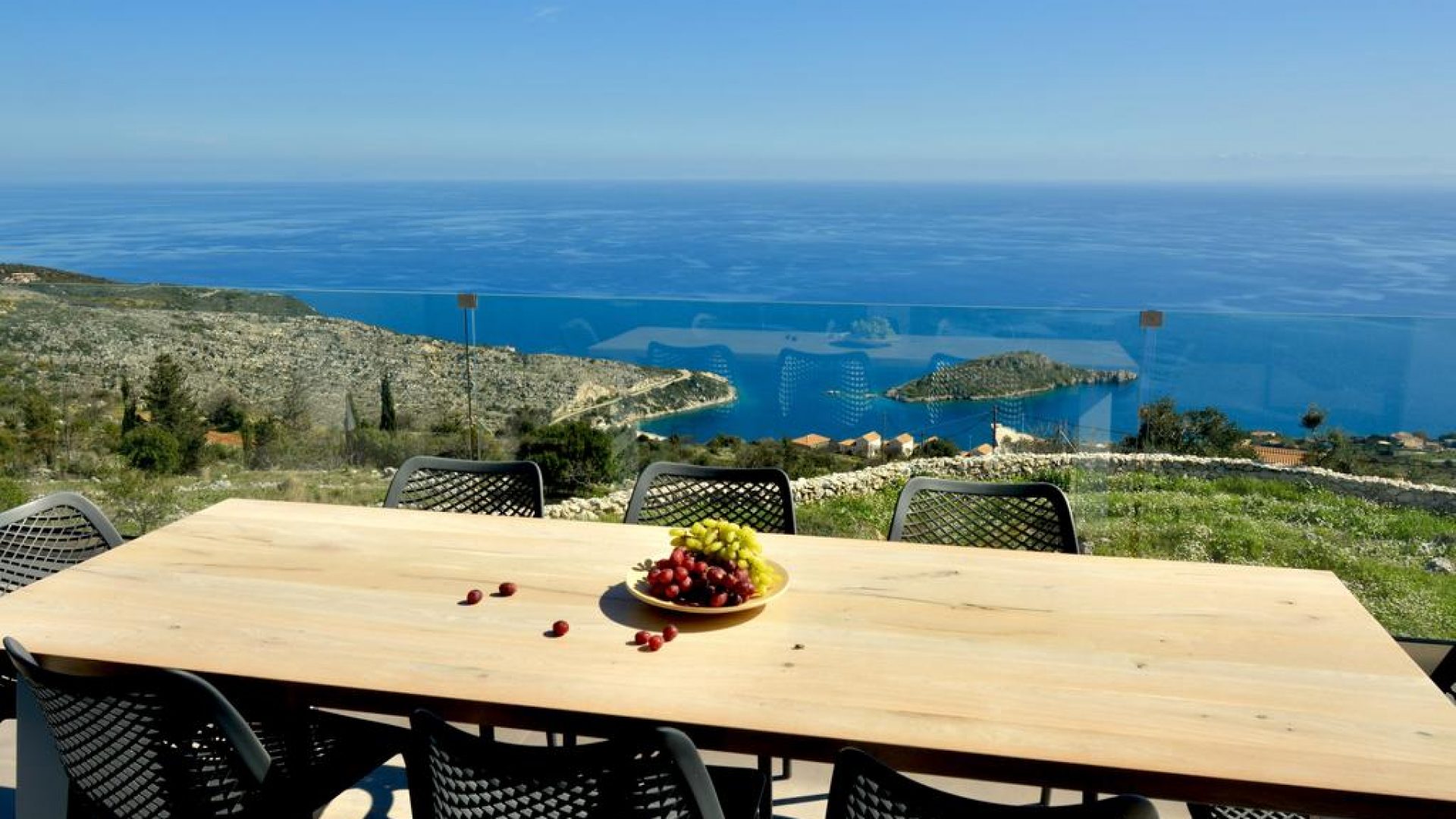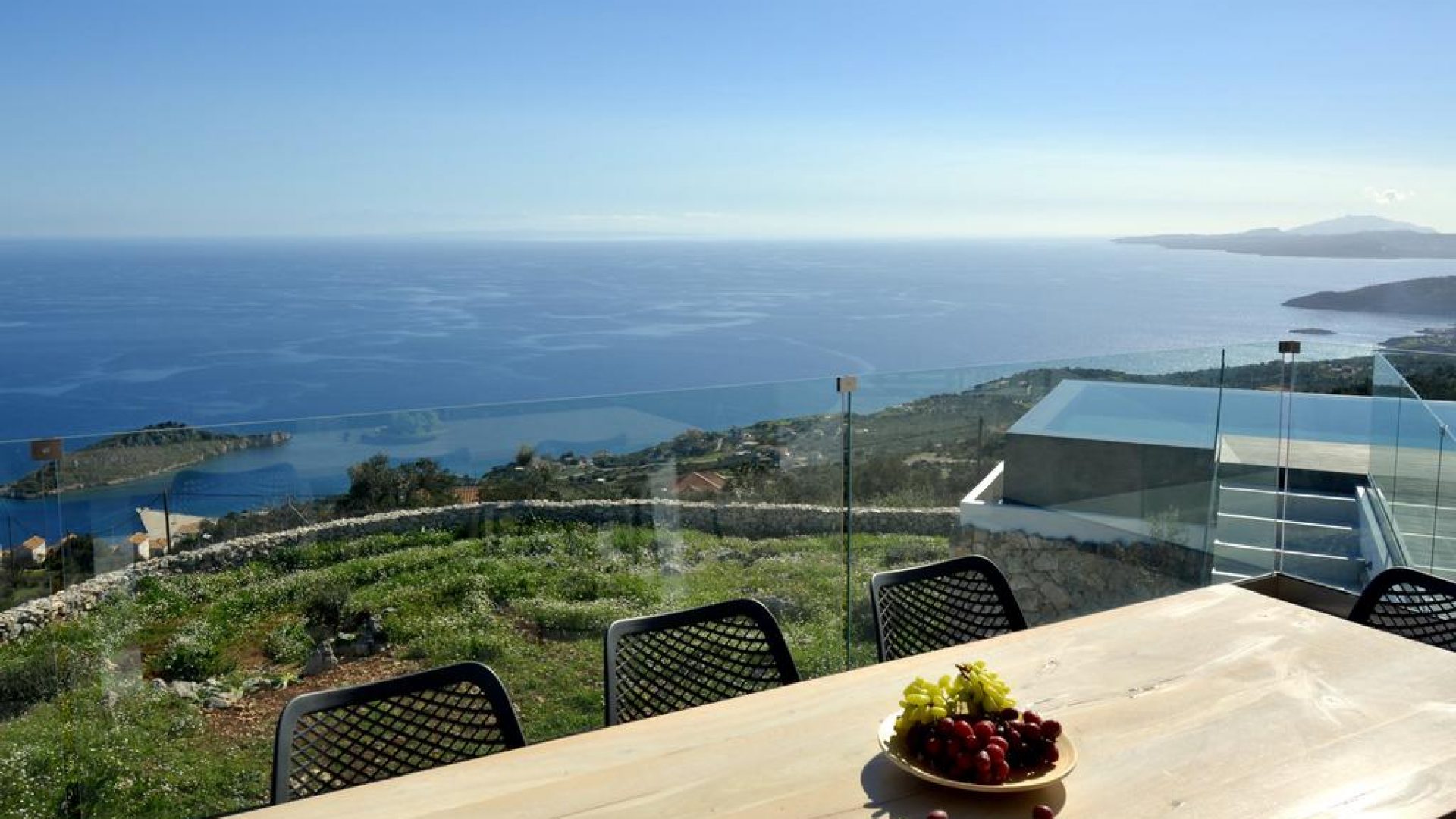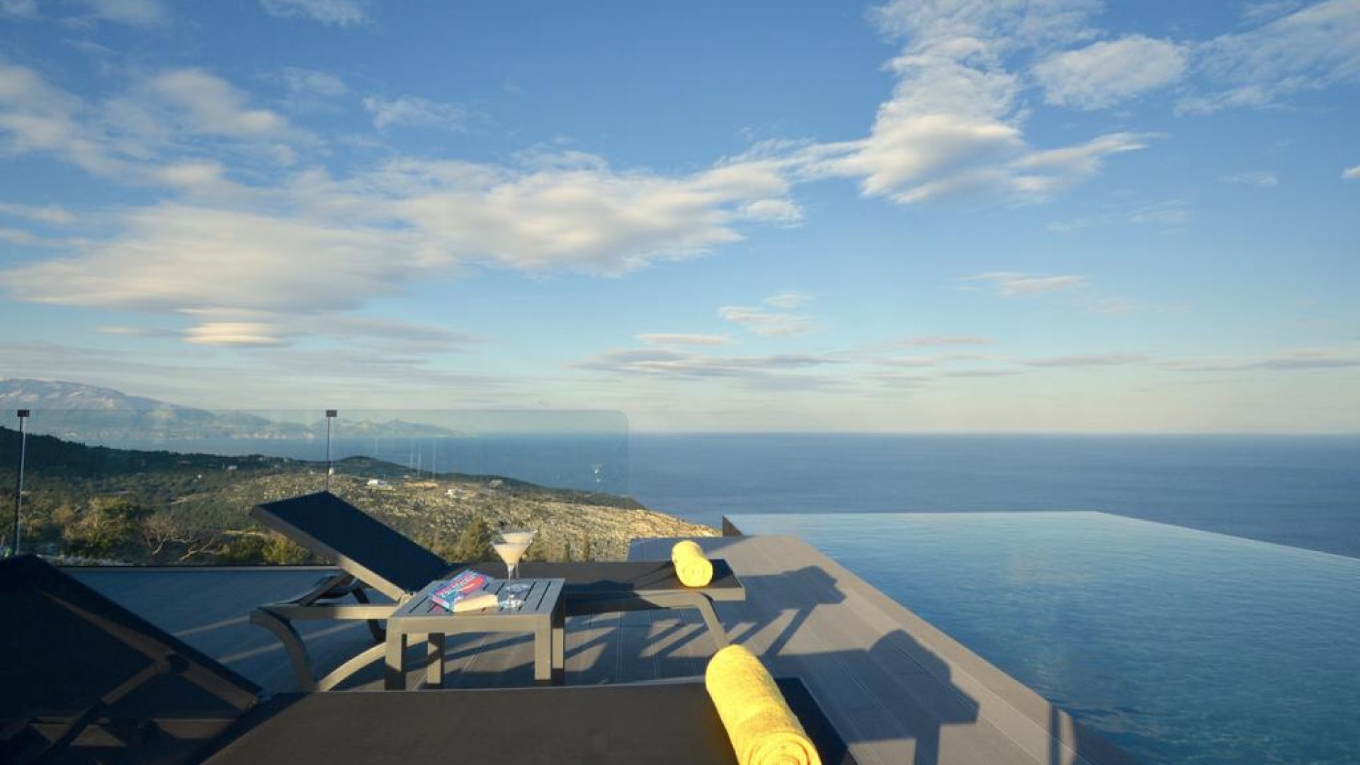 Play in the sparkling water or dine al fresco on the shaded veranda surrounded by views from Kefalonia island, Agios Nikolaos port, Mikro nisi until the southern Zakynthos.