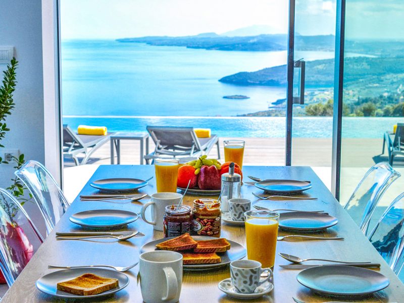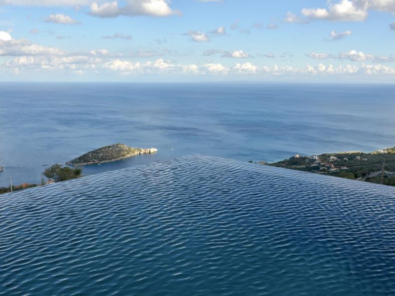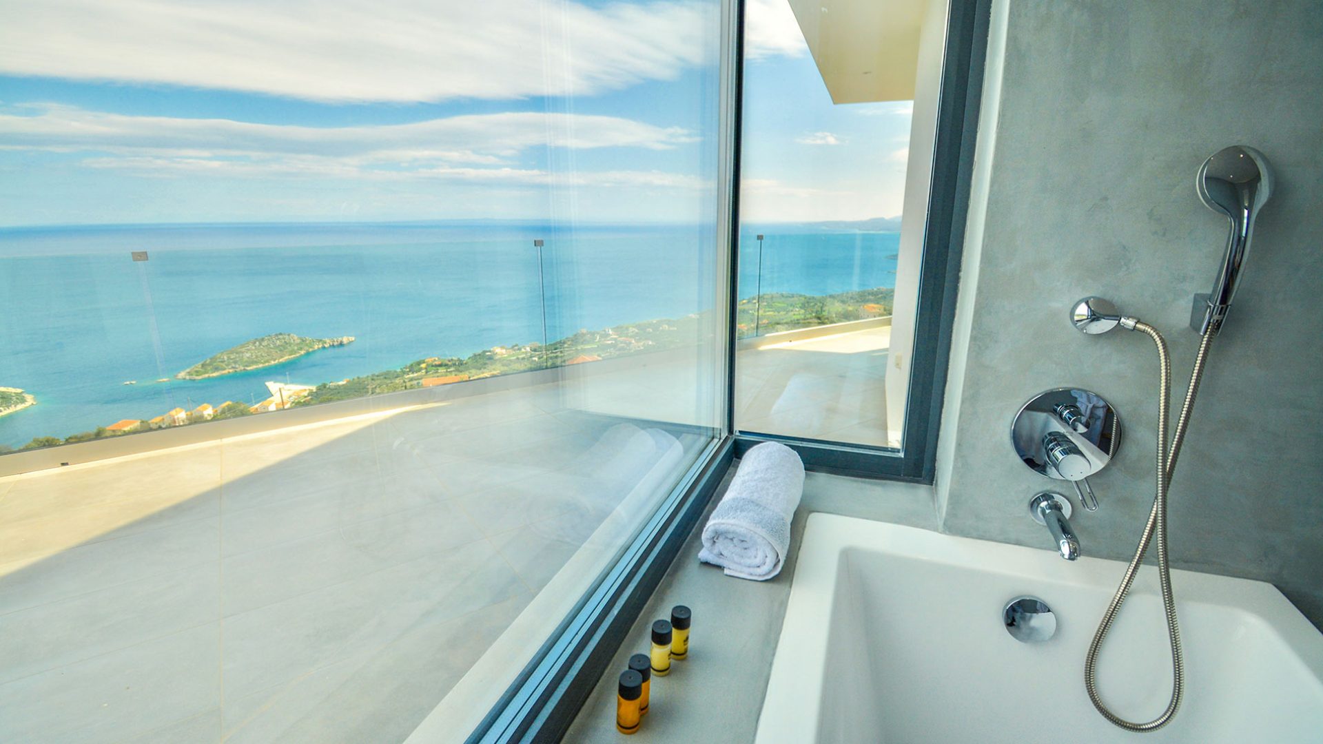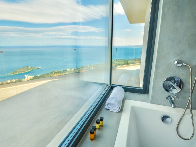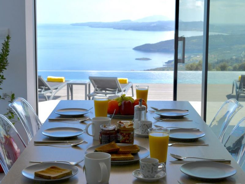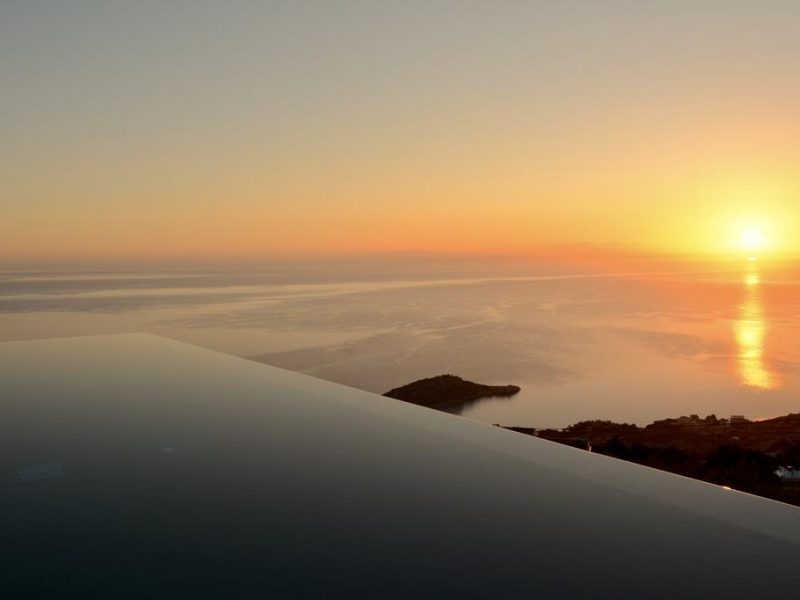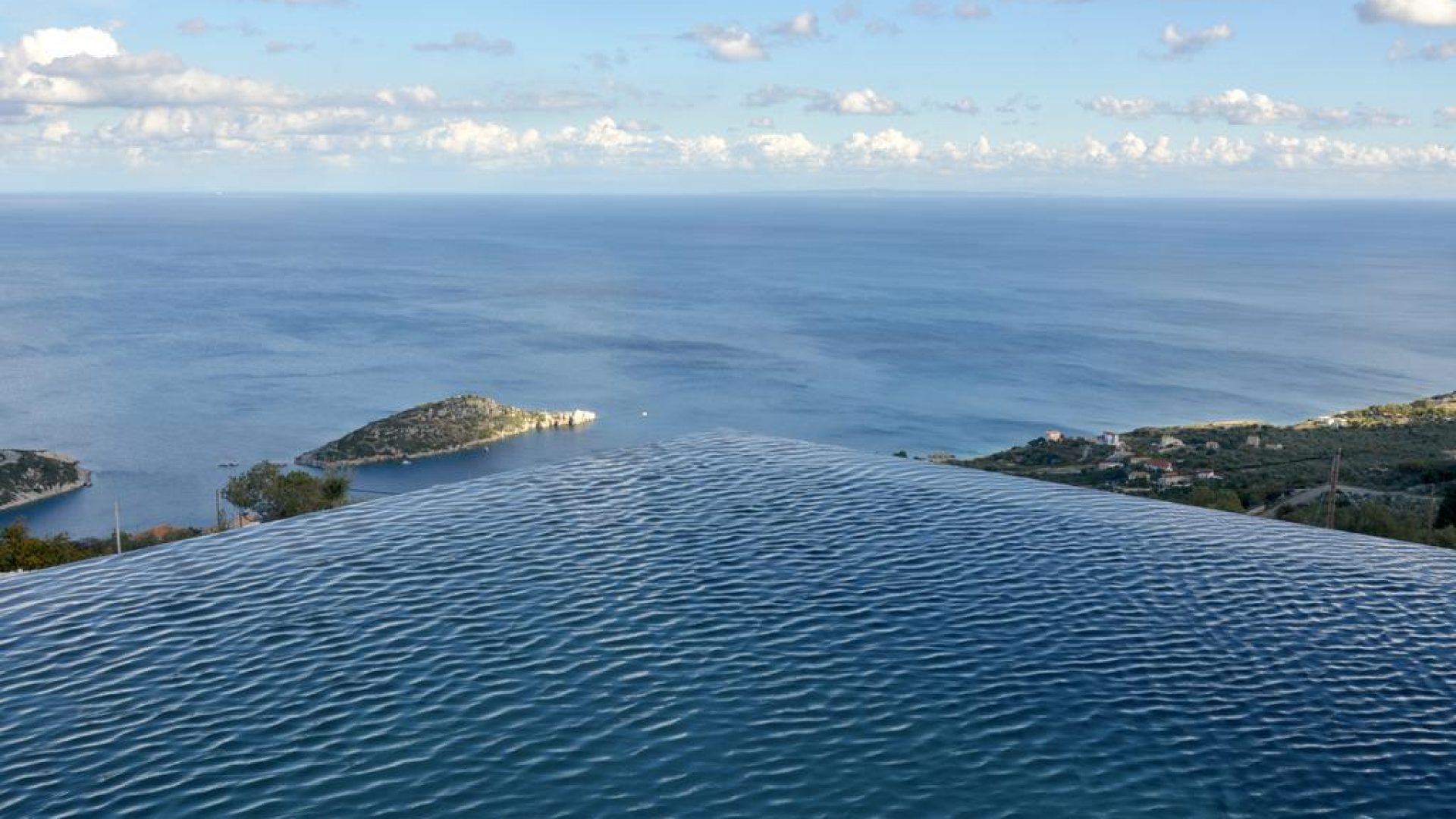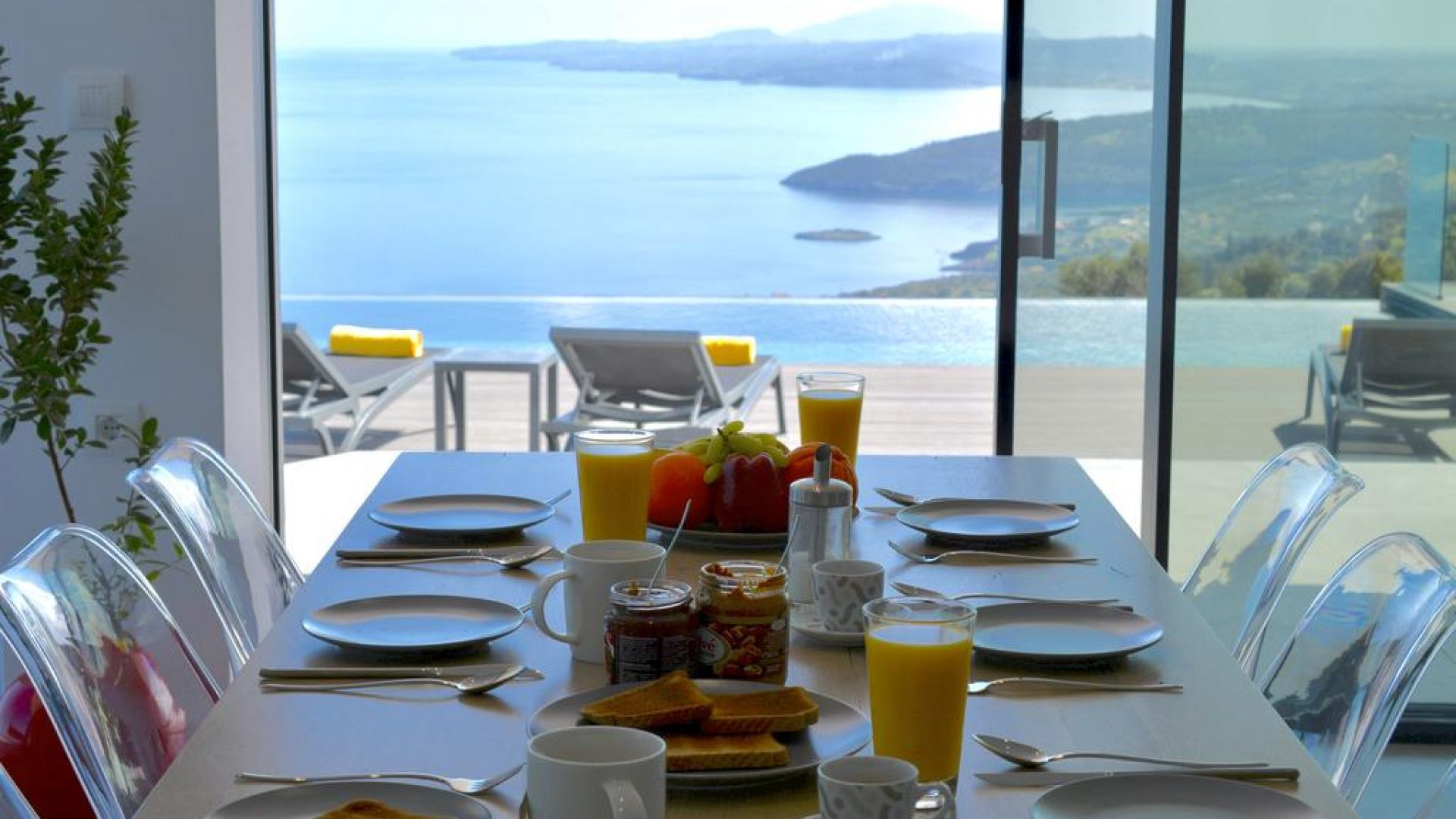 Play in the sparkling water or dine al fresco on the shaded veranda surrounded by views from Kefalonia island, Agios Nikolaos port, Mikro nisi until the southern Zakynthos.