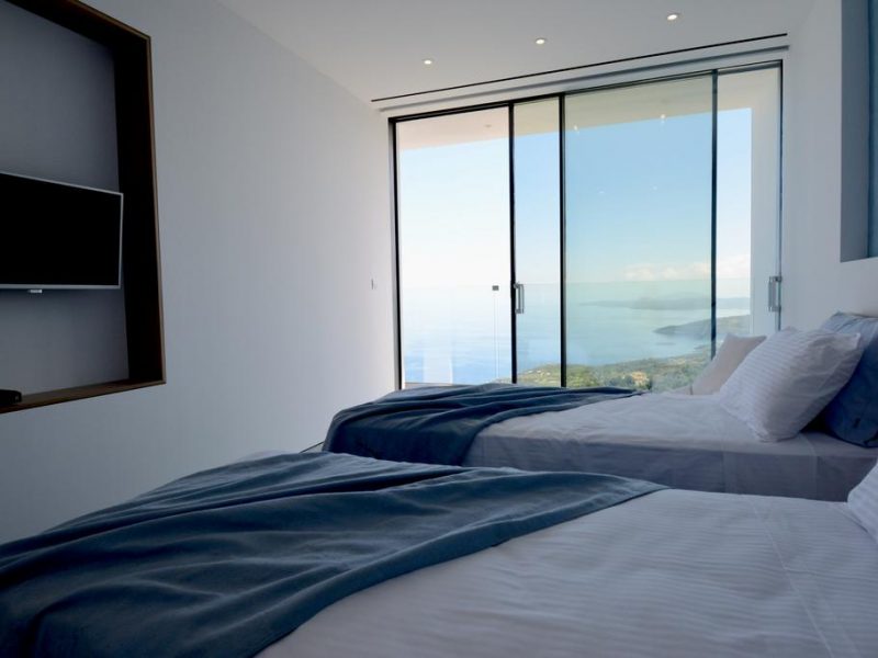 The Astral Villa is built on a hill above Agios Nikolaos port, on the northern-eastern coast of Zante island.