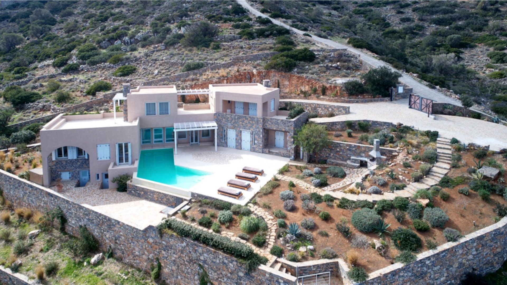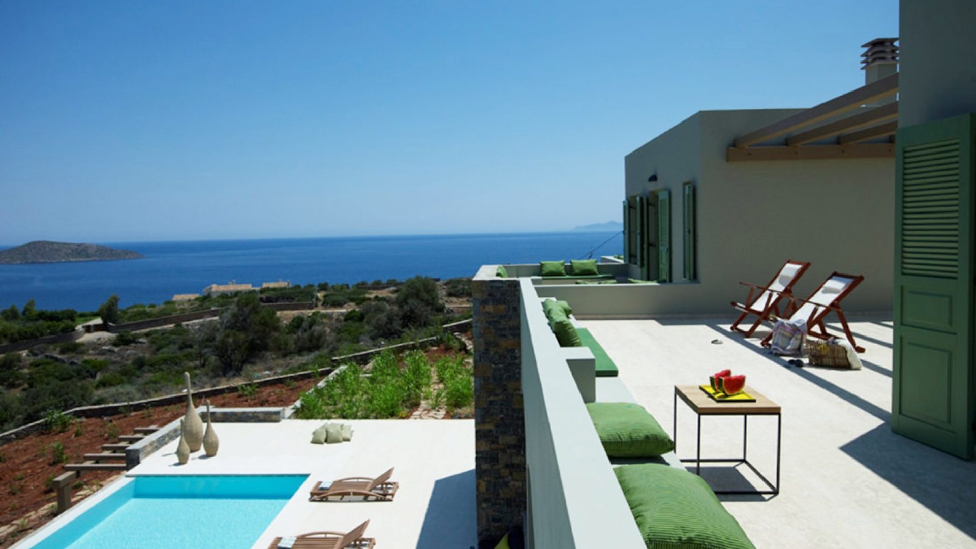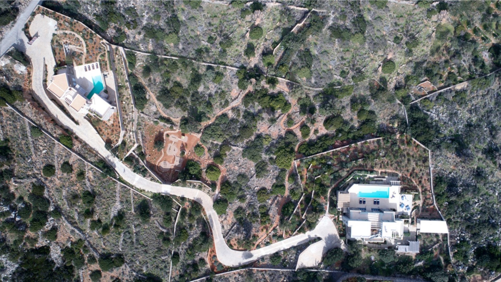 The unique piece of land lays at 13,700 square meters (or 1.37 hectares). It houses two of the most exclusive properties available in Crete