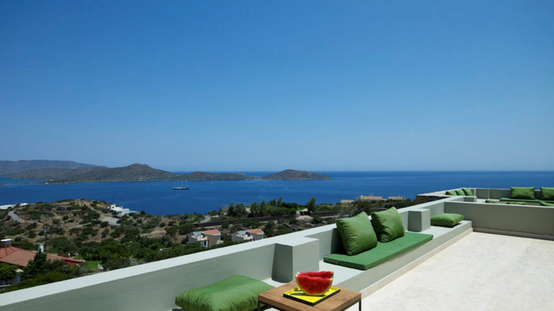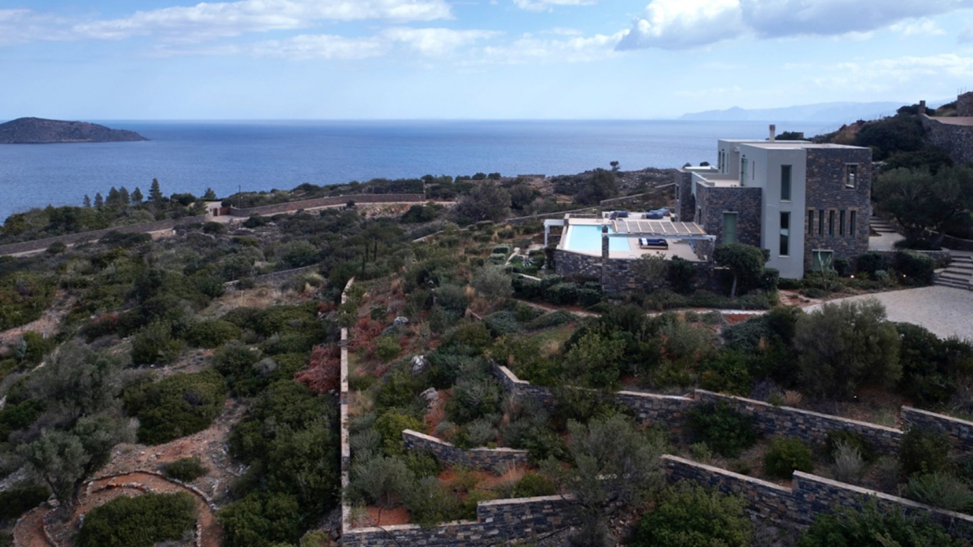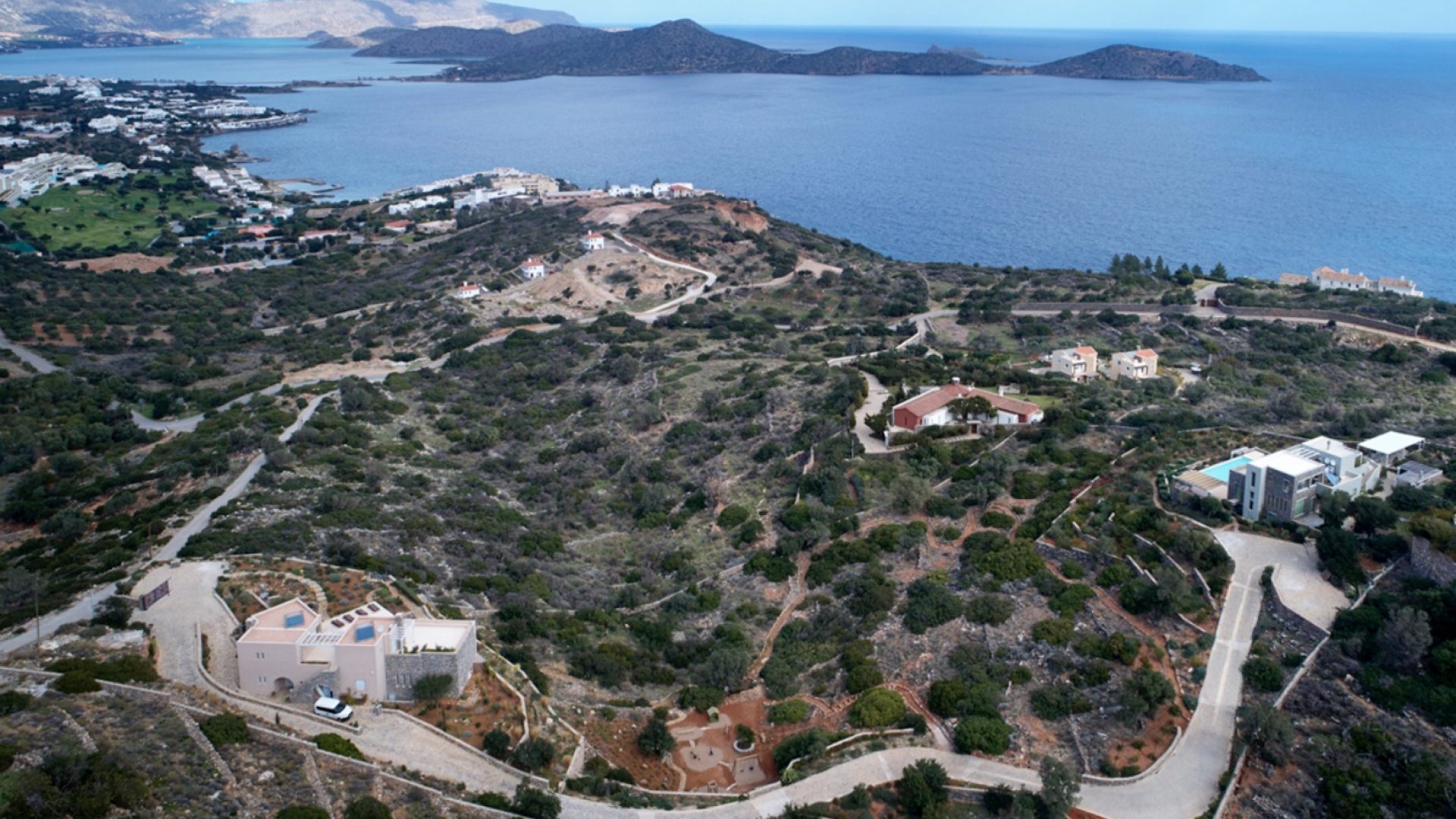 The unique piece of land lays at 13,700 square meters (or 1.37 hectares). It houses two of the most exclusive properties available in Crete