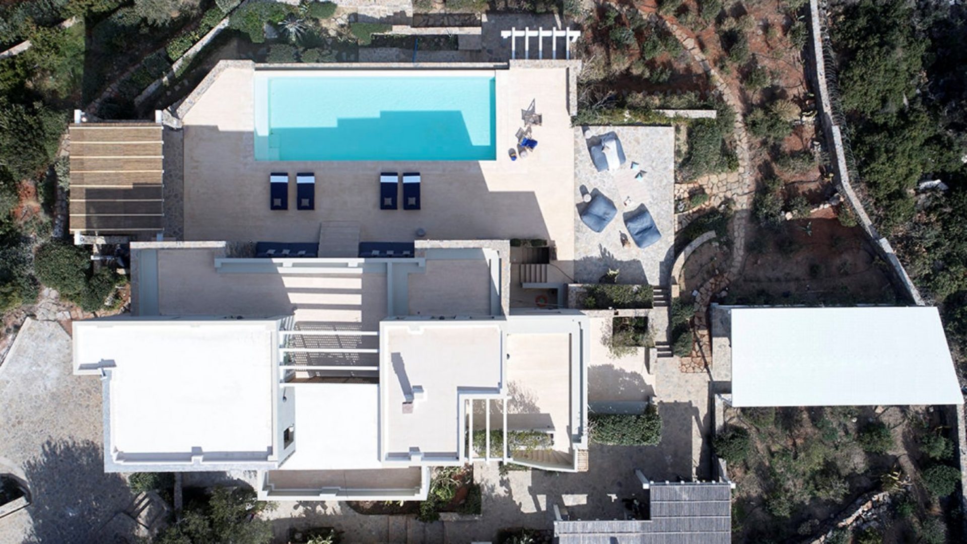 The two villas are 180 meters apart (door to door). They have total privacy due to their orientation, the site terrain, and landscaping. Despite this, there is easy access between them.