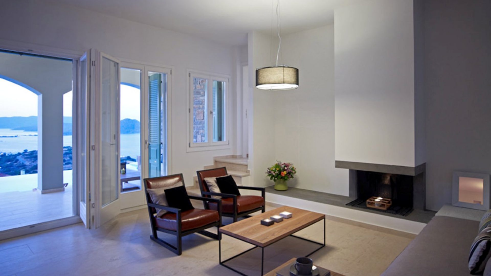 Double room (1.60m double bed) with a separate external entrance, en suite shower room, walking closet, fireplace, beautiful views to the sea and private terraces with sea views