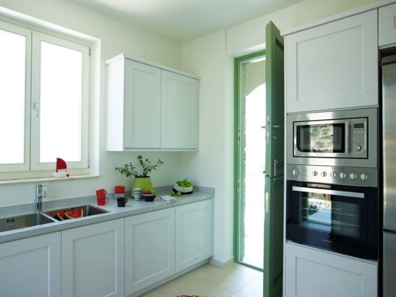 Fully-equipped kitchen with door leading to the outdoor terrace, W.C.