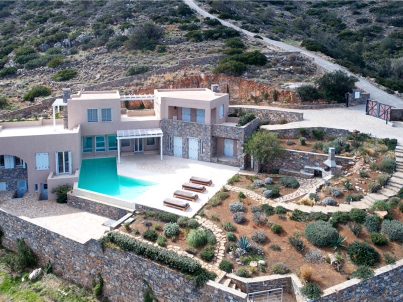 The unique piece of land lays at 13,700 square meters (or 1.37 hectares). It houses two of the most exclusive properties available in Crete