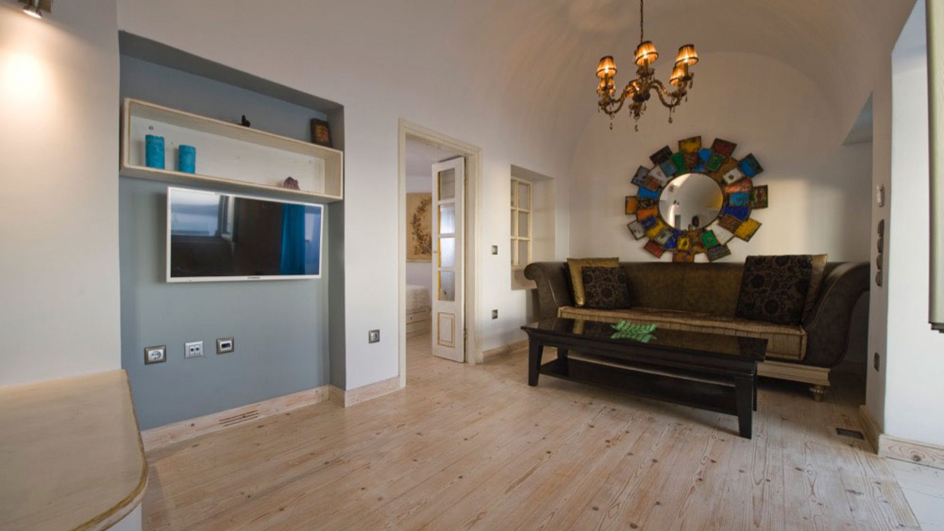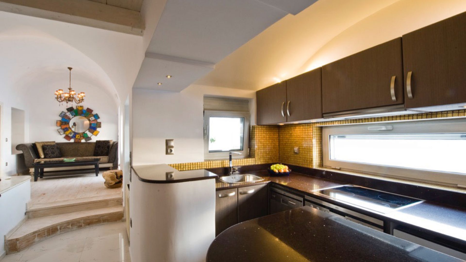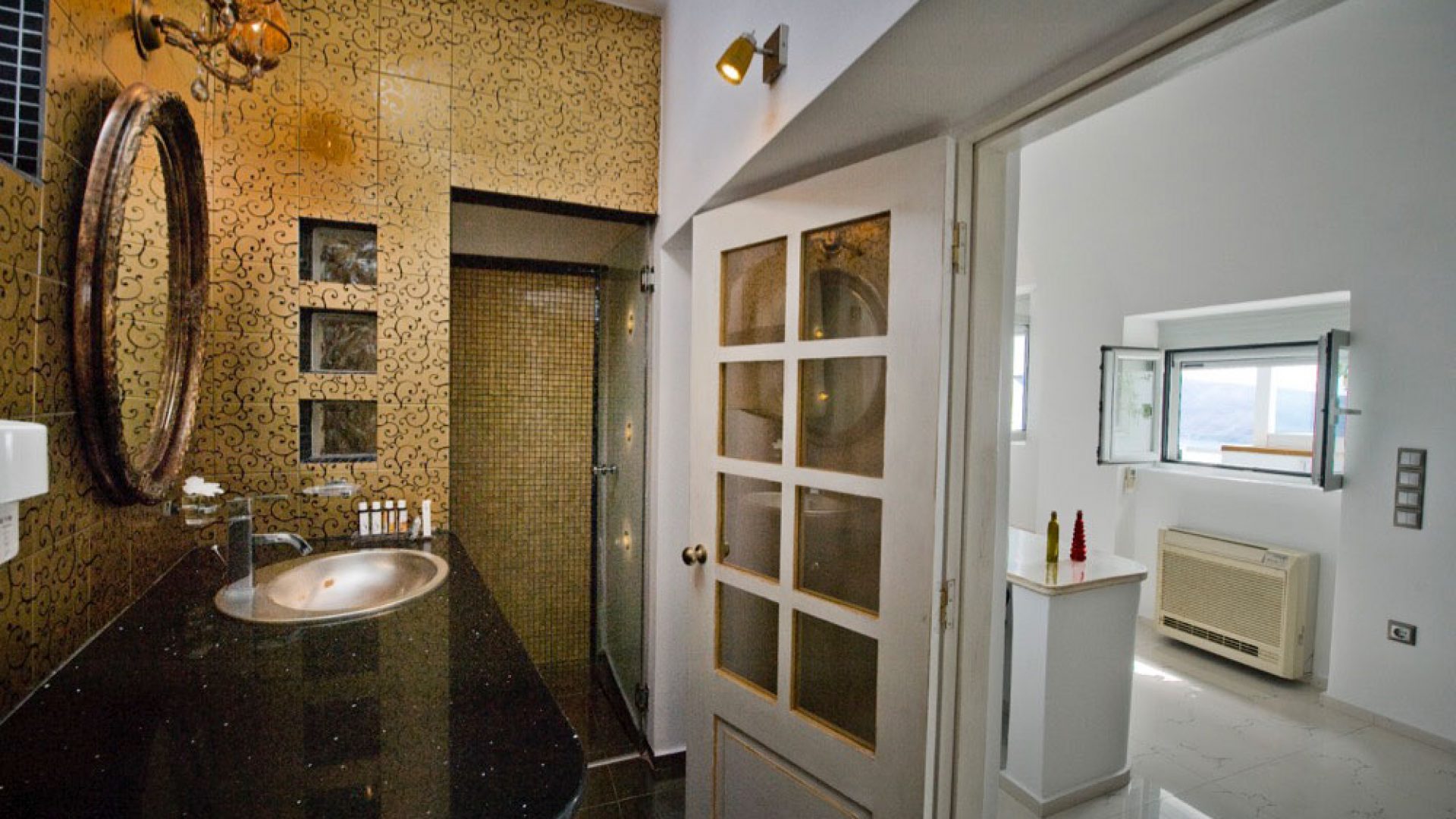 ELIN HONEYMOON VILLA  is a generously spacious villa (70 sqm) facing the sea, Caldera, and direct sunset view. Located on the Caldera above the picturesque perfect Ammoudi Bay, in a privileged location to watch the sunset and away from the crowds. Due to its privileged location on the edge of the cliff under the picturesque windmills, the Honeymoon Villa features a spacious balcony with outdoor Albatros Jacuzzi, spacious living area and dining area, kitchen, bedroom and spacious, luxurious bathroom.