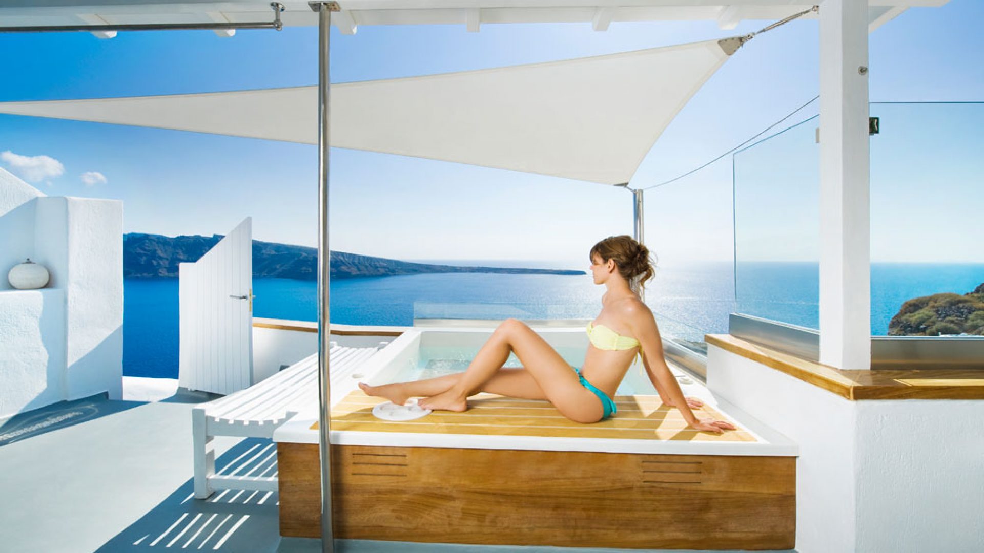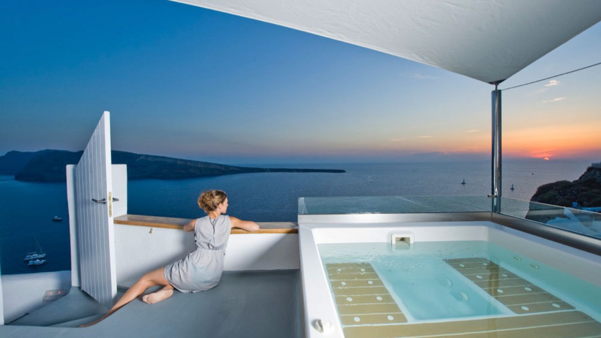 The Honeymoon Villa was specially designed for the most romantic time of your life in mind, your Honeymoon. Located at the original site where the movie “Summer Lovers” was filmed, guests are bound to feel like stars as they enjoy their fantasy holidays. Enjoy the breathtaking view from your large balcony and celebrate the direct sunset view while you soak in your outdoor Jacuzzi, the prime sunset viewing location.