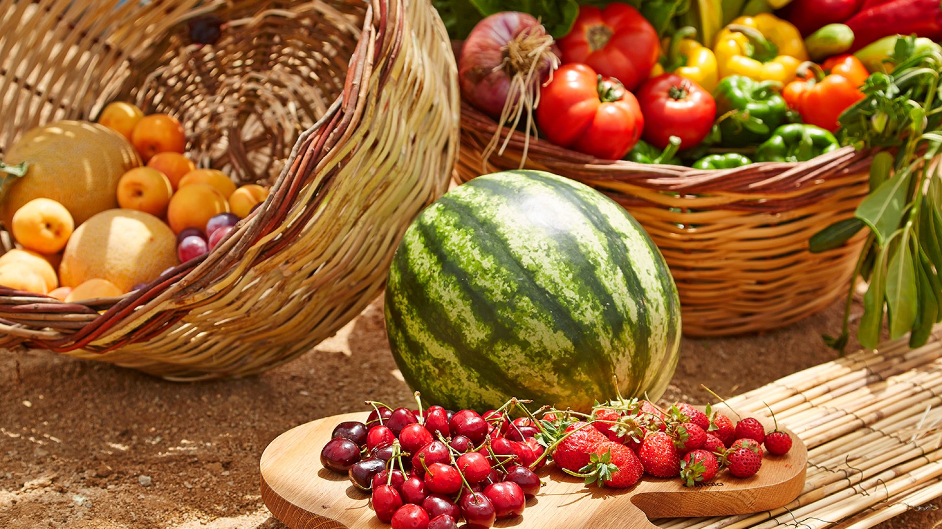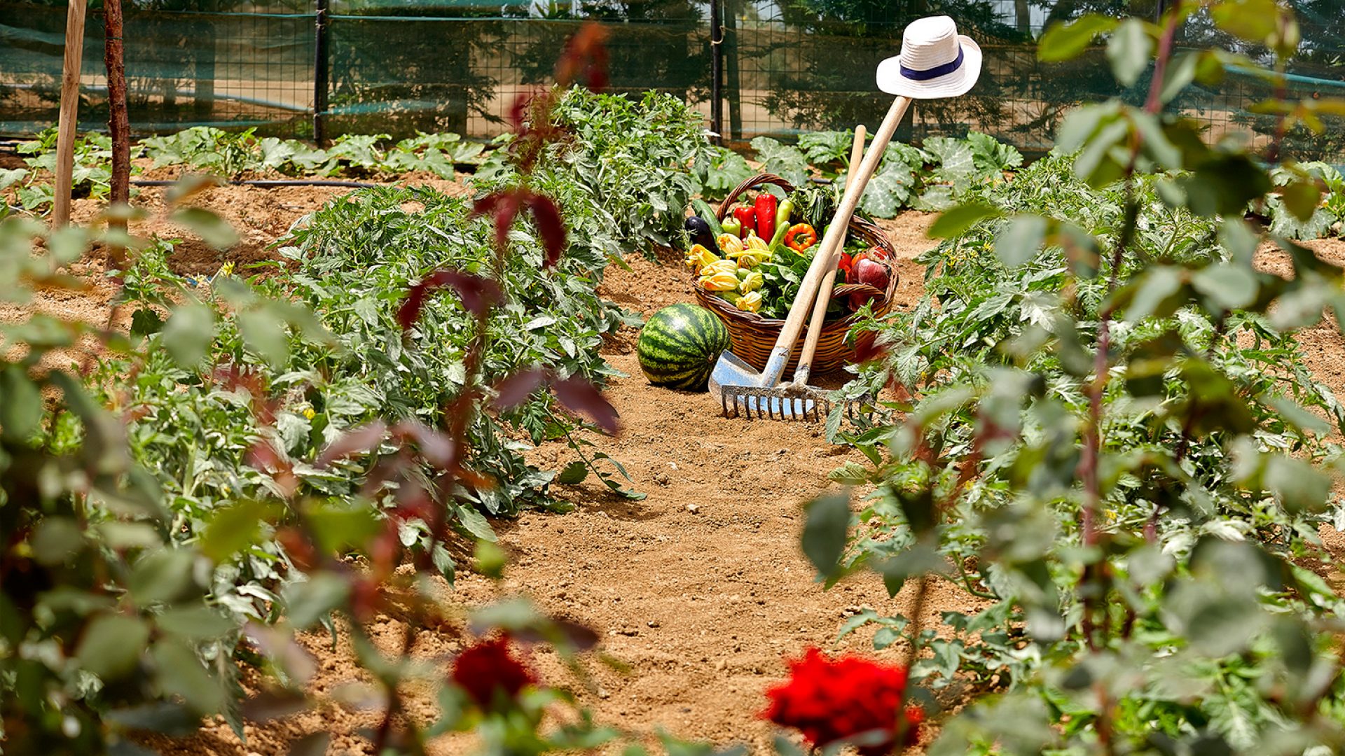 In our garden, you will find and savor tomatoes, cherry tomatoes, cucumbers, eggplants, zucchini, beetroots, peppers, lettuce, Brussels sprouts, rocket, celery, parsley, carrots, strawberries, watermelons, melons, grapes, peers, peaches and so many more.