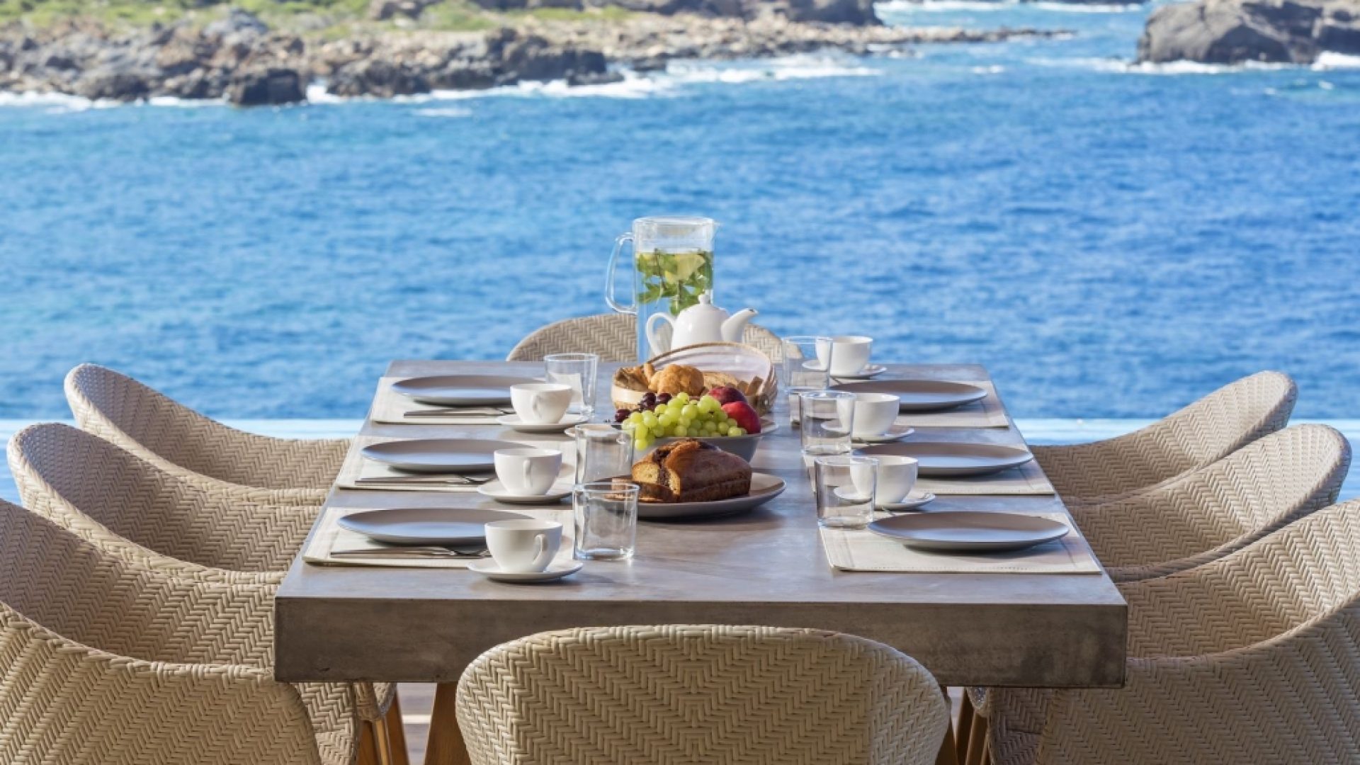 The waves crash onto the shore just a couple of meters below giving the villa the distinct impression of an anchored boat