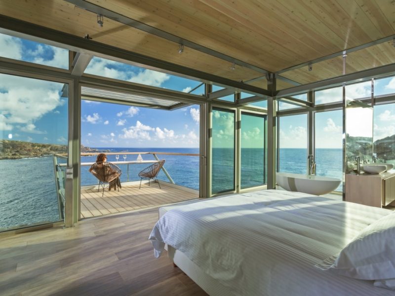 The waves crash onto the shore just a couple of meters below giving the villa the distinct impression of an anchored boat